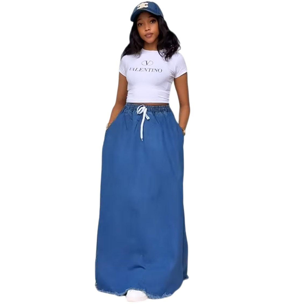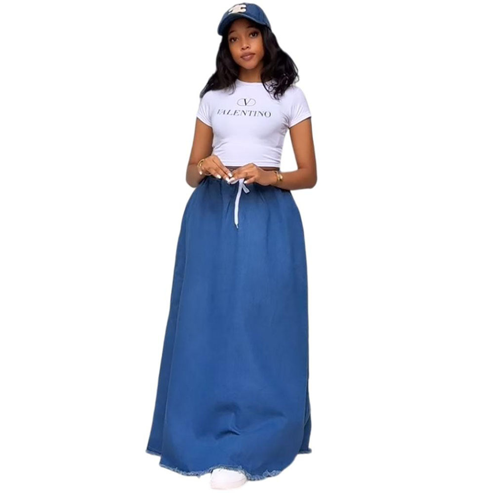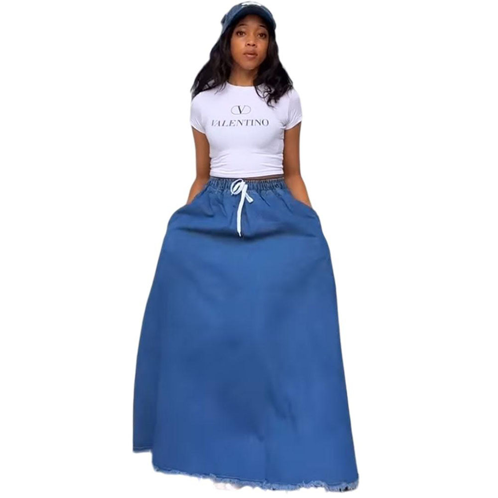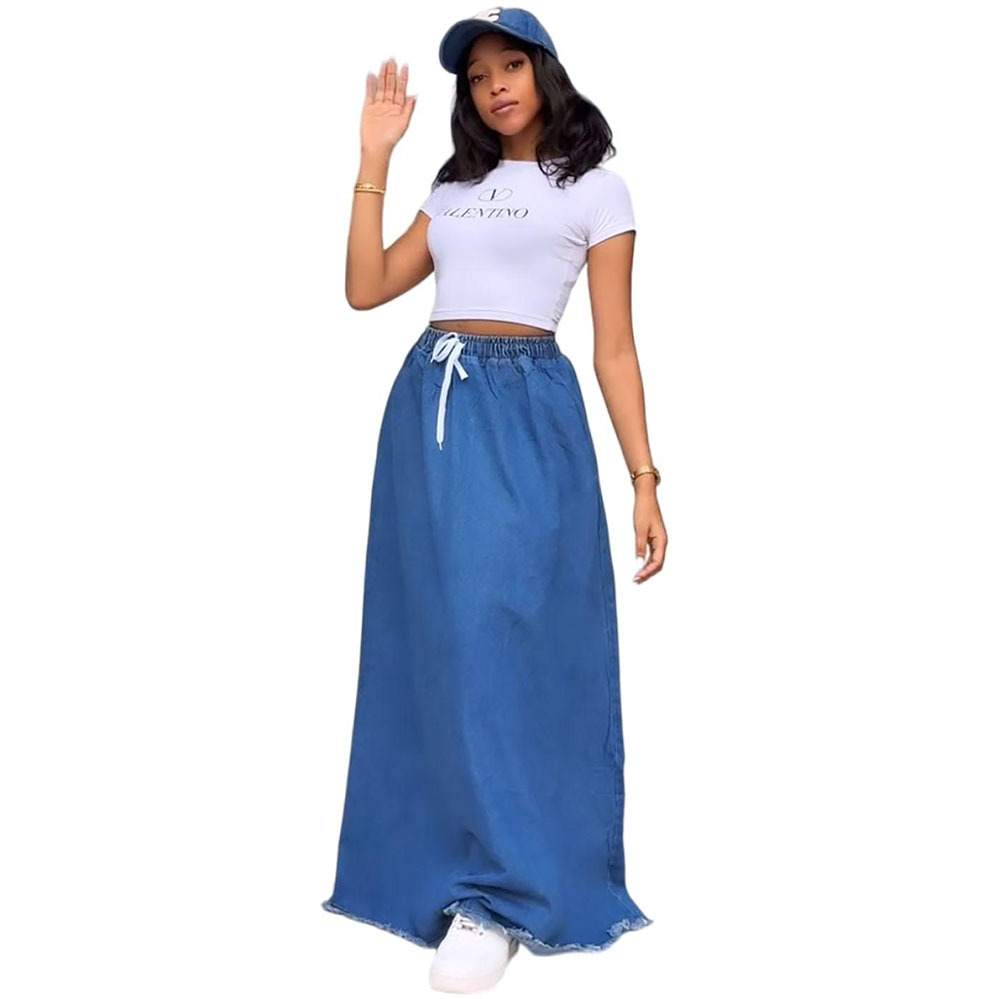 This Women's Fashion Washed Solid Color Drawstring High Waist Ruffle Long Denim Skirt And Made Of polyester And Spandex Material. It Is a Must-Have Item For Everyday use. Skirts Styles Range From Casual To Sporty, Sexy To Classic, No One Can Refuse The Temptation Of Skirts. Shop retail Skirts For Women At BamBam You Will Find wider Range Selections - Women’s Maxi And Denim Skirts, Mini And Leather Skirts, High Waist And Pencil Skirts, Midi And Pleated Skirts, Bohemian And Chiffon Skirts...When You Need More retail Women Skirts, You Can Always Find What You Need On Our retail Women Clothing Online Store.