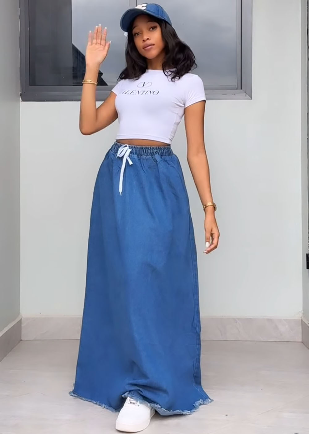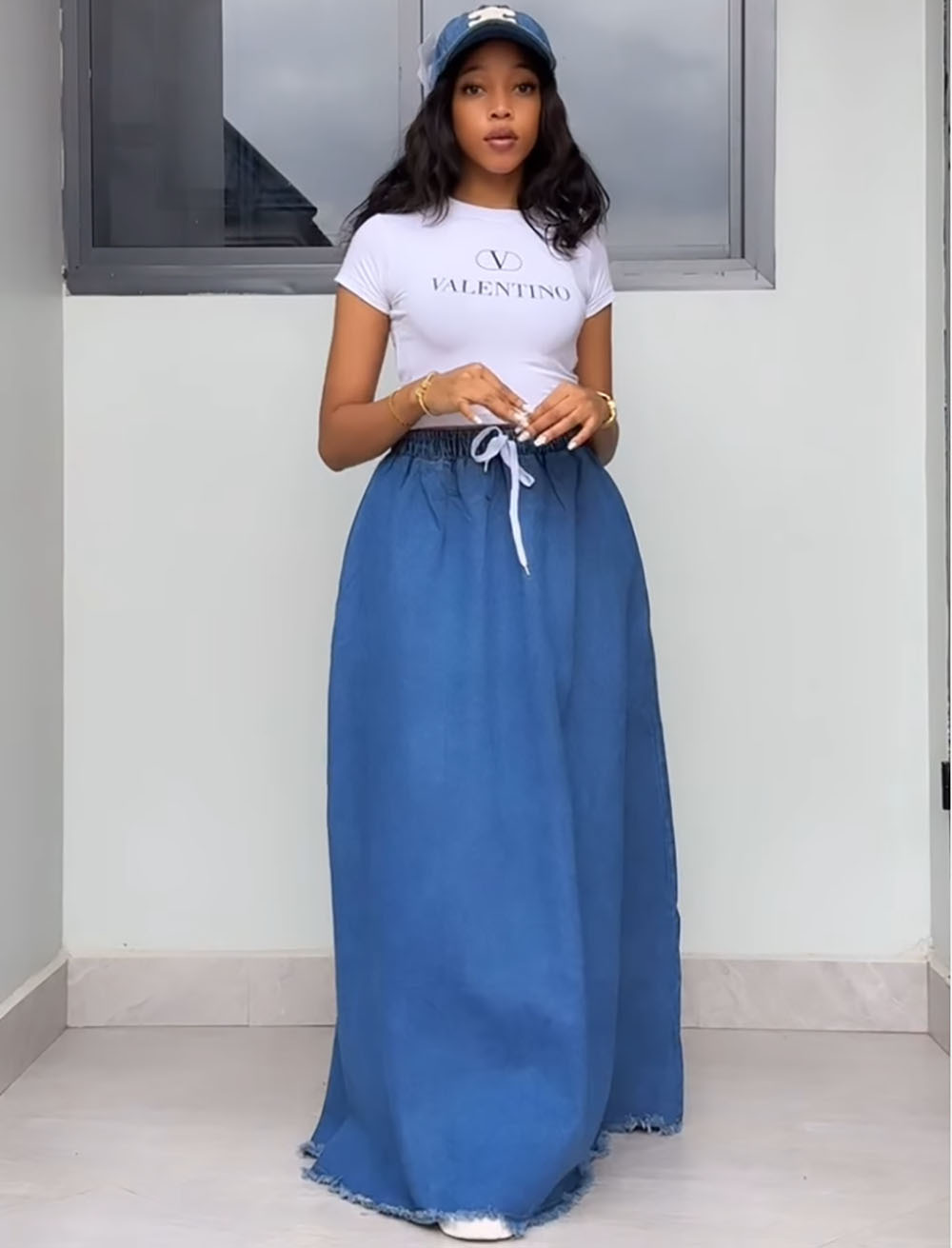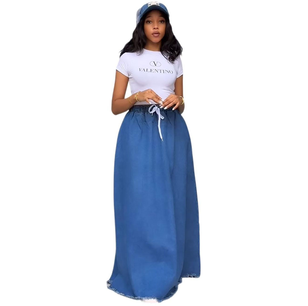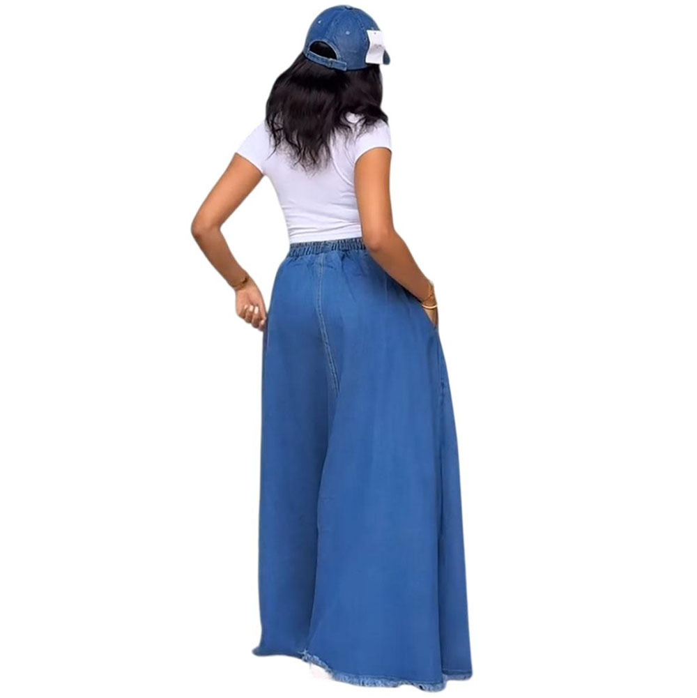 This Women's Fashion Washed Solid Color Drawstring High Waist Ruffle Long Denim Skirt And Made Of polyester And Spandex Material. It Is a Must-Have Item For Everyday use. Skirts Styles Range From Casual To Sporty, Sexy To Classic, No One Can Refuse The Temptation Of Skirts. Shop retail Skirts For Women At BamBam You Will Find wider Range Selections - Women’s Maxi And Denim Skirts, Mini And Leather Skirts, High Waist And Pencil Skirts, Midi And Pleated Skirts, Bohemian And Chiffon Skirts...When You Need More retail Women Skirts, You Can Always Find What You Need On Our retail Women Clothing Online Store.