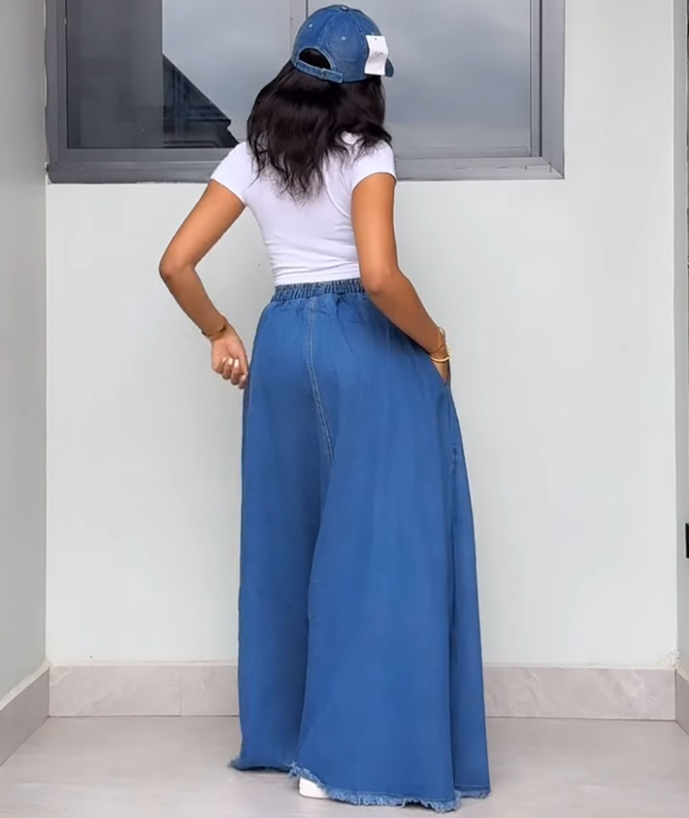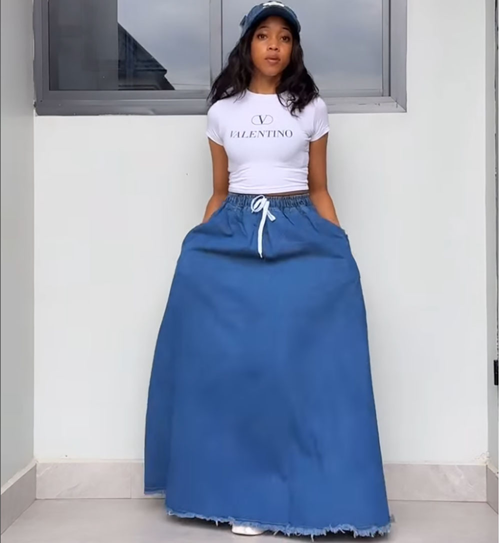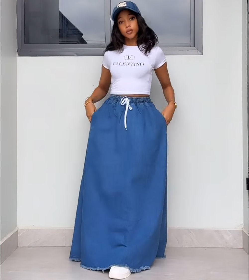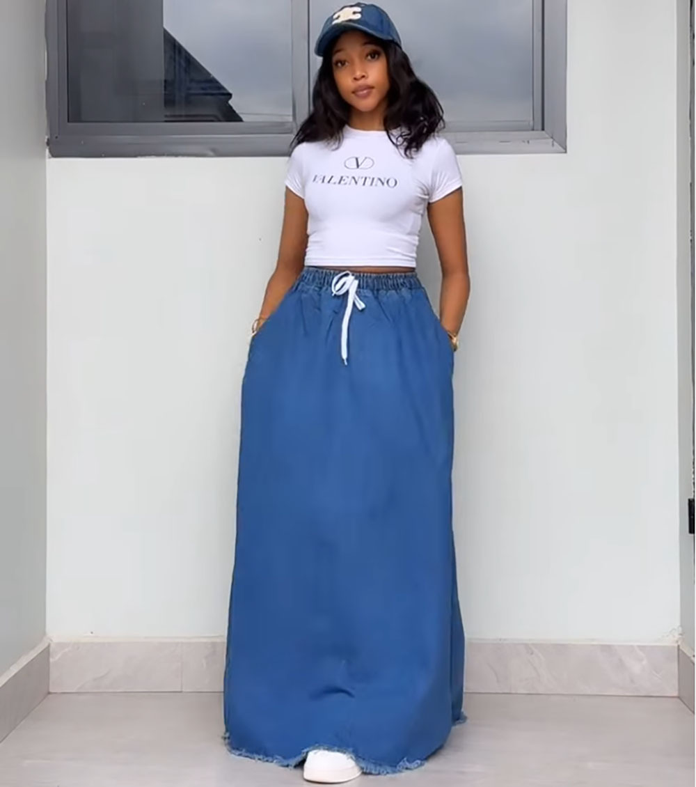 This Women's Fashion Washed Solid Color Drawstring High Waist Ruffle Long Denim Skirt And Made Of polyester And Spandex Material. It Is a Must-Have Item For Everyday use. Skirts Styles Range From Casual To Sporty, Sexy To Classic, No One Can Refuse The Temptation Of Skirts. Shop retail Skirts For Women At BamBam You Will Find wider Range Selections - Women’s Maxi And Denim Skirts, Mini And Leather Skirts, High Waist And Pencil Skirts, Midi And Pleated Skirts, Bohemian And Chiffon Skirts...When You Need More retail Women Skirts, You Can Always Find What You Need On Our retail Women Clothing Online Store.