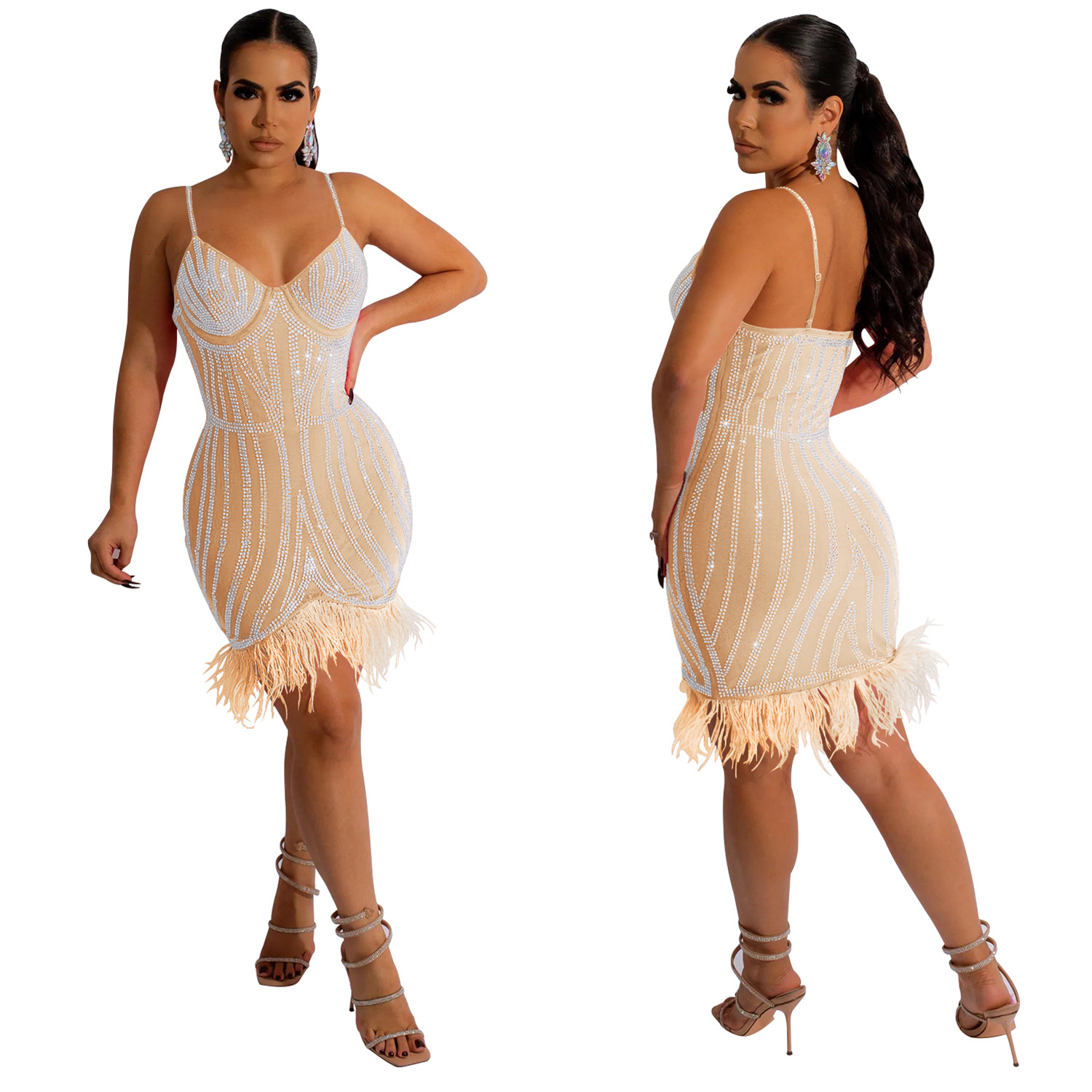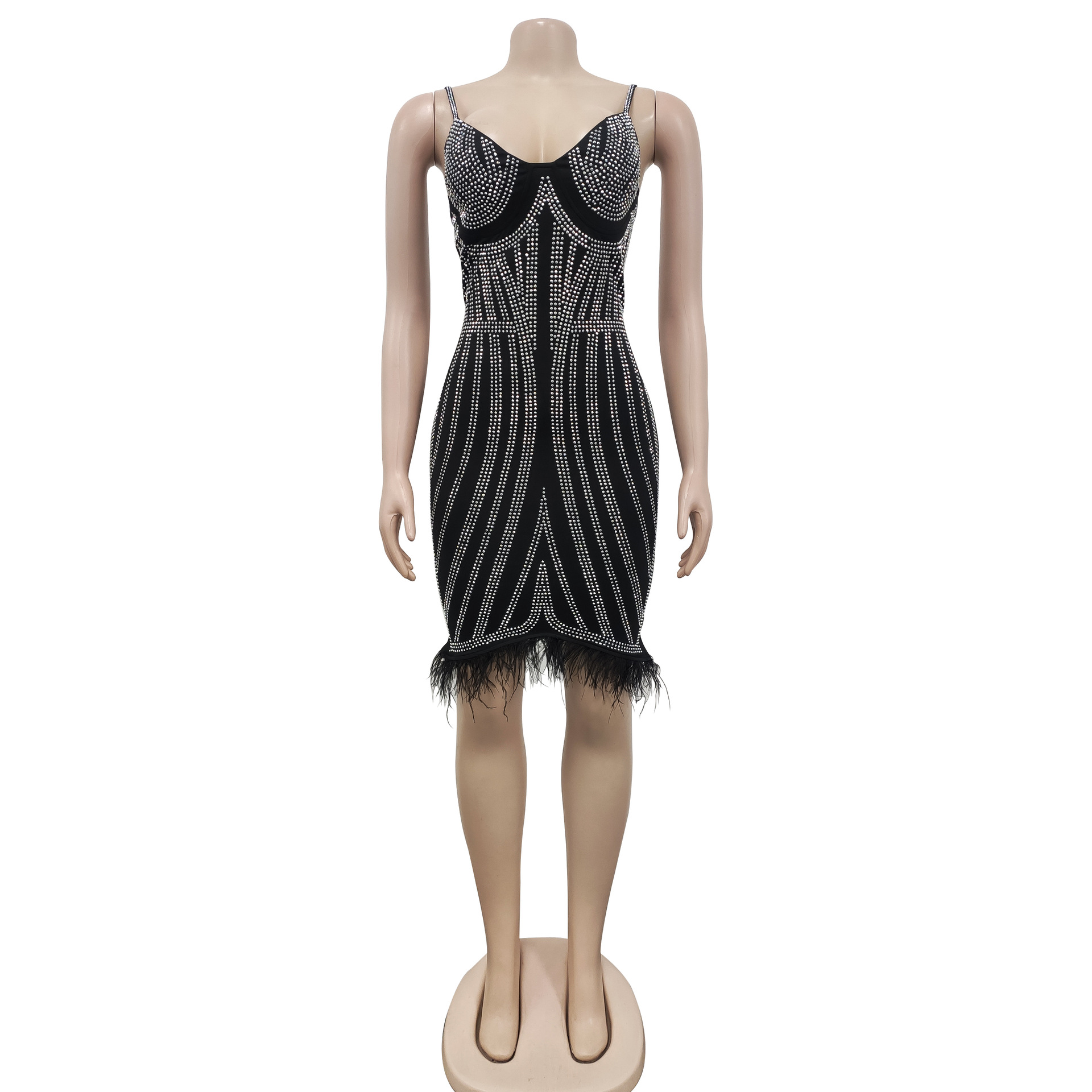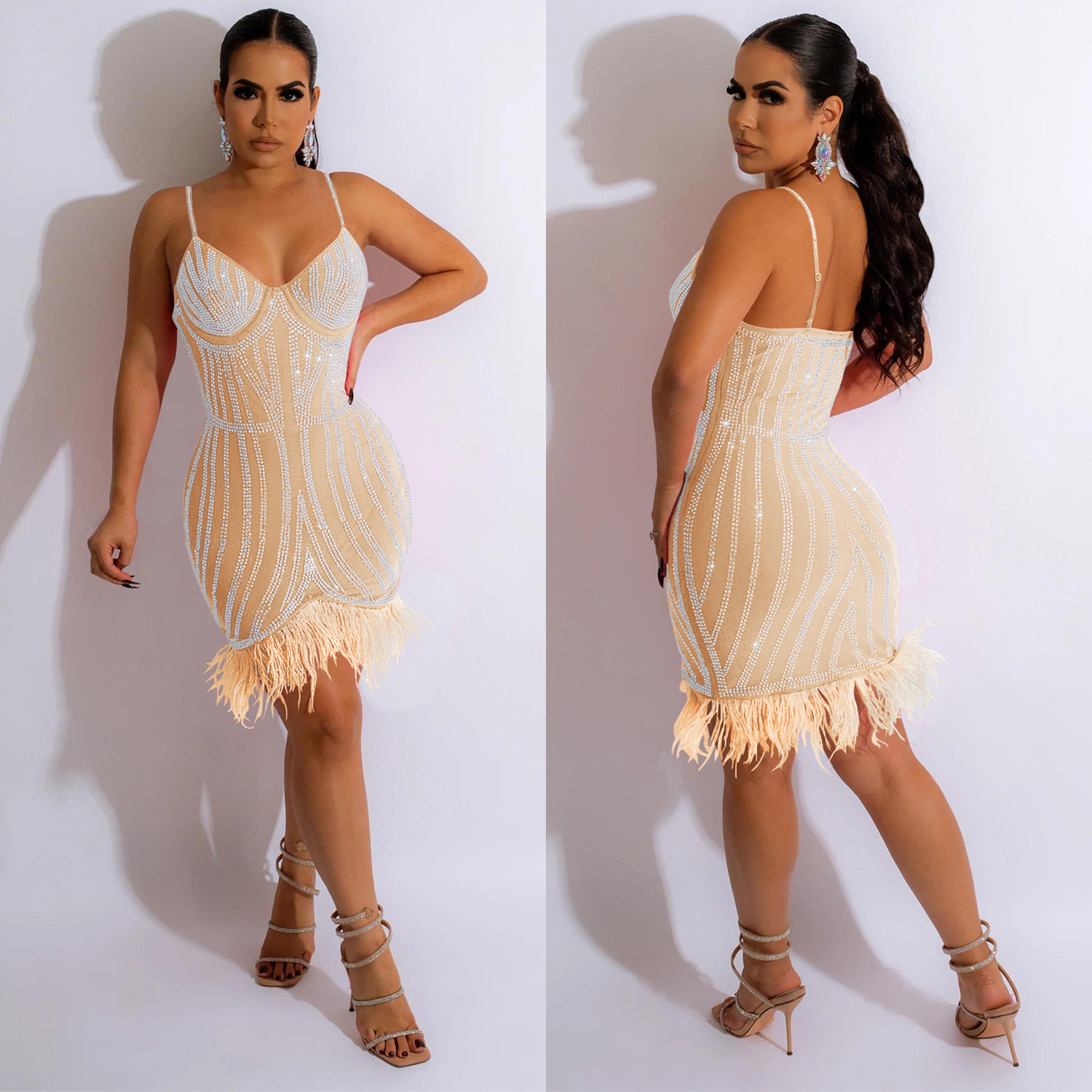 This Women's Fashionable Sleeveless Beaded Feather Strap Club Dress Design Made Of High Quality polyester And Spandex Material, Which Is Stretchy, Soft And Comfortable. This Is Always On Trend. This affordable Nightclub Dresses Is a Must-Have Item For Parties, Cocktail, Dating And Events Occasions. Sexy Club Dresses At BamBam Comes With Huge Selections - Sequins, Beaded, Satin, Leather, Velvet, Lace, Mesh... When You Need retail Club Dresses, You Can Always Find Huge Selections And Reasonable Prices On Our retail Women Clothing Online Store.