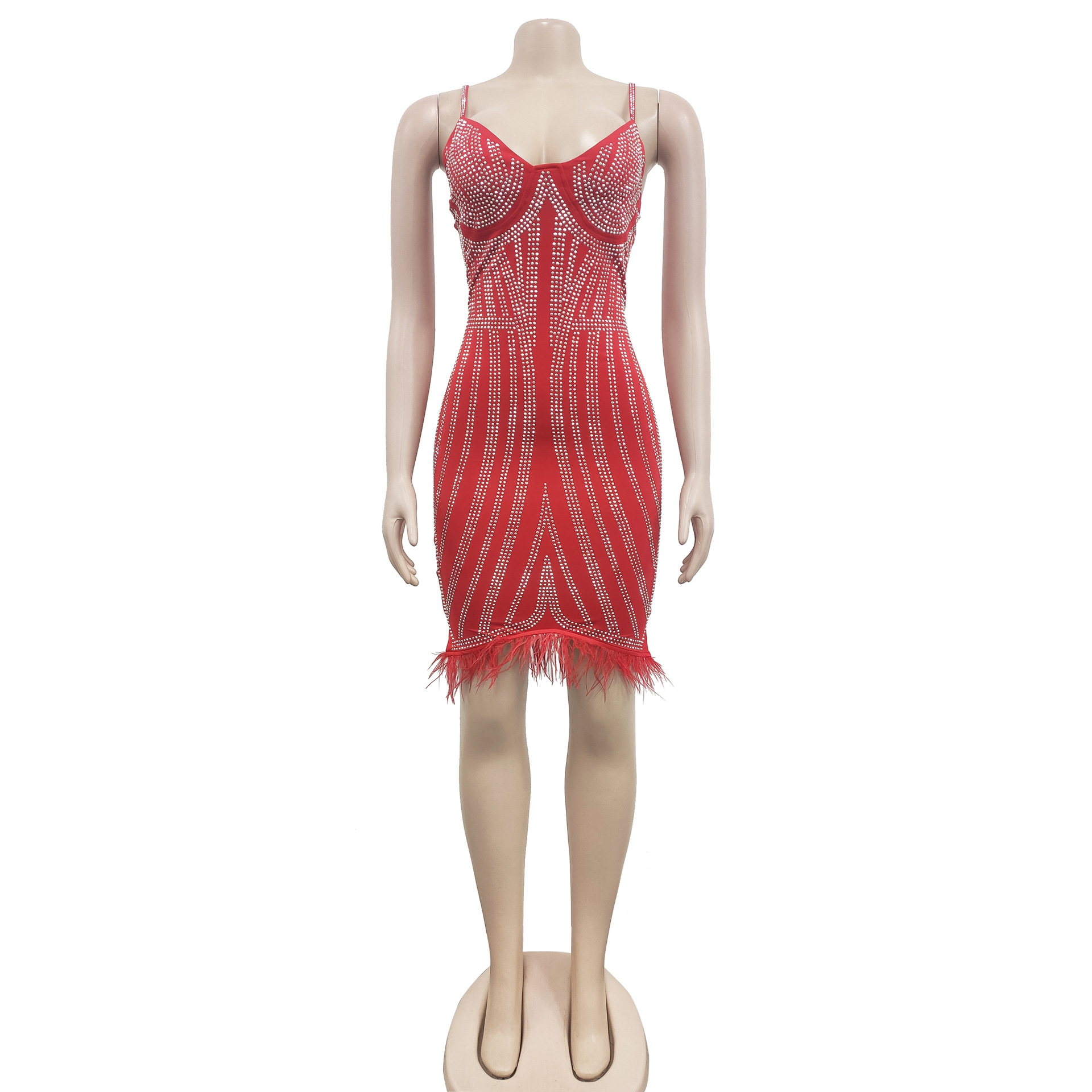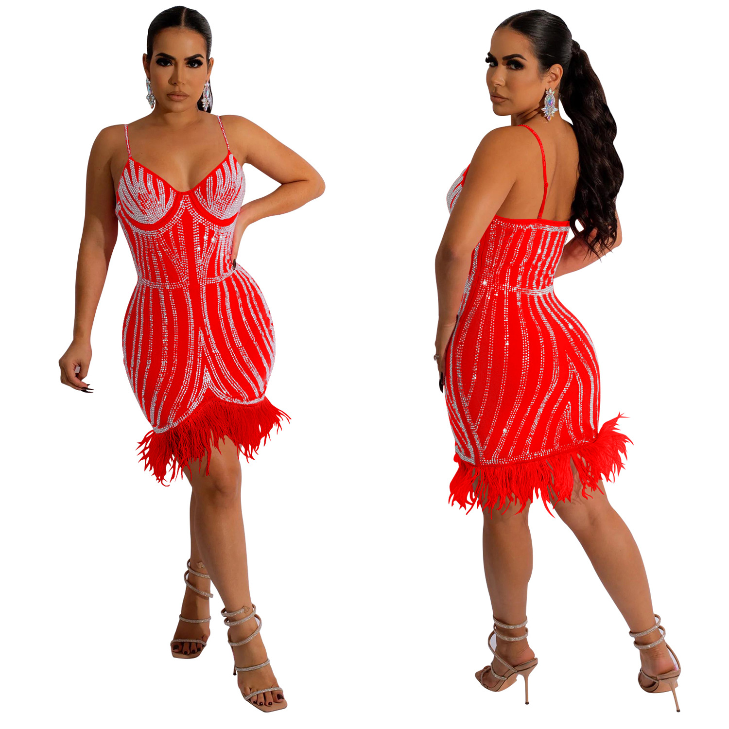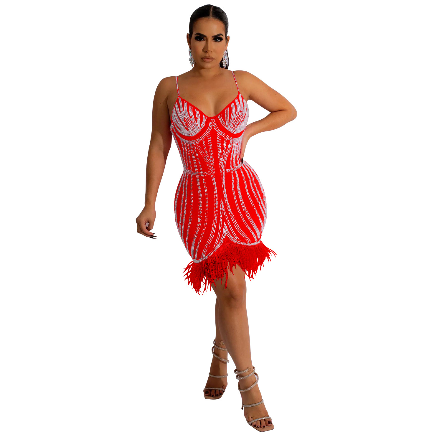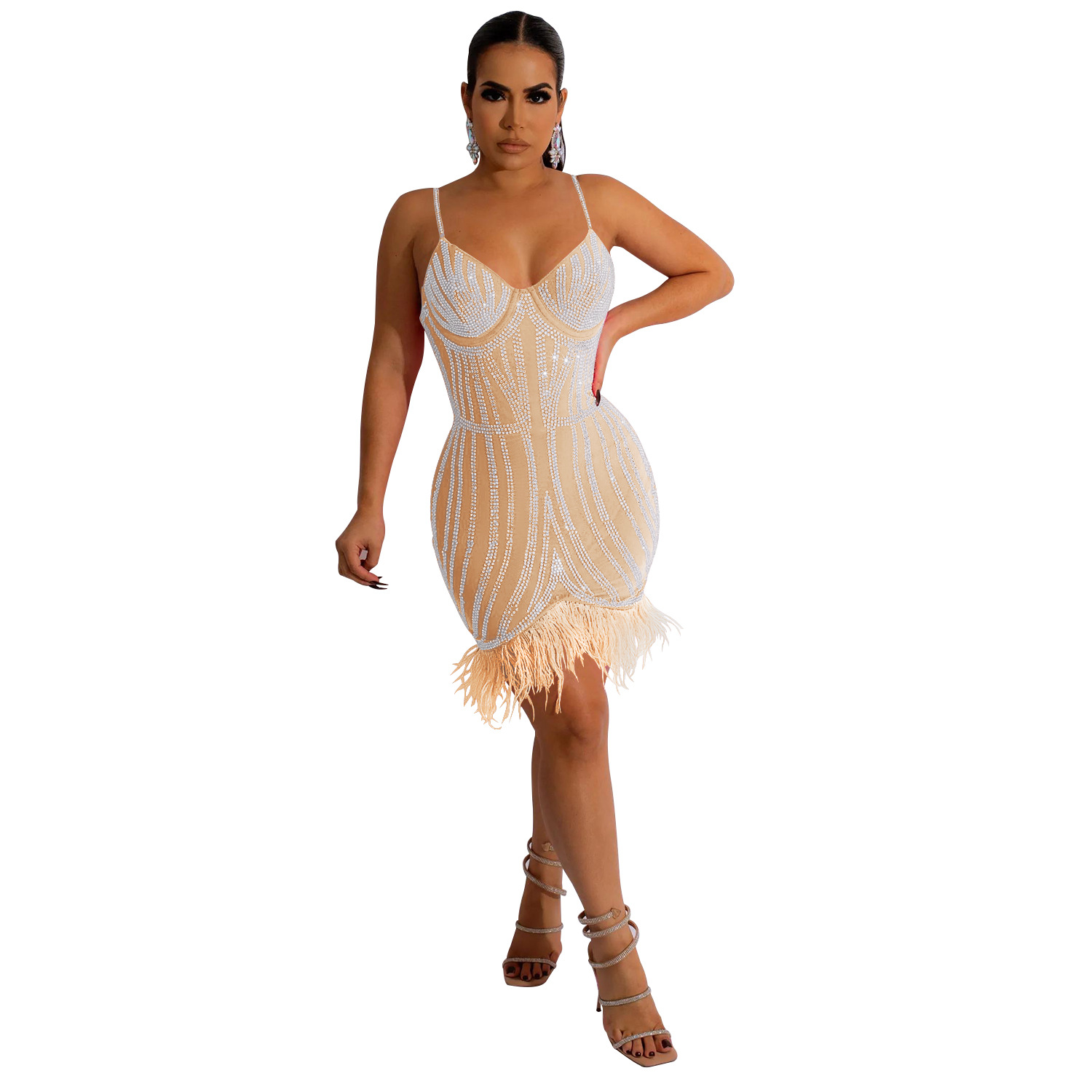 This Women's Fashionable Sleeveless Beaded Feather Strap Club Dress Design Made Of High Quality polyester And Spandex Material, Which Is Stretchy, Soft And Comfortable. This Is Always On Trend. This affordable Nightclub Dresses Is a Must-Have Item For Parties, Cocktail, Dating And Events Occasions. Sexy Club Dresses At BamBam Comes With Huge Selections - Sequins, Beaded, Satin, Leather, Velvet, Lace, Mesh... When You Need retail Club Dresses, You Can Always Find Huge Selections And Reasonable Prices On Our retail Women Clothing Online Store.