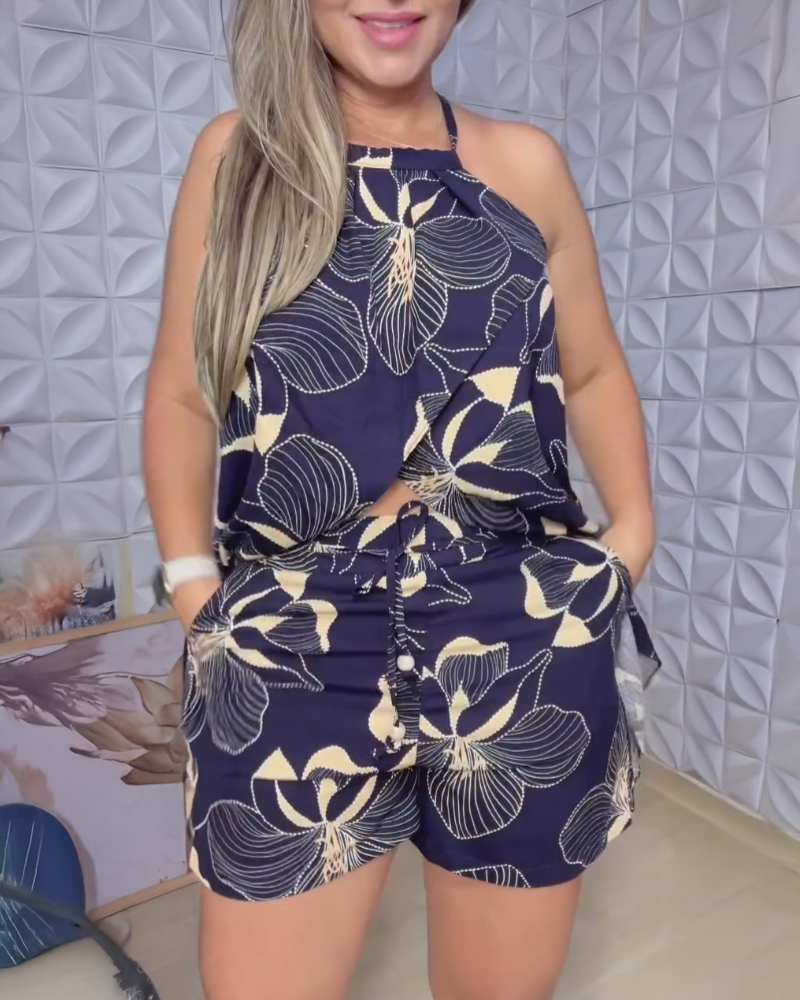 This Women's Floral Print Halter Neck Slit Top + Elastic Waist Shorts Set Design Made Of High Quality polyester And Spandex Material. It Is Stretchy, Durable And Comfortable. It Come With The Top And Shorts. retail Short Sets Saves Some People From The Trouble Of Matching. And For Matchmakers It Is More Flexible Than One-Piece Outfit. Two Piece Short Set Can Be Worn Together Or Individually, Ladies Can Match Them According To Different Occasions. Grab Different Two Piece Short Sets For This Spring And Summer.