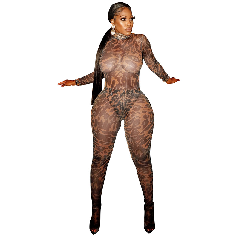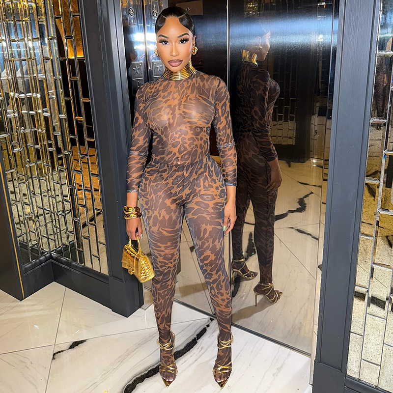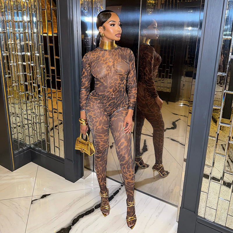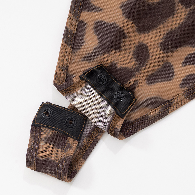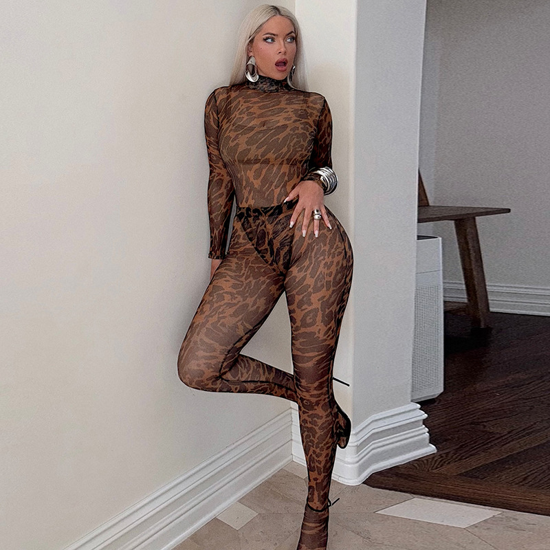 This Women's Leopard Print Mesh High Neck Long Sleeve Fingerless Glove Bodysuit Tight Fitting Leggings Set Design Made Of High Quality polyester And Spandex Material. It Is Stretchy, Durable And Comfortable. It Is a Must-Have Outfit For All Seasons. retail Two Piece Pant Sets Can Solve Your cloth selection Troubles. Explore More 2 Piece Pants Set On BamBam retail Women Clothing Online Store.