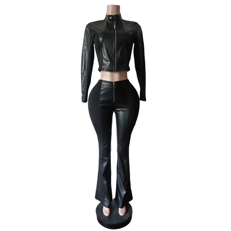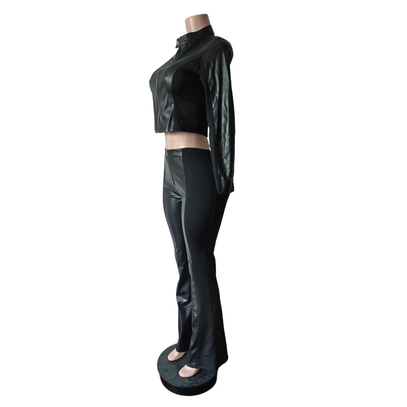 This Women's Long Sleeve Casual Elastic Pu Pants Set Design Made Of High Quality polyester And Spandex Material. It Is Stretchy, Durable And Comfortable. It Is a Must-Have Outfit For All Seasons. retail Two Piece Pant Sets Can Solve Your cloth selection Troubles. Explore More 2 Piece Pants Set On BamBam retail Women Clothing Online Store.