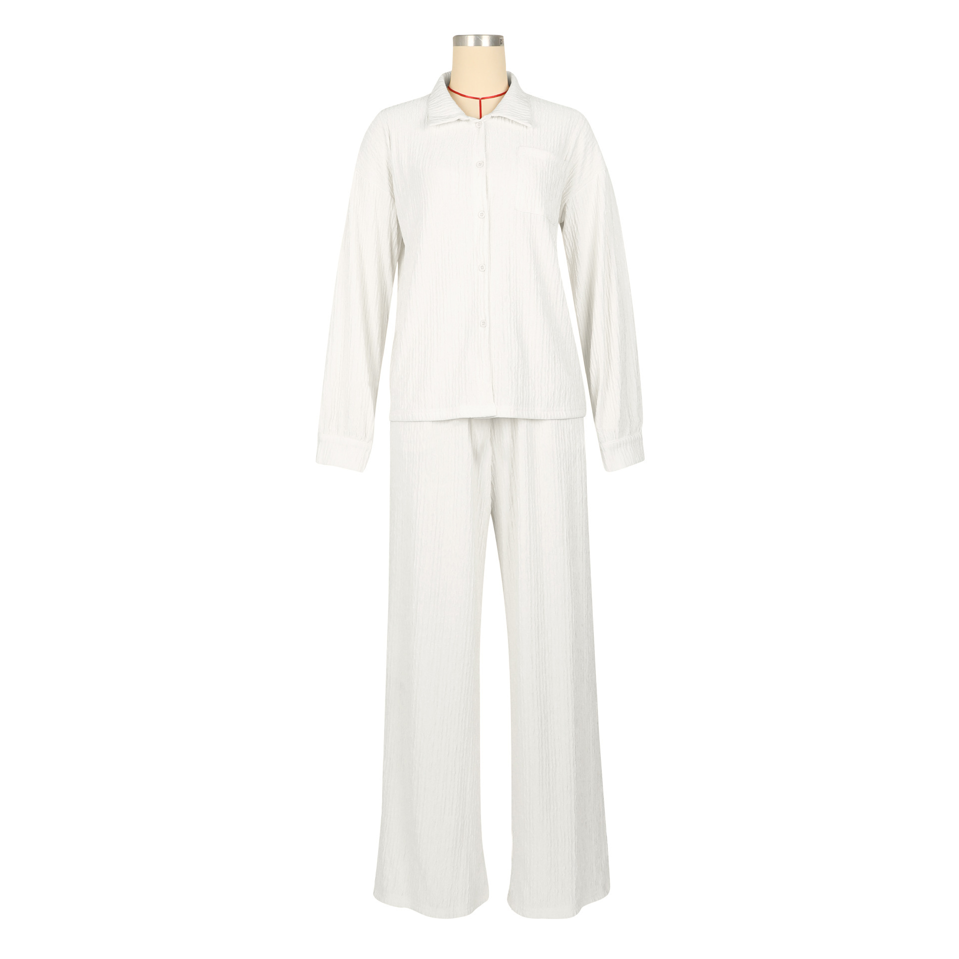 This Women's Long Sleeve Casual Shirt & Elastic Waist Straight Pants Two-Piece Set Design Made Of High Quality polyester And Spandex Material. It Is Stretchy, Durable And Comfortable. It Is a Must-Have Outfit For All Seasons. retail Two Piece Pant Sets Can Solve Your cloth selection Troubles. Explore More 2 Piece Pants Set On BamBam retail Women Clothing Online Store.