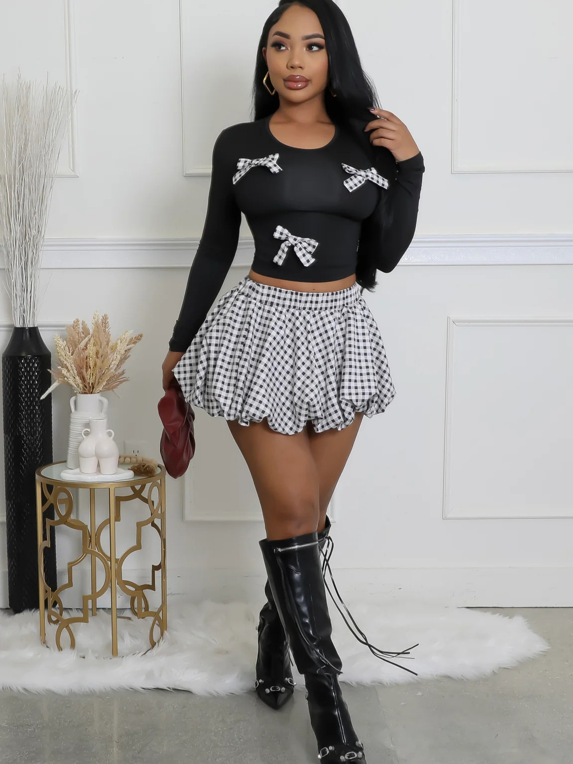 This Women's Long-Sleeve Knit Top & Plaid Bubble Skirt Fashion Set Design Made Of High Quality polyester And Spandex Material. It Is Stretchy, Durable And Comfortable. It Come With The Top And Skirt Matching Set. Women’s Skirt Suit Sets Is a Great Alternative To One Piece Outfit. It Can Either Be Worn Together Or Individually, So You Can Combine Them Endlessly. Grab Different Two Piece Skirt Set retail On Our Website a Women's Clothing Store Online At Really affordable price And Enjoy fast delivery worldwide.