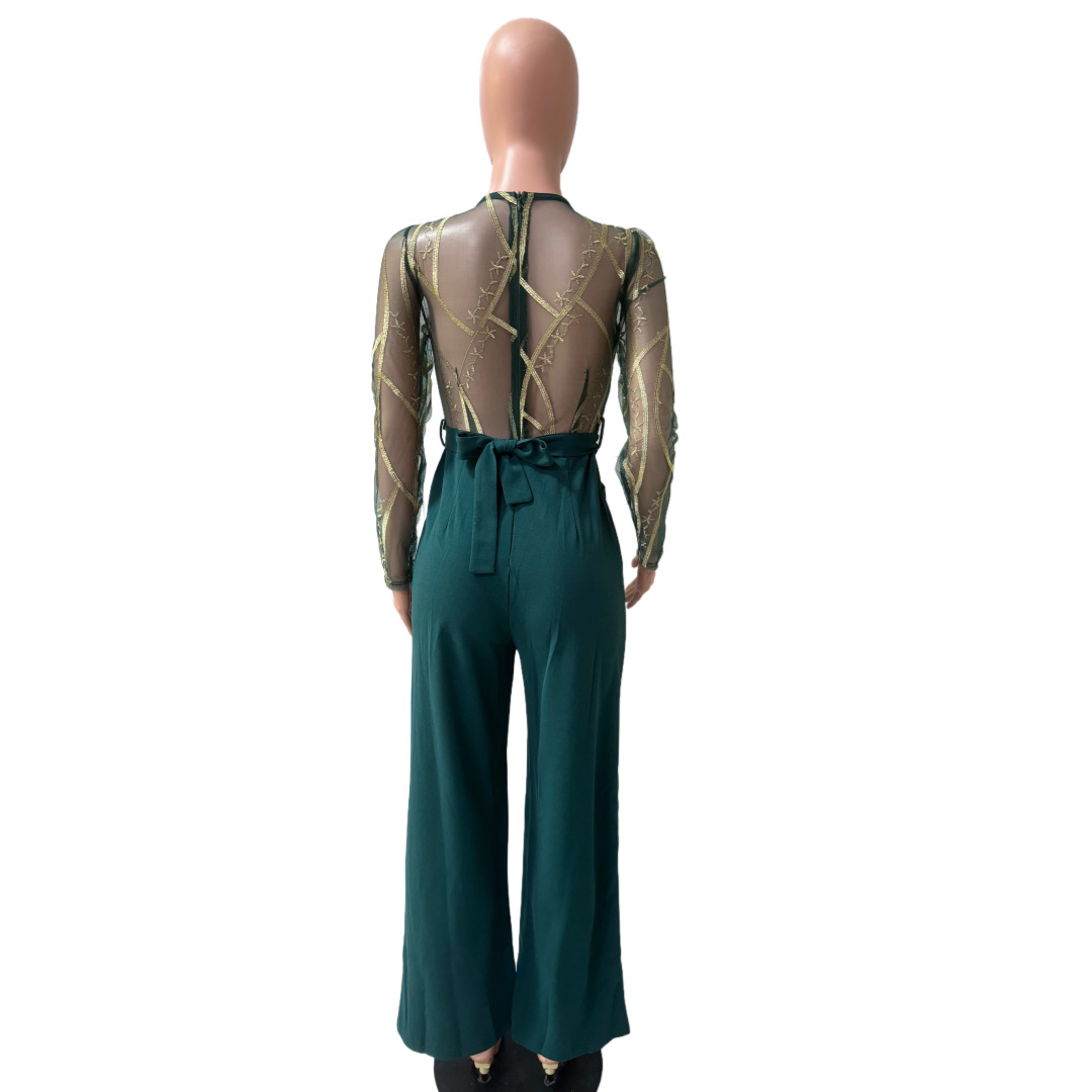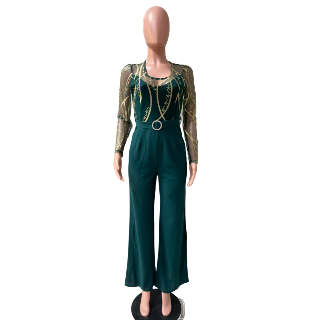 This Women's Mesh See-Through Embroidery Patchwork Sexy Jumpsuit (Includes Belt) Design Made Of High Quality Polyster And Spandex Material. It Is Stretchy, Durable And Comfortable. Affordable Sexy Jumpsuits For Women Has Long Been a Party Favorite. BamBam provides a Rich selection Of Sequin, Beaded, See Through Mesh, Leopard, Floral Lace, Leather, Velvet, Tight And Fitted retail Jumpsuit Without Moq Limit.