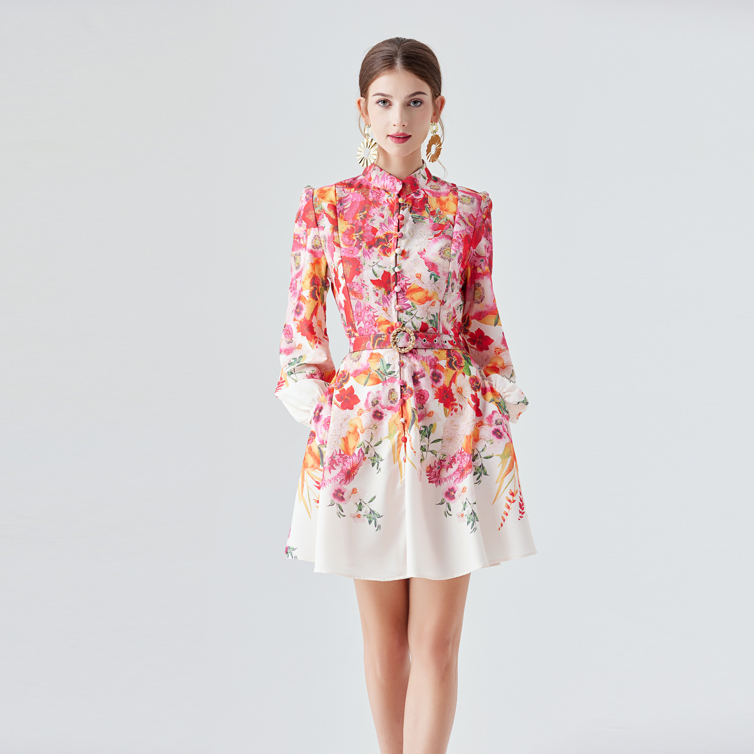 This Women's Print Long Sleeve Lantern Sleeve Stand Collar Single-Breasted Short Dress With Belt Design Made Of High Quality polyester And Spandex Material. It Is Stretchy, Durable And Comfortable. Casual Dresses With Long Sleeves Can Not Only Be Worn As Outerwear In Spring And Autumn, But Also Matching a Jacket In Winter, It Is a Must Have Item For Every Season. Grab Really Great Buy Casual Dresses For Women And Grow Your Business. No Moq In BamBam.