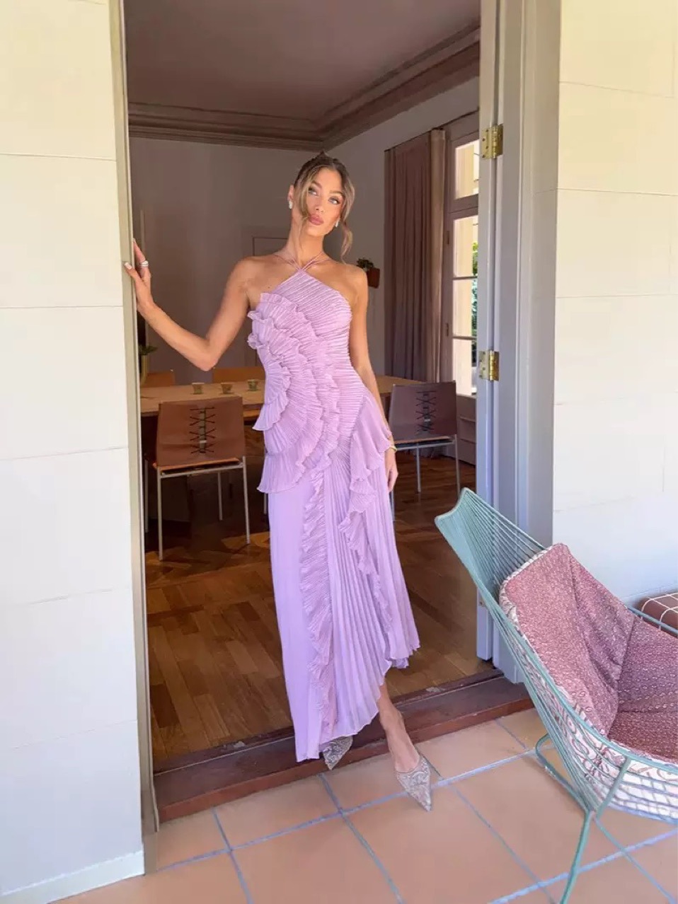 This Women's Ruffled Pleated Luxury Chiffon Dress Design Made Of High Quality polyester And Spandex Material. It Is Stretchy, Durable And Comfortable. Casual Dresses With Long Sleeves Can Not Only Be Worn As Outerwear In Spring And Autumn, But Also Matching a Jacket In Winter, It Is a Must Have Item For Every Season. Grab Really Great Buy Casual Dresses For Women And Grow Your Business. No Moq In BamBam.