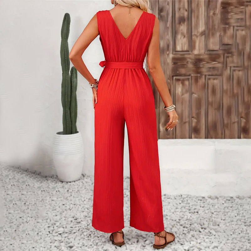 This Women's Ruffled Straight Wide Leg Belt Sleeveless Casual Jumpsuit Design Made Of High Quality Polyster And Spandex Material. It Is Stretchy, Durable And Comfortable. Affordable Sexy Jumpsuits For Women Has Long Been a Party Favorite. BamBam provides a Rich selection Of Sequin, Beaded, See Through Mesh, Leopard, Floral Lace, Leather, Velvet, Tight And Fitted retail Jumpsuit Without Moq Limit.