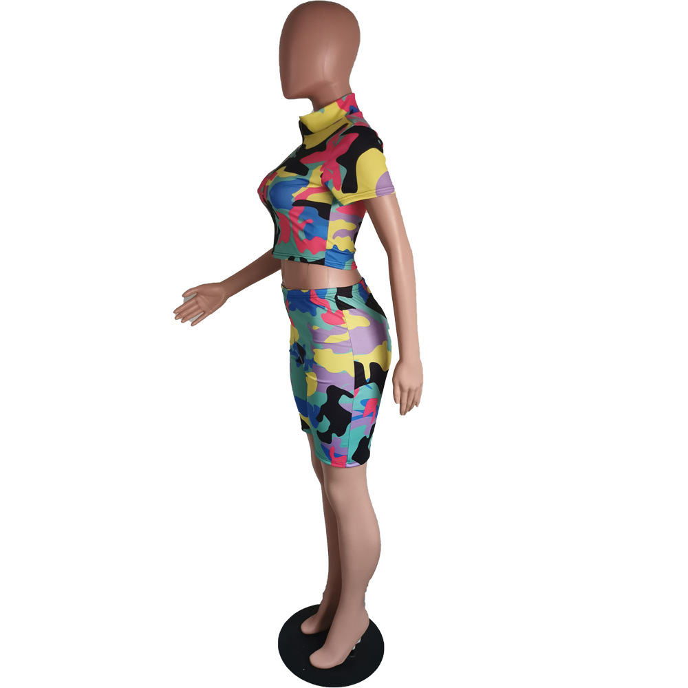 This Women's Sexy Camouflage Short Sleeve Zipper High Waist Two-Piece Set Design Made Of High Quality polyester And Spandex Material. It Is Stretchy, Durable And Comfortable. It Come With The Top And Shorts. retail Short Sets Saves Some People From The Trouble Of Matching. And For Matchmakers It Is More Flexible Than One-Piece Outfit. Two Piece Short Set Can Be Worn Together Or Individually, Ladies Can Match Them According To Different Occasions. Grab Different Two Piece Short Sets For This Spring And Summer.