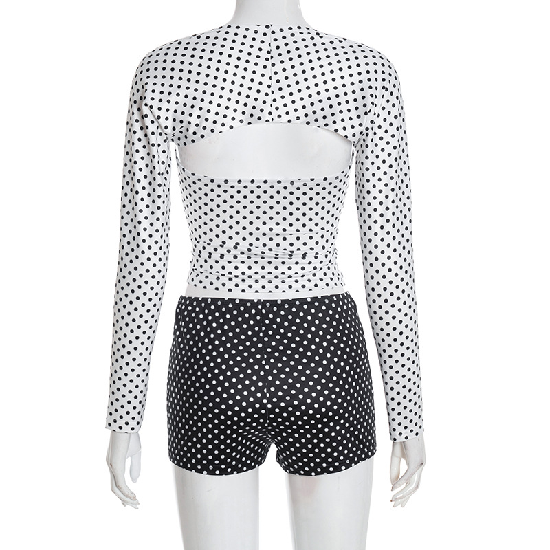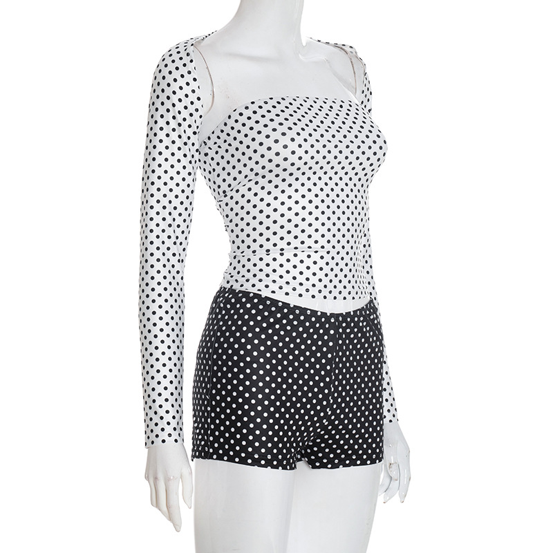 This Women's Sexy Color Block Polka Dot Long Sleeve Cape Shorts Vest Three-Piece Set Design Made Of High Quality polyester And Spandex Material. It Is Stretchy, Durable And Comfortable. It Come With The Top And Shorts. retail Short Sets Saves Some People From The Trouble Of Matching. And For Matchmakers It Is More Flexible Than One-Piece Outfit. Two Piece Short Set Can Be Worn Together Or Individually, Ladies Can Match Them According To Different Occasions. Grab Different Two Piece Short Sets For This Spring And Summer.