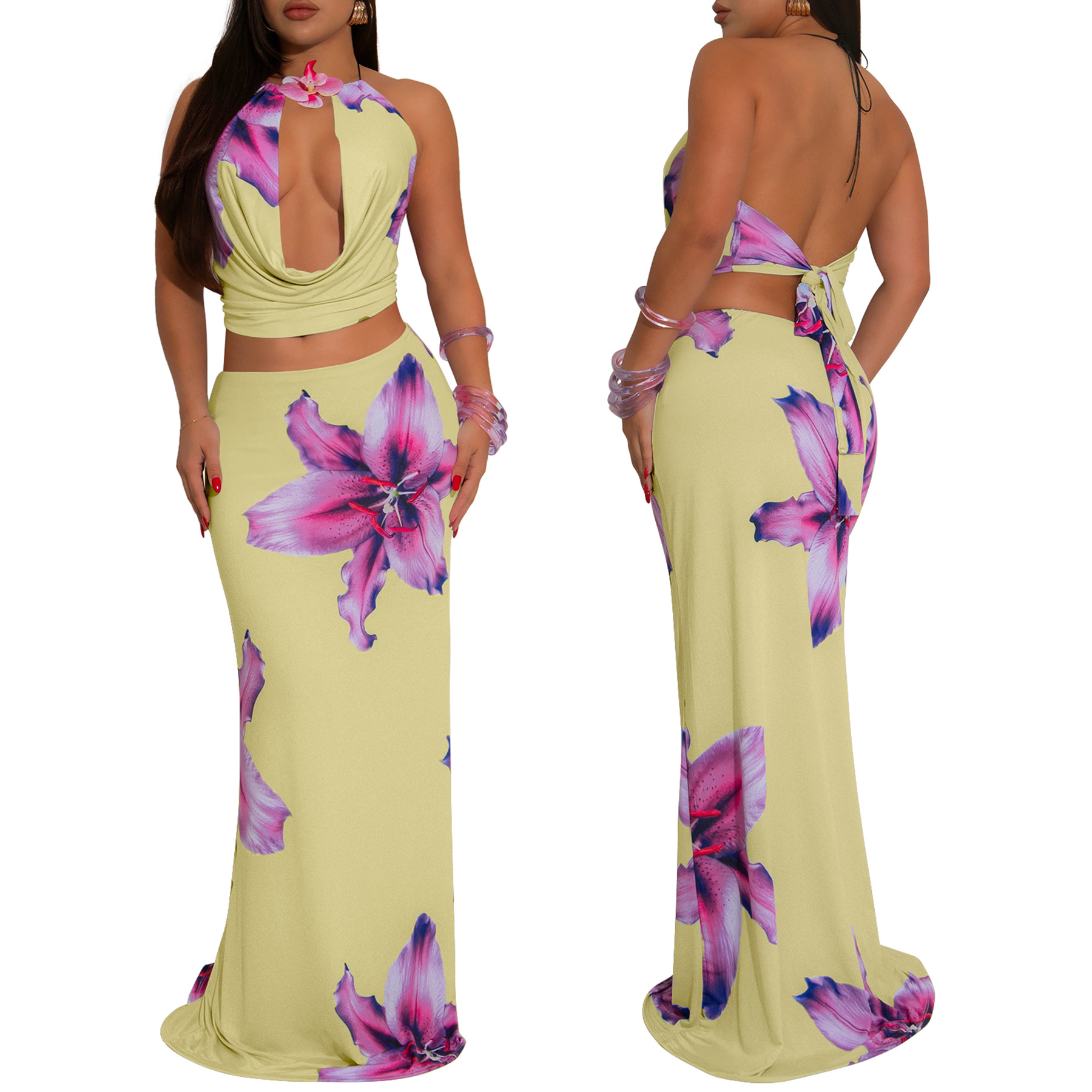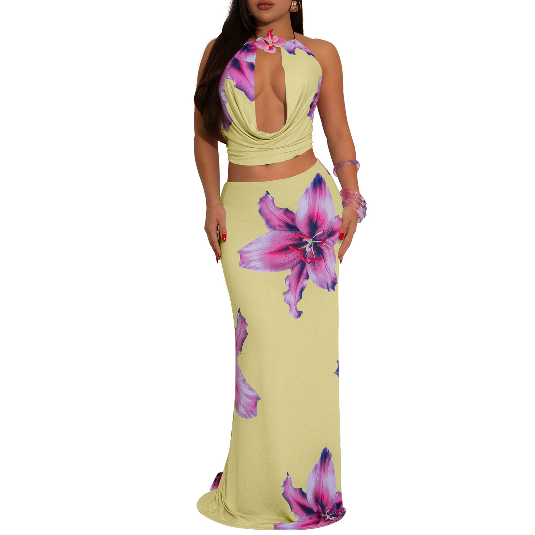 This Women's Sexy Draped Collar Low Back Halter Neck Slim Fit Print Two Piece Skirt Set Design Made Of High Quality polyester And Spandex Material. It Is Stretchy, Durable And Comfortable. It Come With The Top And Skirt Matching Set. Women’s Skirt Suit Sets Is a Great Alternative To One Piece Outfit. It Can Either Be Worn Together Or Individually, So You Can Combine Them Endlessly. Grab Different Two Piece Skirt Set retail On Our Website a Women's Clothing Store Online At Really affordable price And Enjoy fast delivery worldwide.