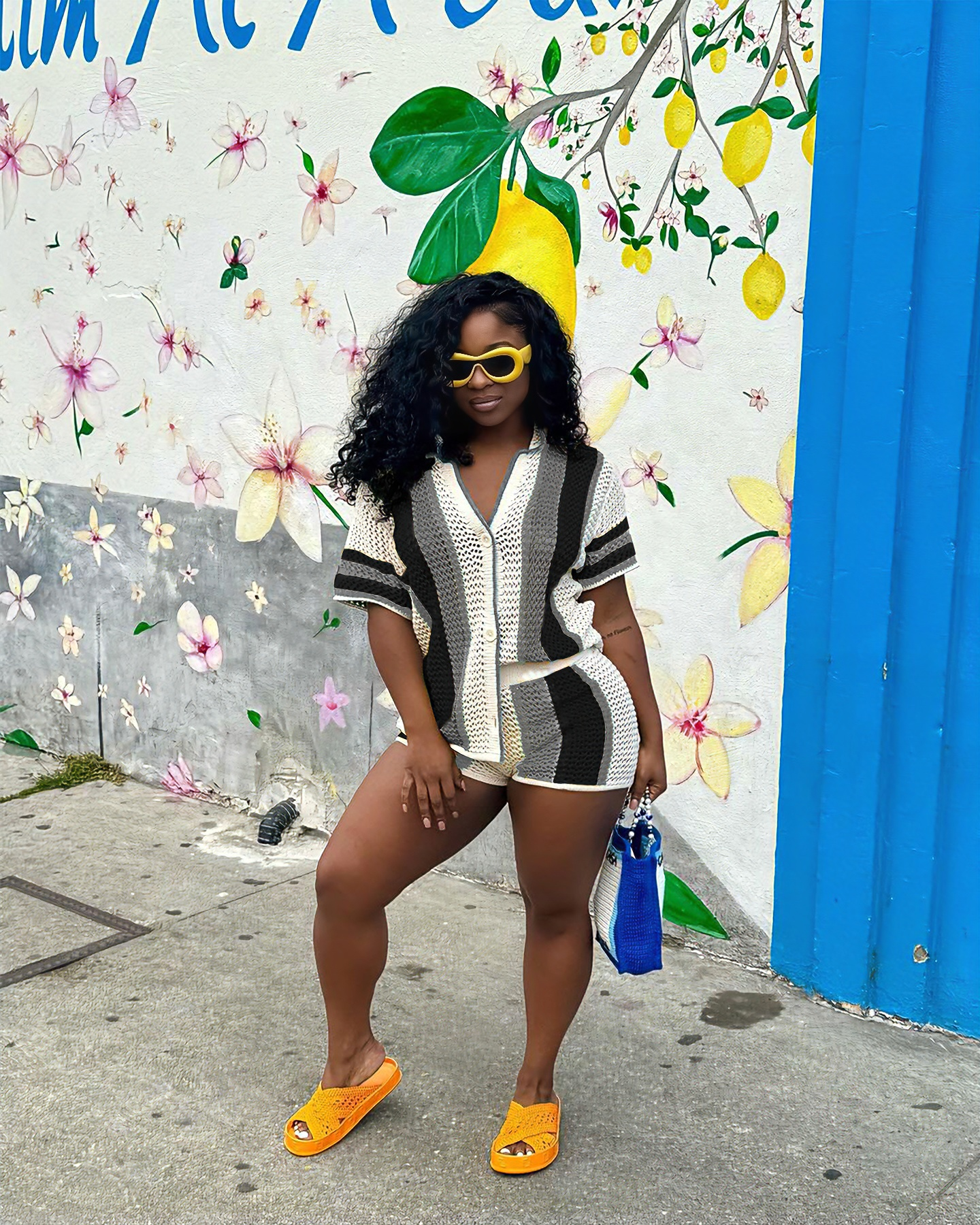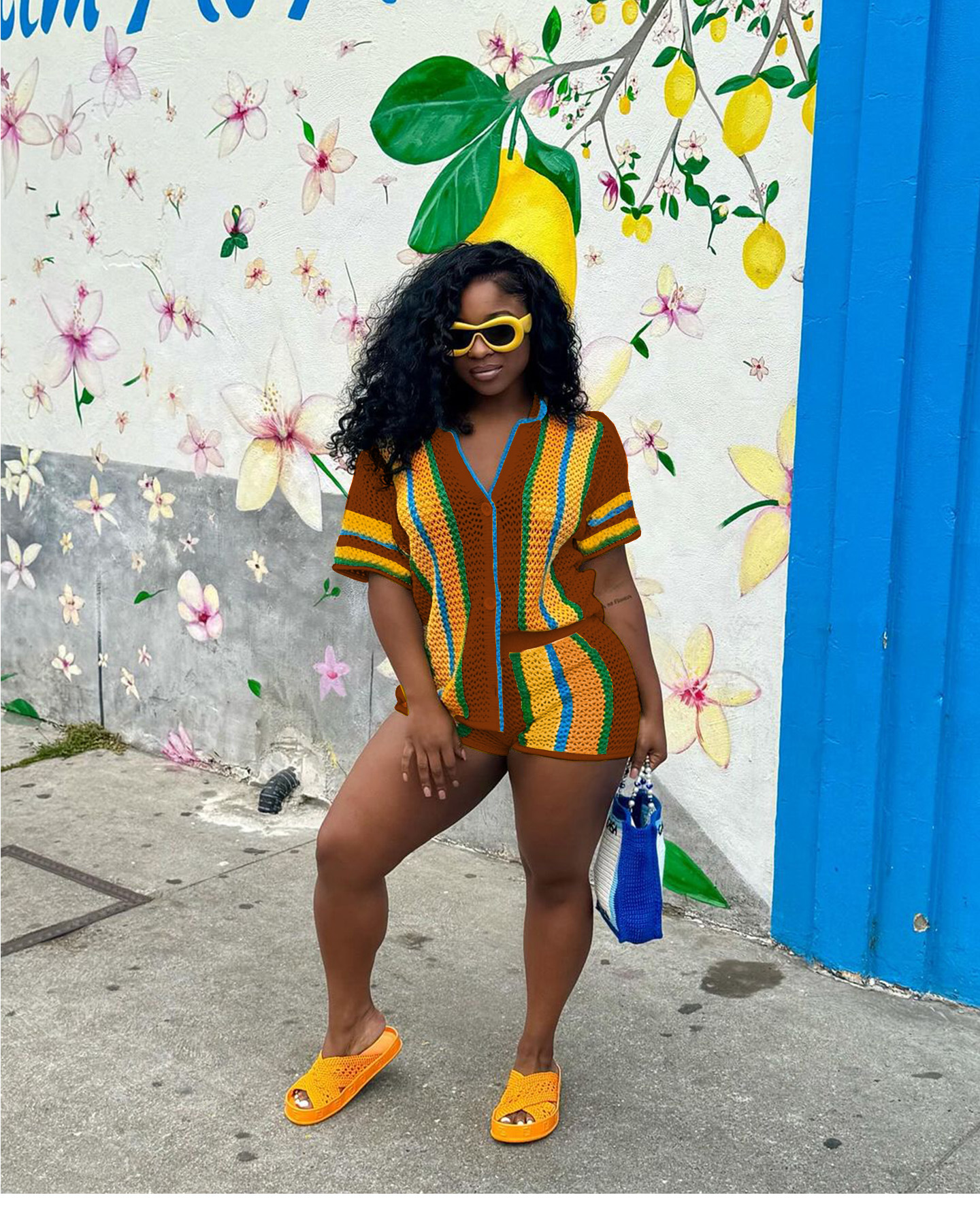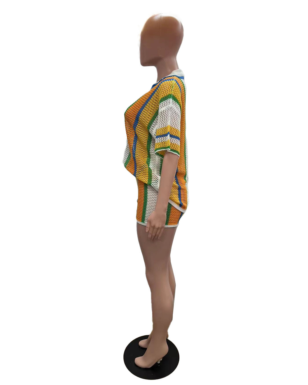 This Women's Sexy Hollow See-Through Turndown Collar Knitting Two Piece Shorts Set Design Made Of High Quality polyester And Spandex Material. It Is Stretchy, Durable And Comfortable. It Come With The Top And Shorts. retail Short Sets Saves Some People From The Trouble Of Matching. And For Matchmakers It Is More Flexible Than One-Piece Outfit. Two Piece Short Set Can Be Worn Together Or Individually, Ladies Can Match Them According To Different Occasions. Grab Different Two Piece Short Sets For This Spring And Summer.