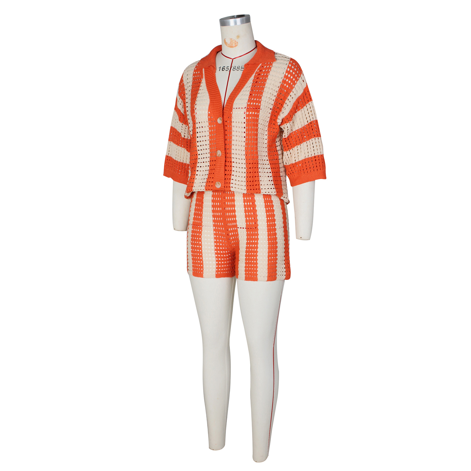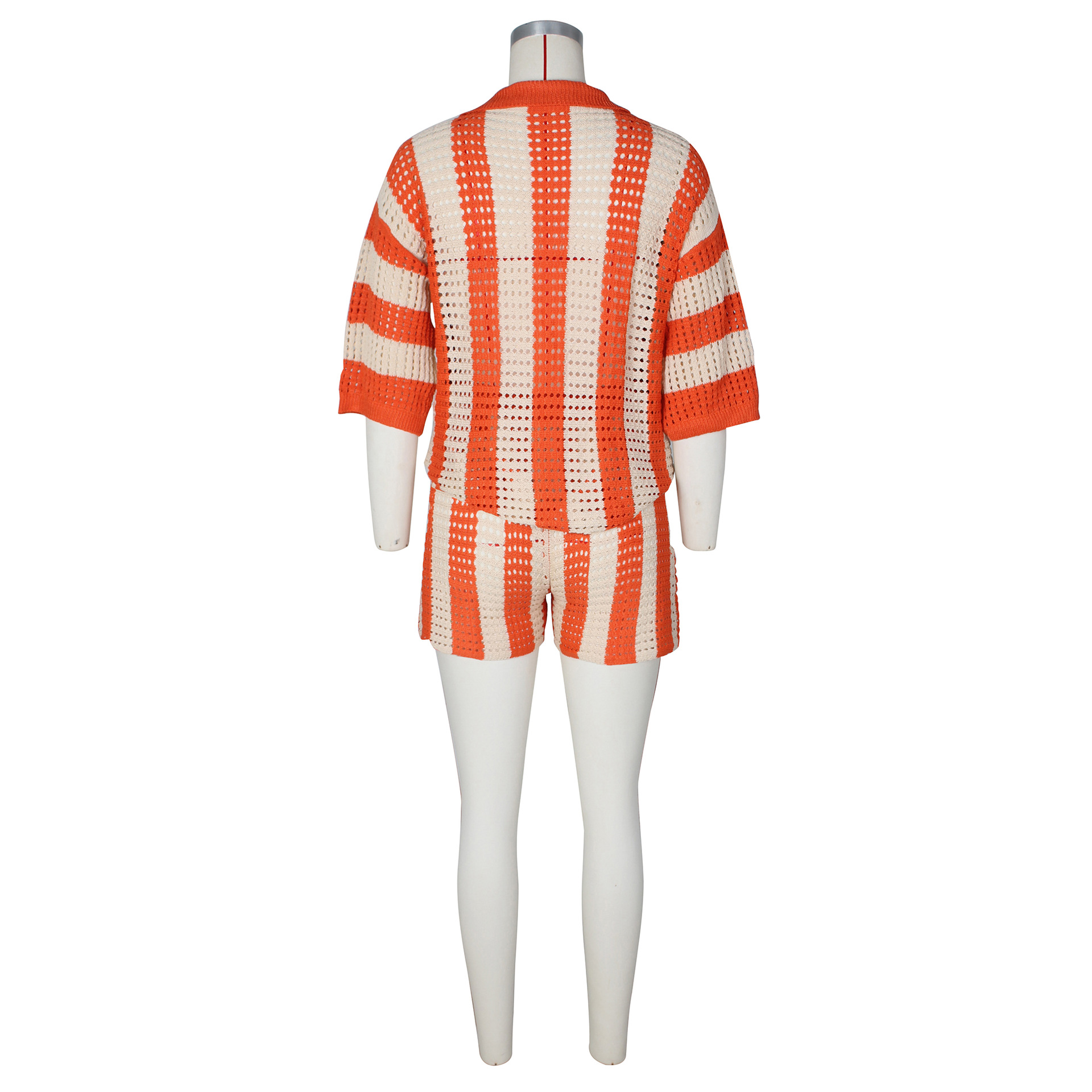 This Women's Sexy Ladies Hollow See-Through Turndown Collar Knitting Two Piece Shorts Set Design Made Of High Quality polyester And Spandex Material. It Is Stretchy, Durable And Comfortable. It Come With The Top And Shorts. retail Short Sets Saves Some People From The Trouble Of Matching. And For Matchmakers It Is More Flexible Than One-Piece Outfit. Two Piece Short Set Can Be Worn Together Or Individually, Ladies Can Match Them According To Different Occasions. Grab Different Two Piece Short Sets For This Spring And Summer.