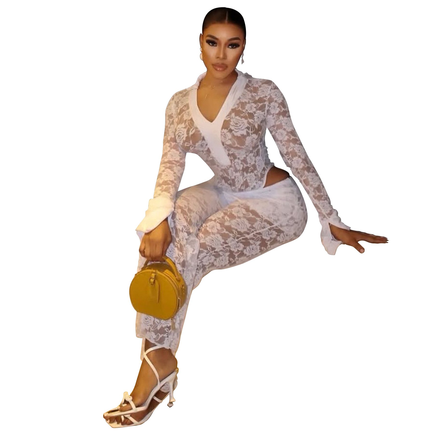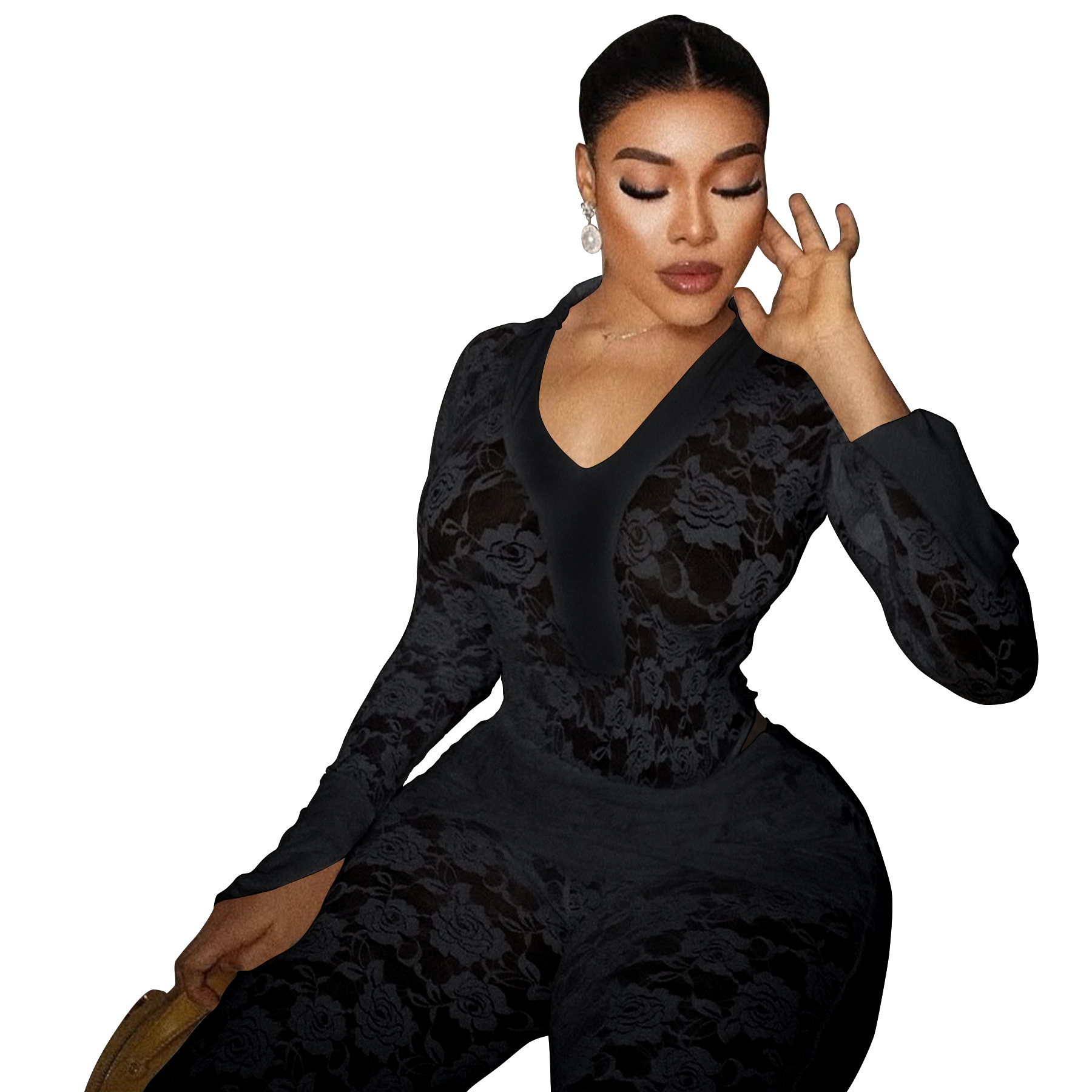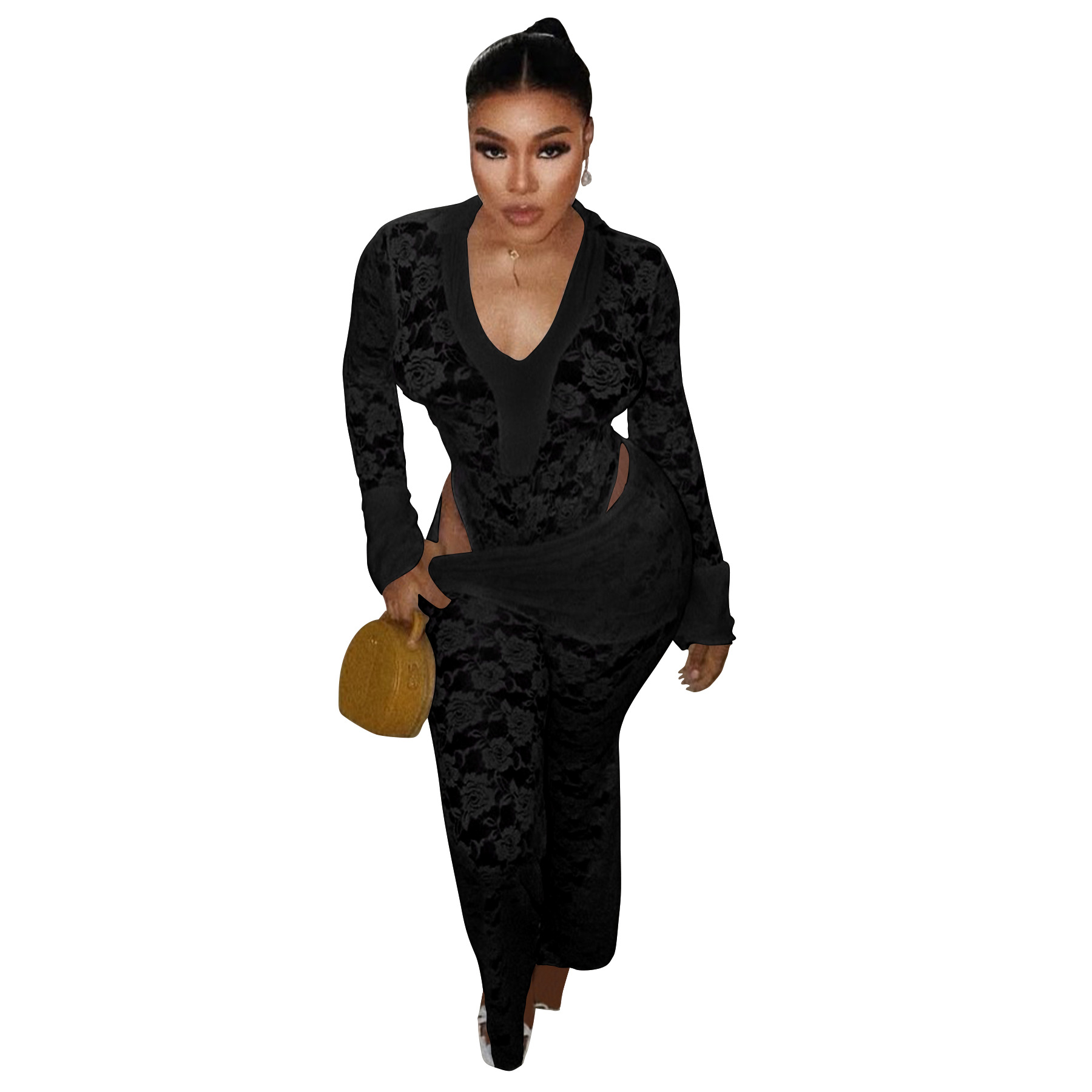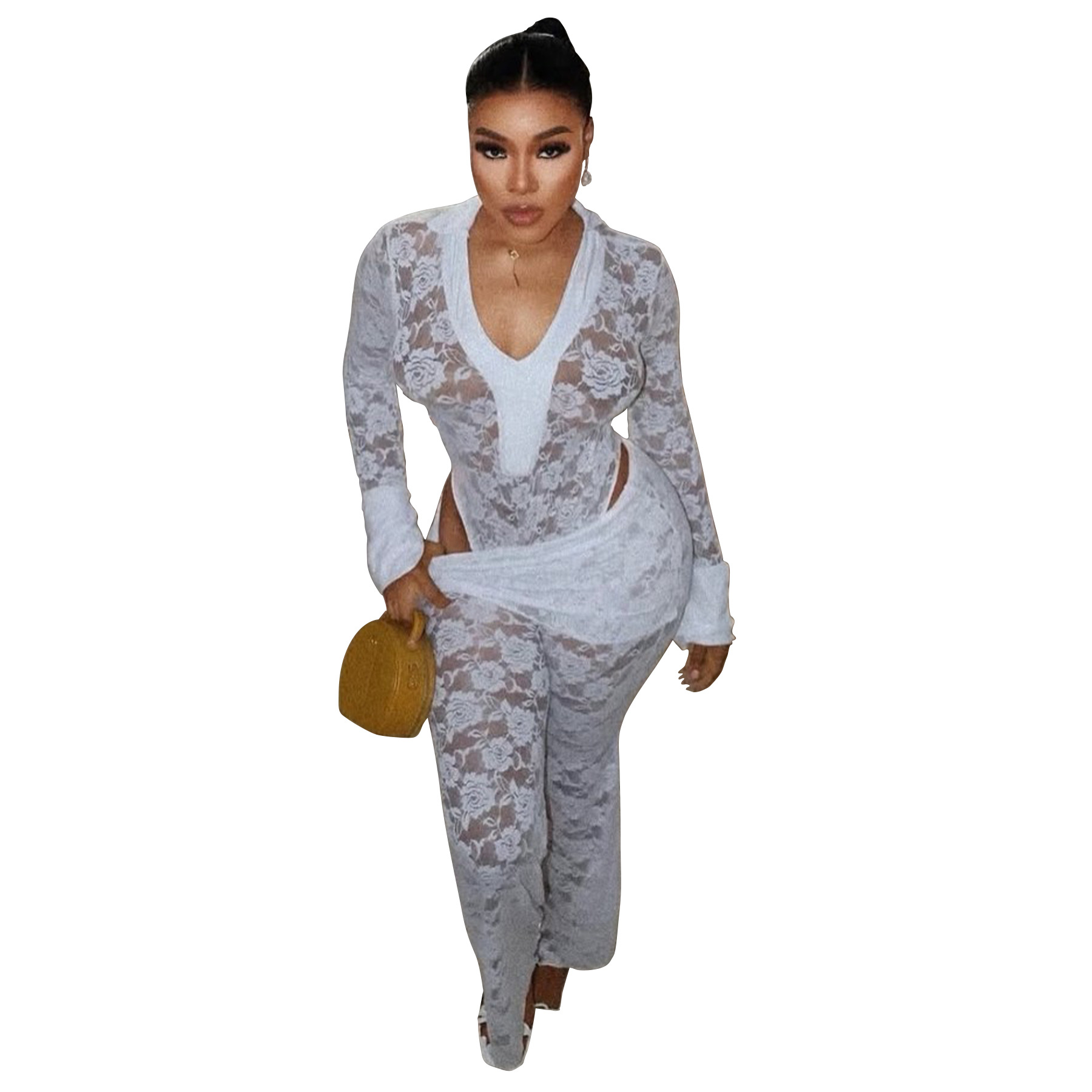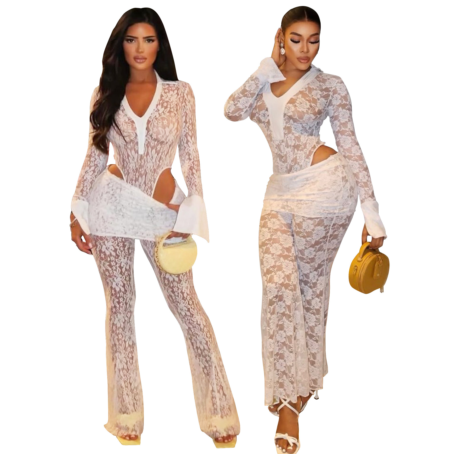 This Women's Sexy See-Through Lace Bodysuit Pants Two-Piece Set Design Made Of High Quality polyester And Spandex Material. It Is Stretchy, Durable And Comfortable. It Is a Must-Have Outfit For All Seasons. retail Two Piece Pant Sets Can Solve Your cloth selection Troubles. Explore More 2 Piece Pants Set On BamBam retail Women Clothing Online Store.