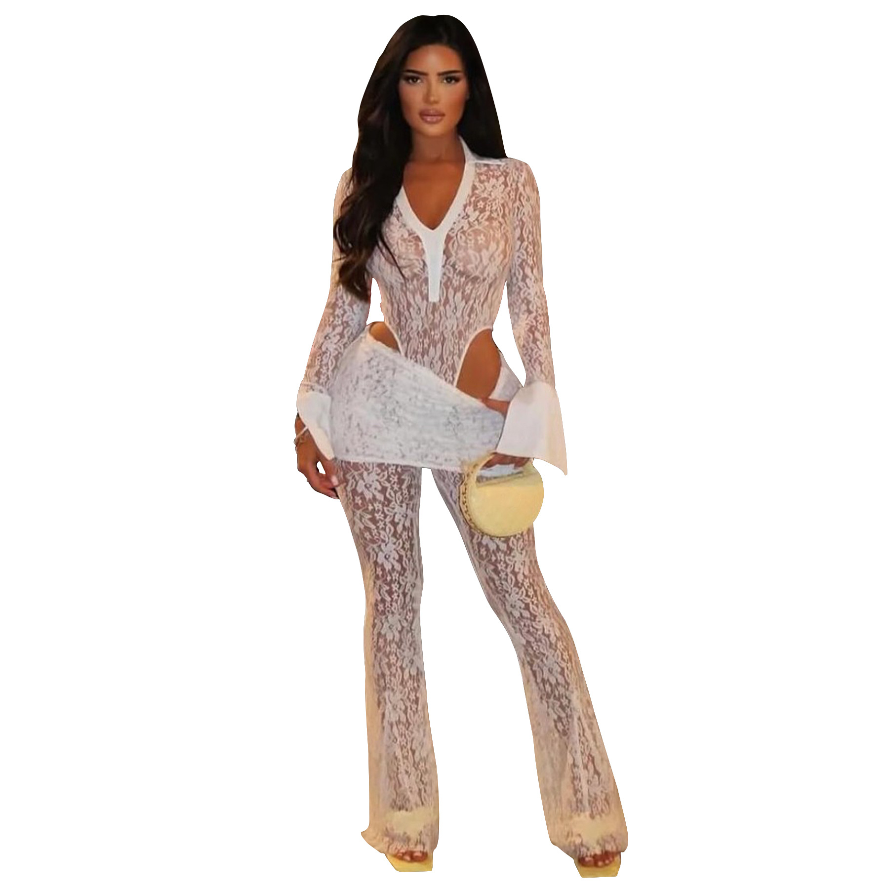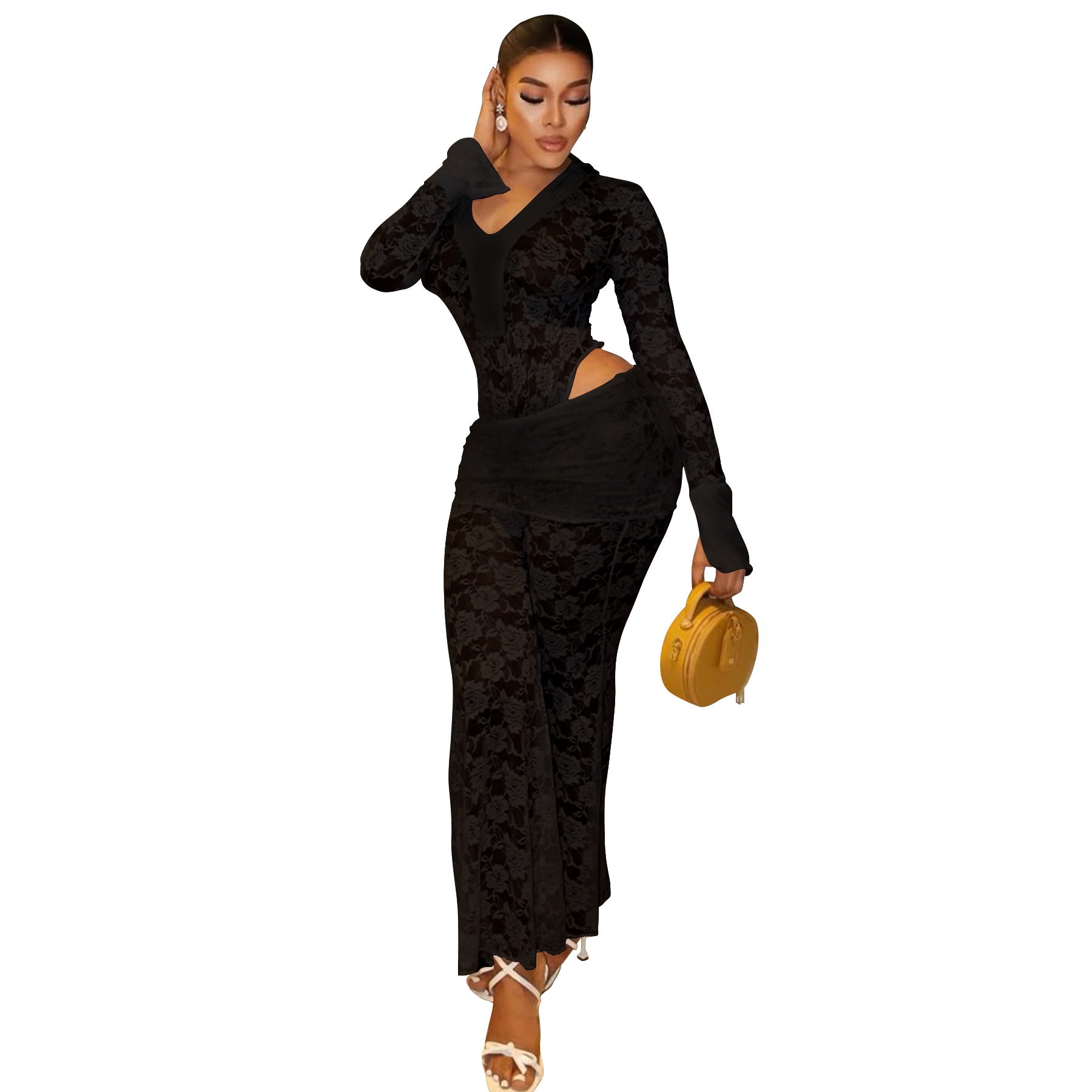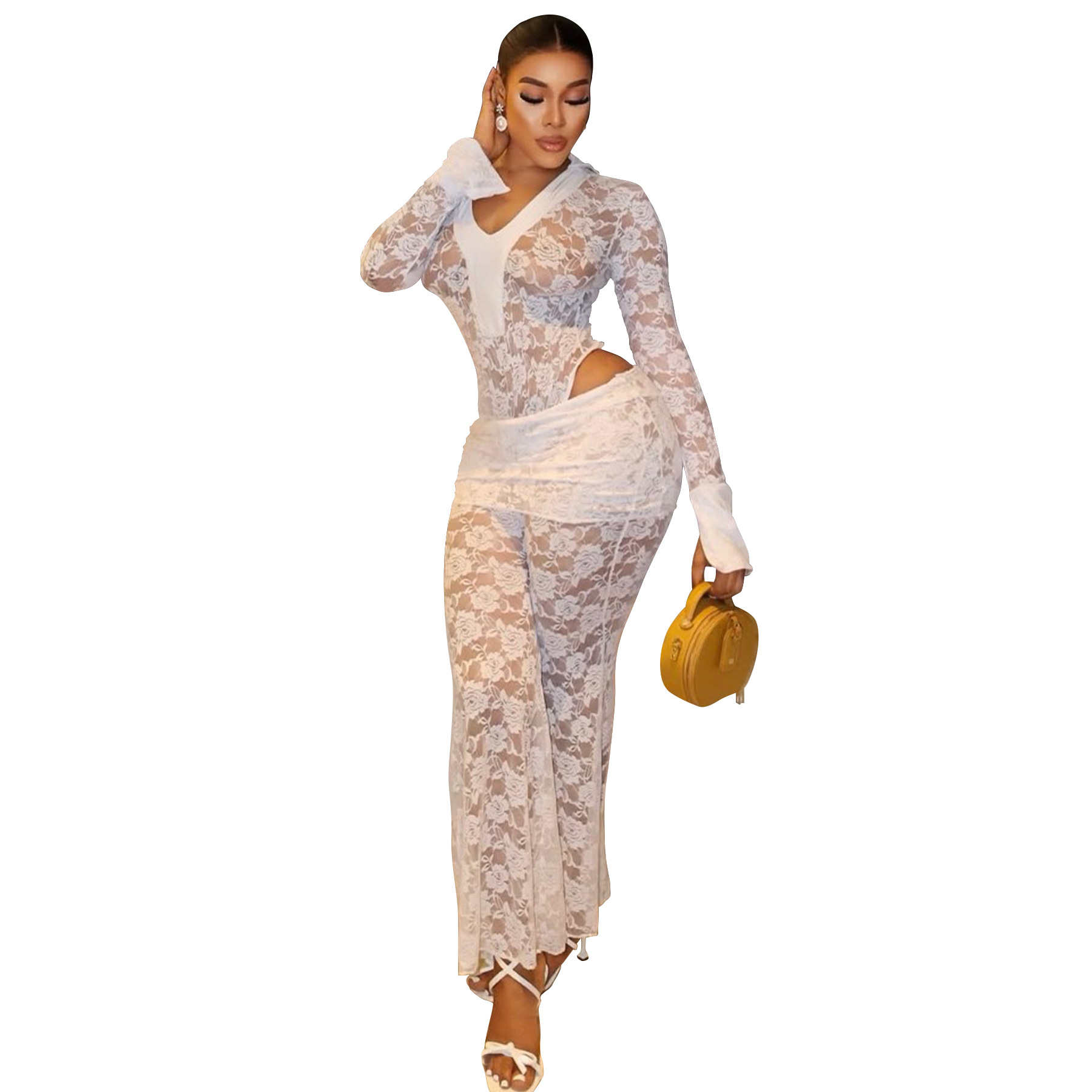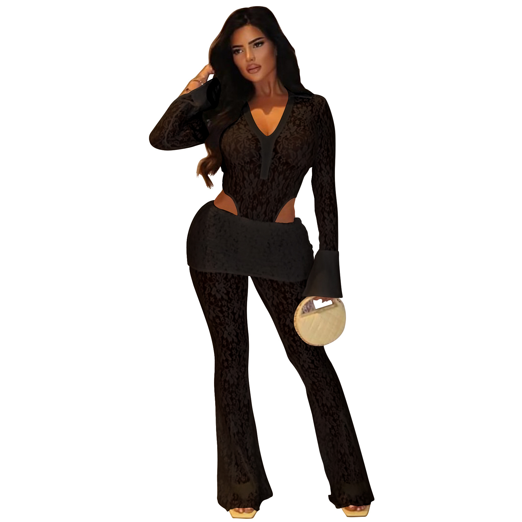 This Women's Sexy See-Through Lace Bodysuit Pants Two-Piece Set Design Made Of High Quality polyester And Spandex Material. It Is Stretchy, Durable And Comfortable. It Is a Must-Have Outfit For All Seasons. retail Two Piece Pant Sets Can Solve Your cloth selection Troubles. Explore More 2 Piece Pants Set On BamBam retail Women Clothing Online Store.