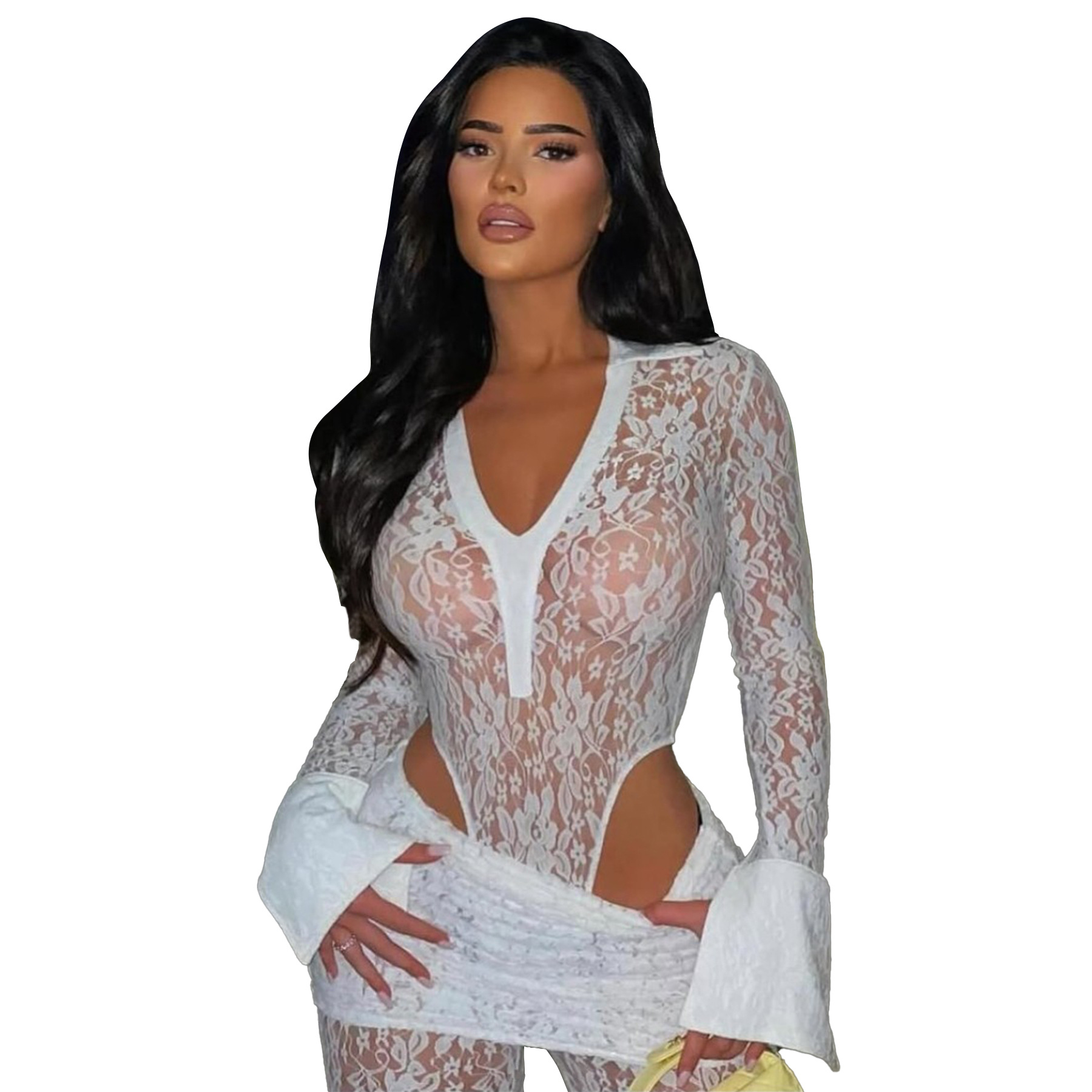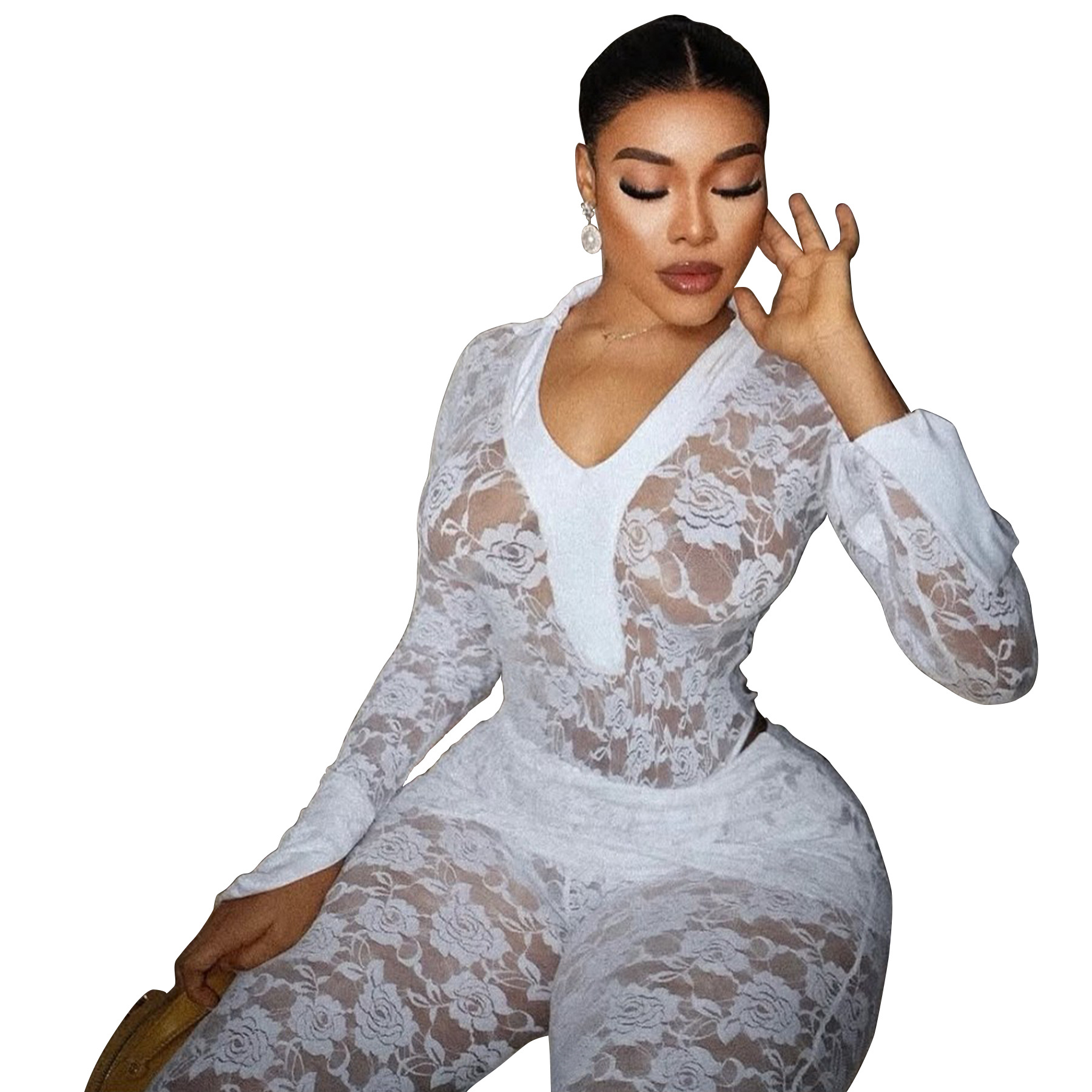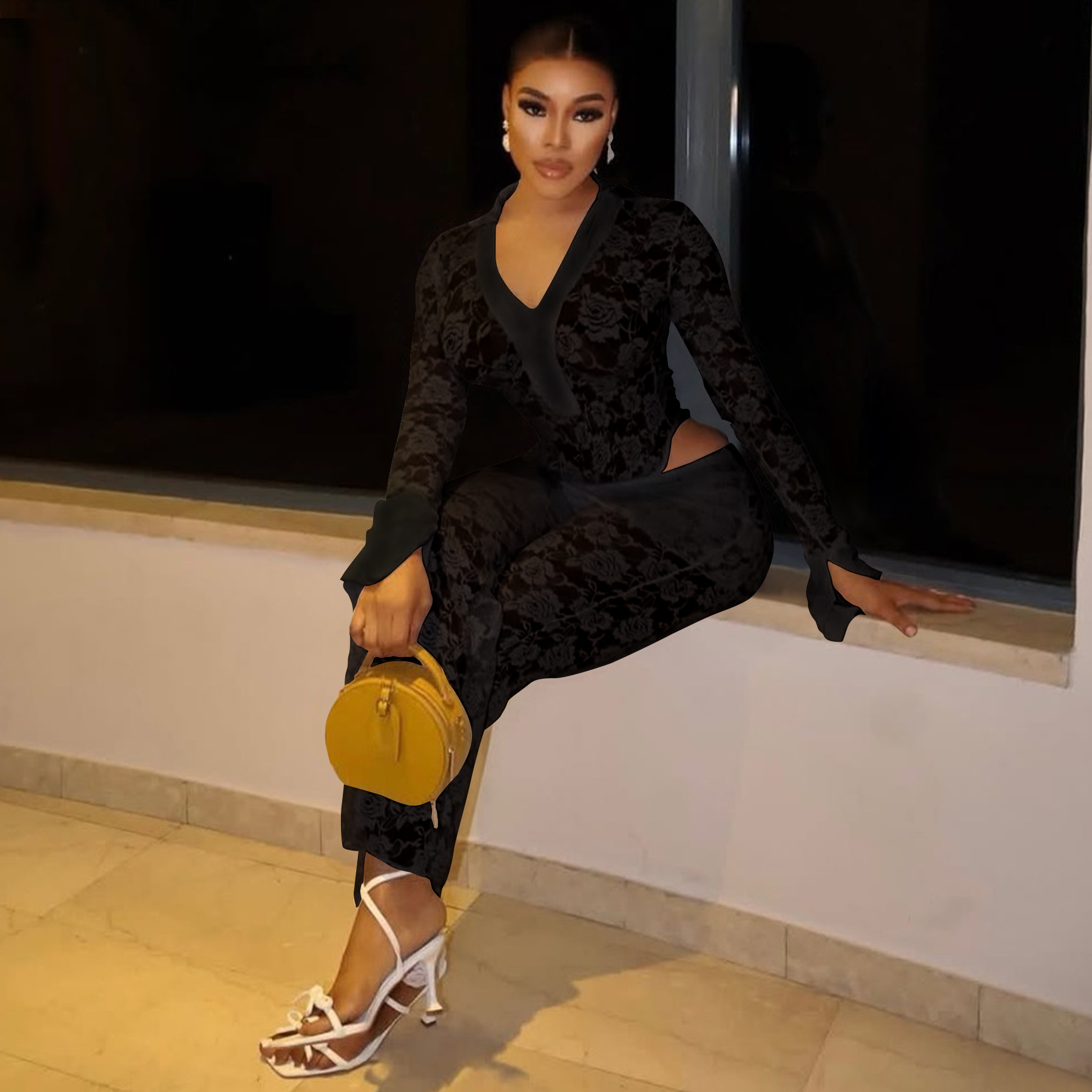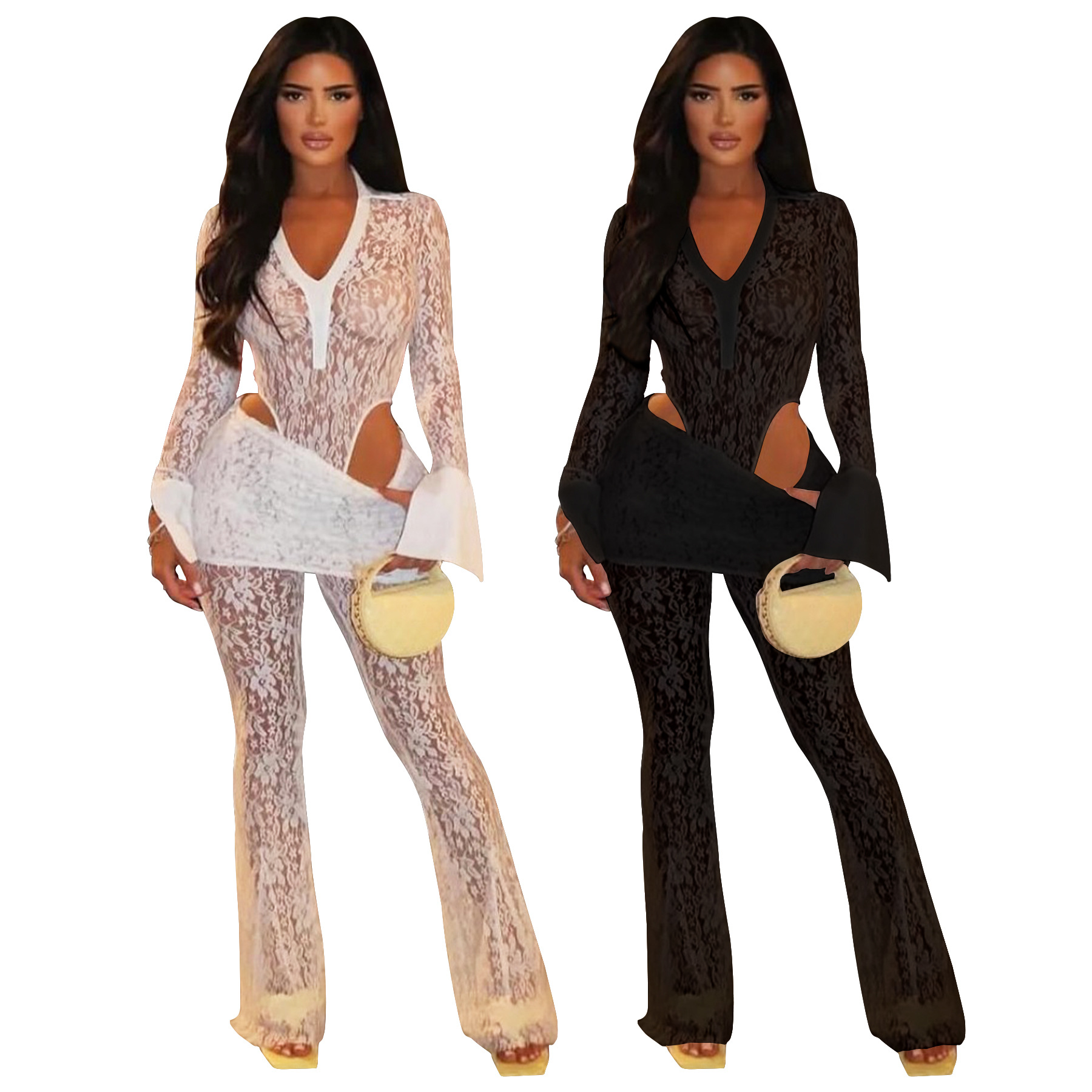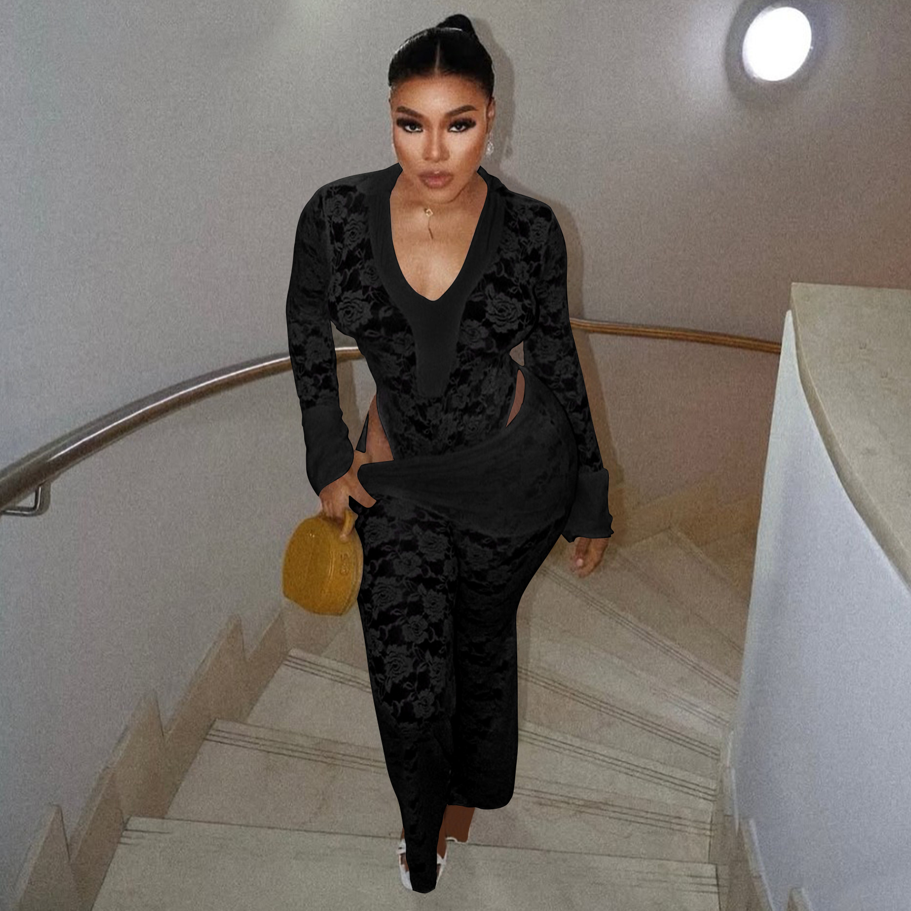 This Women's Sexy See-Through Lace Bodysuit Pants Two-Piece Set Design Made Of High Quality polyester And Spandex Material. It Is Stretchy, Durable And Comfortable. It Is a Must-Have Outfit For All Seasons. retail Two Piece Pant Sets Can Solve Your cloth selection Troubles. Explore More 2 Piece Pants Set On BamBam retail Women Clothing Online Store.