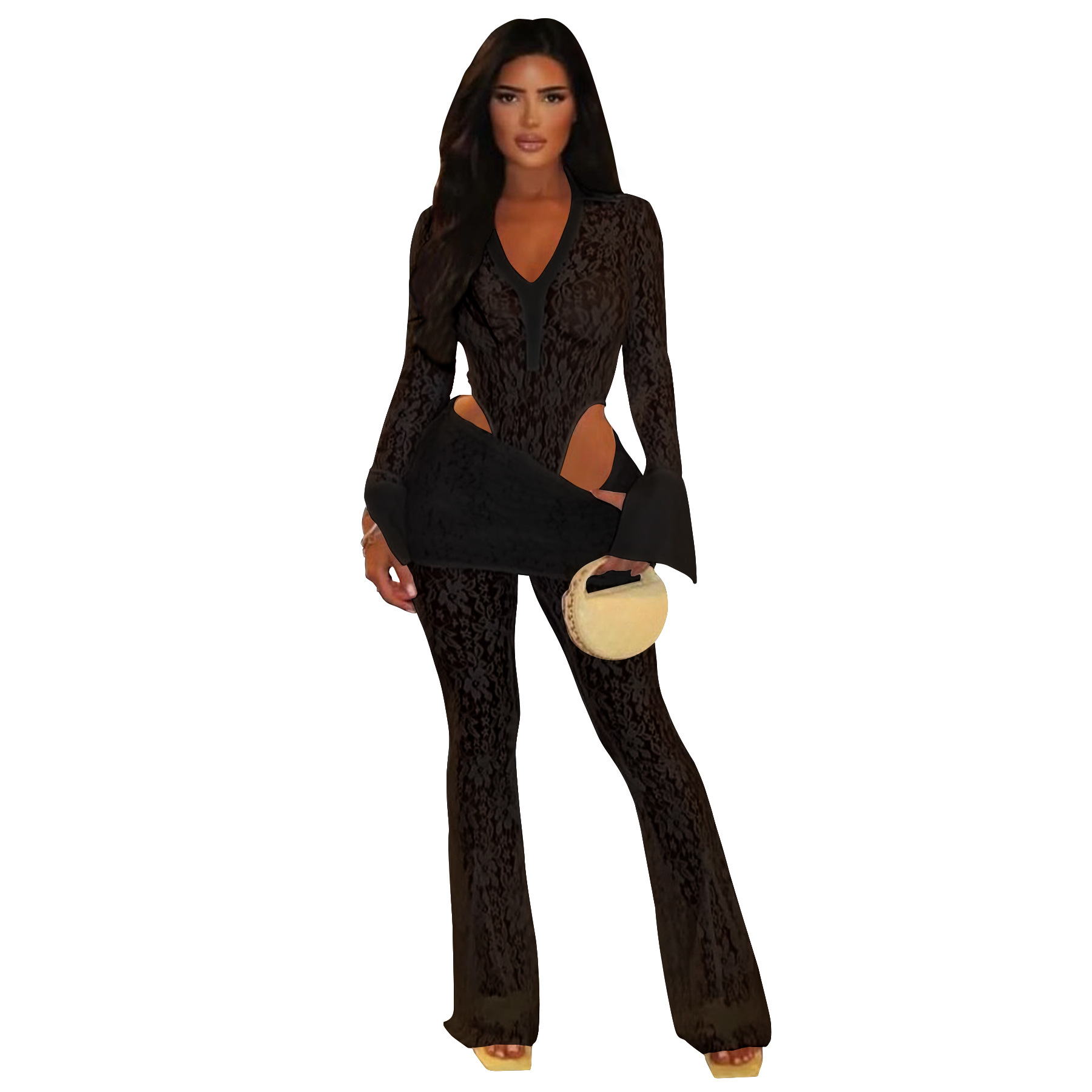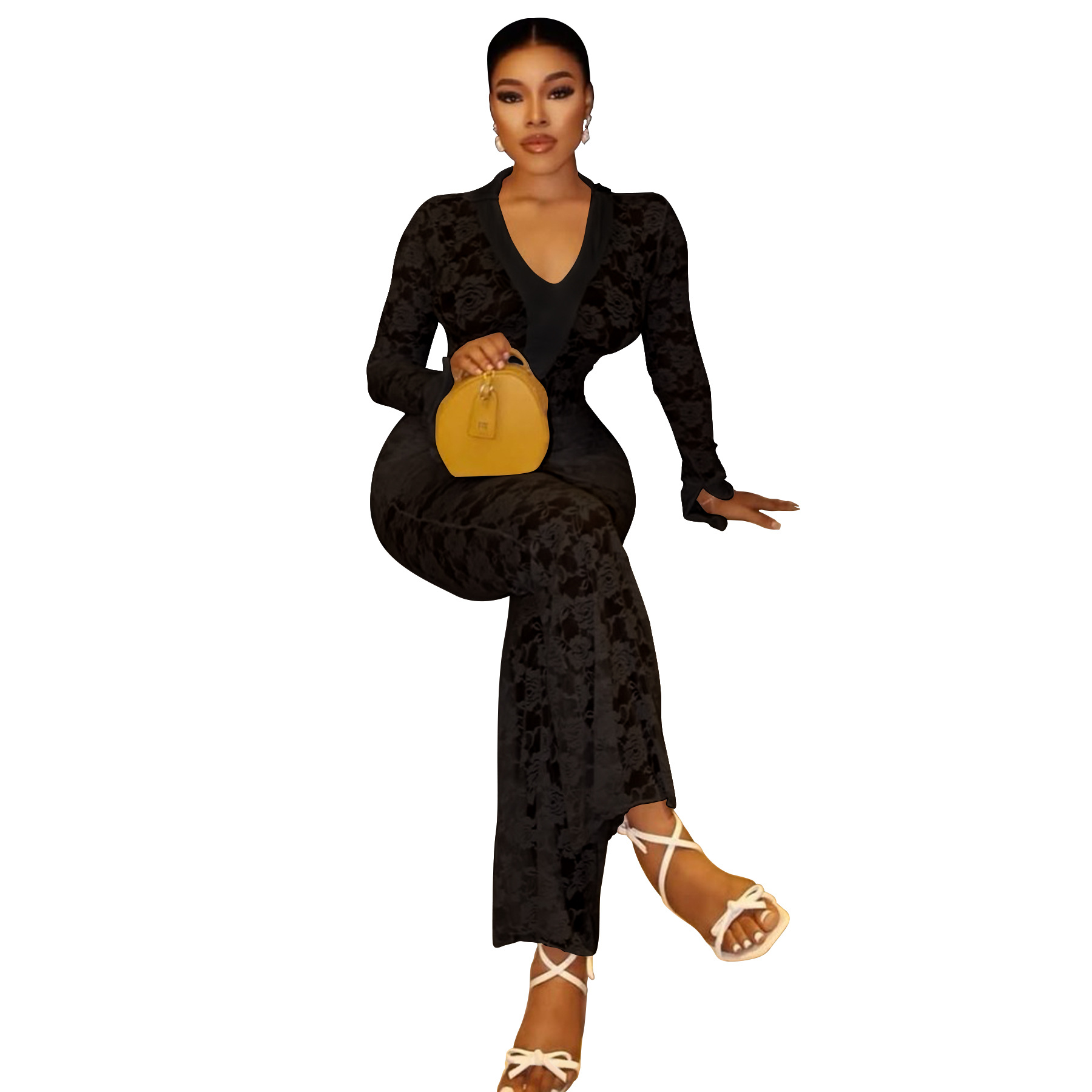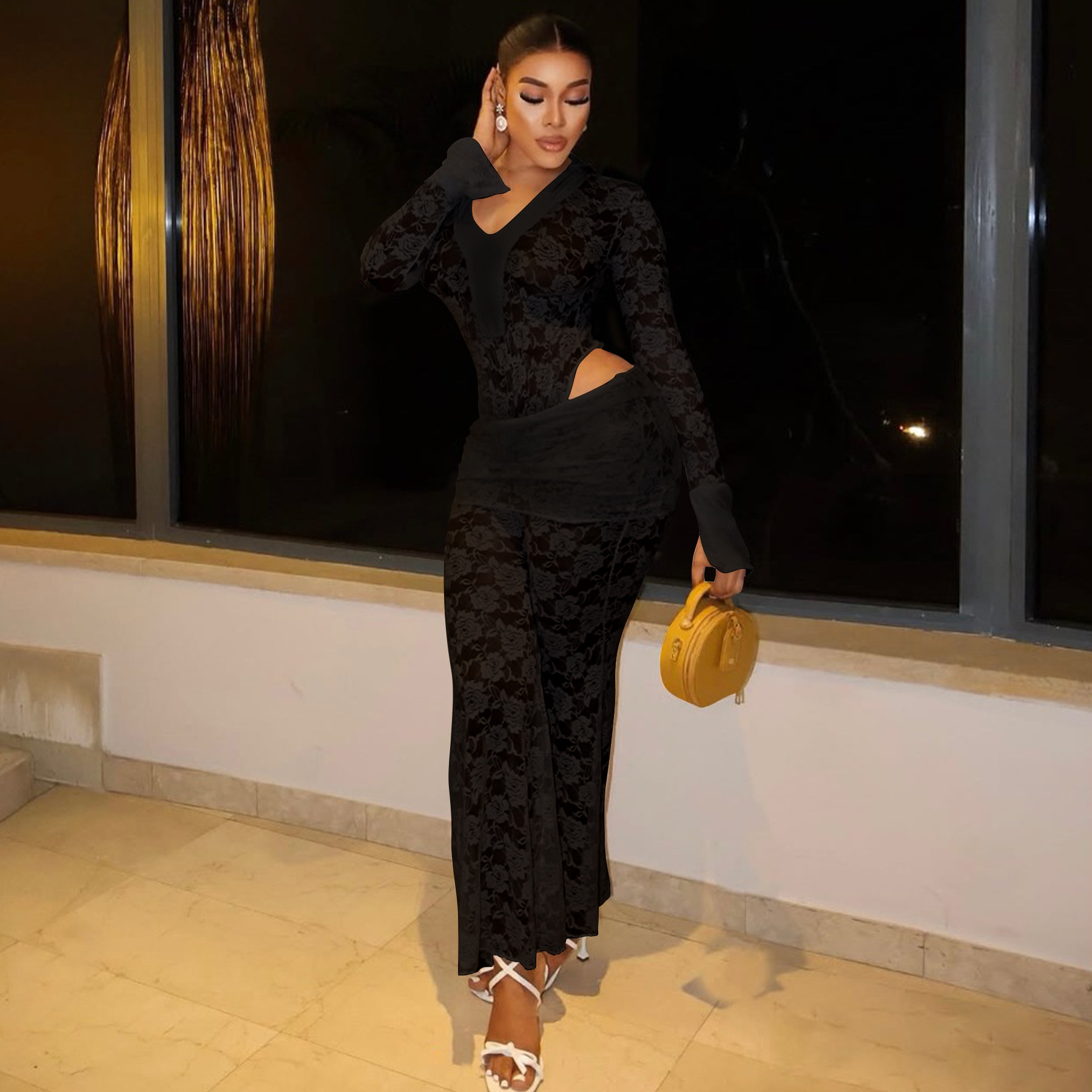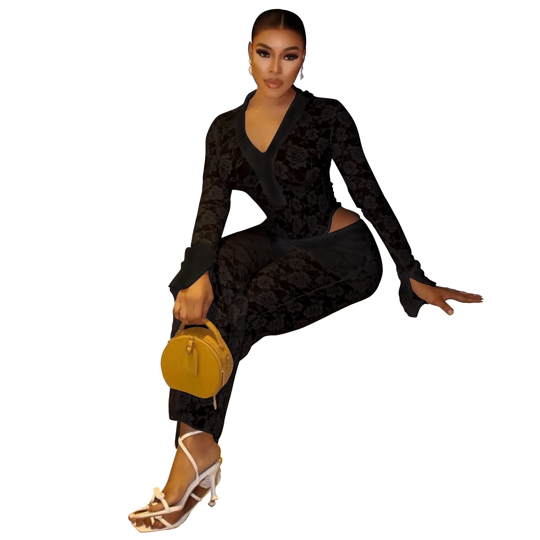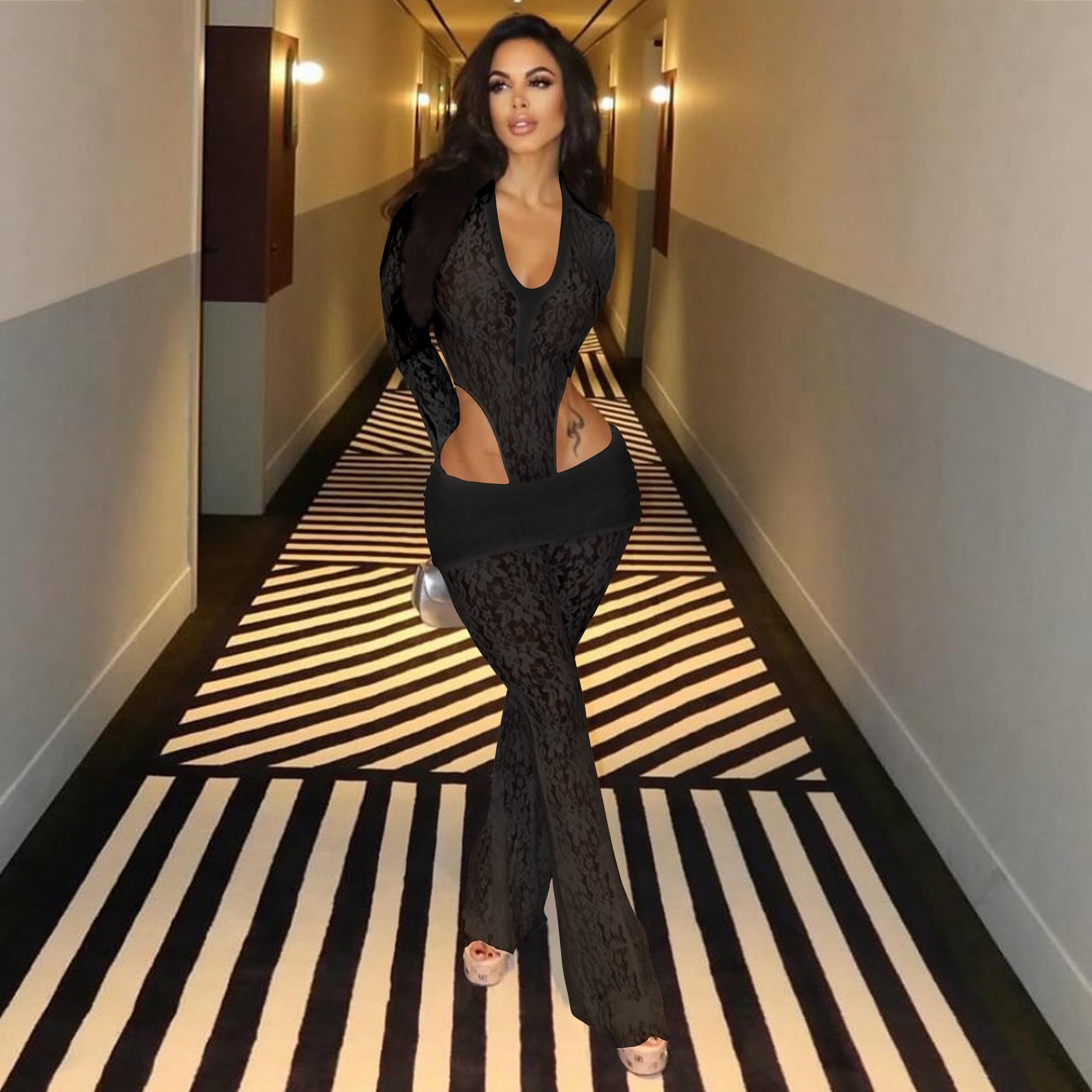 This Women's Sexy See-Through Lace Bodysuit Pants Two-Piece Set Design Made Of High Quality polyester And Spandex Material. It Is Stretchy, Durable And Comfortable. It Is a Must-Have Outfit For All Seasons. retail Two Piece Pant Sets Can Solve Your cloth selection Troubles. Explore More 2 Piece Pants Set On BamBam retail Women Clothing Online Store.