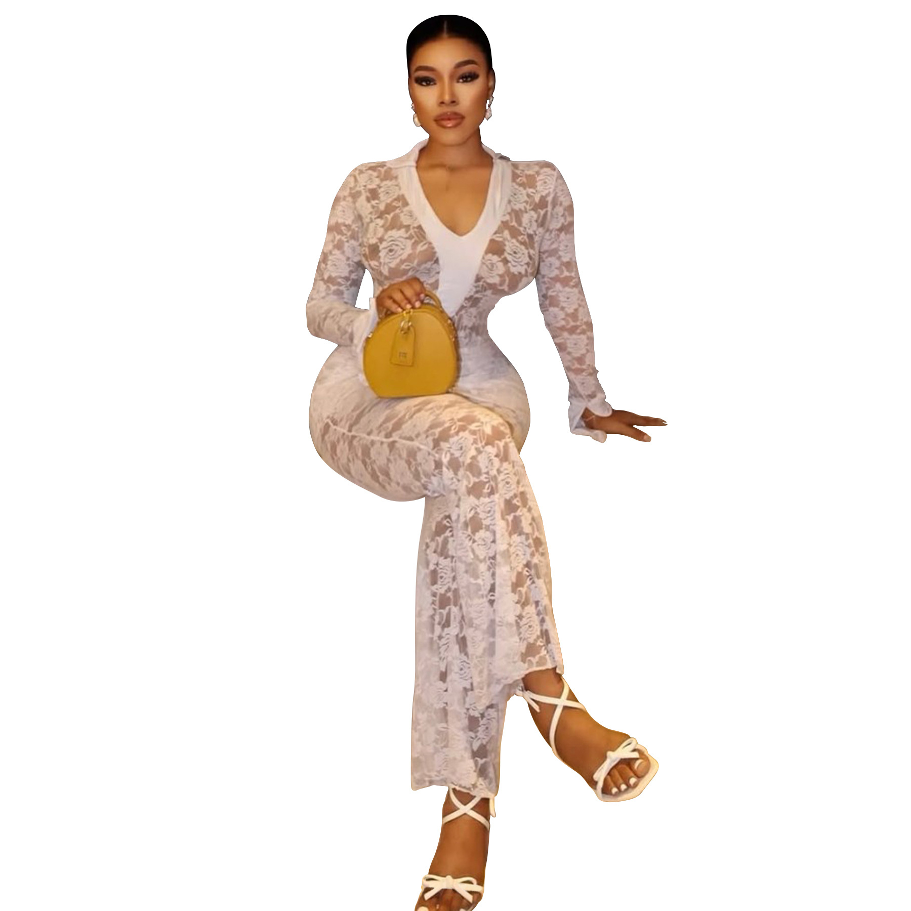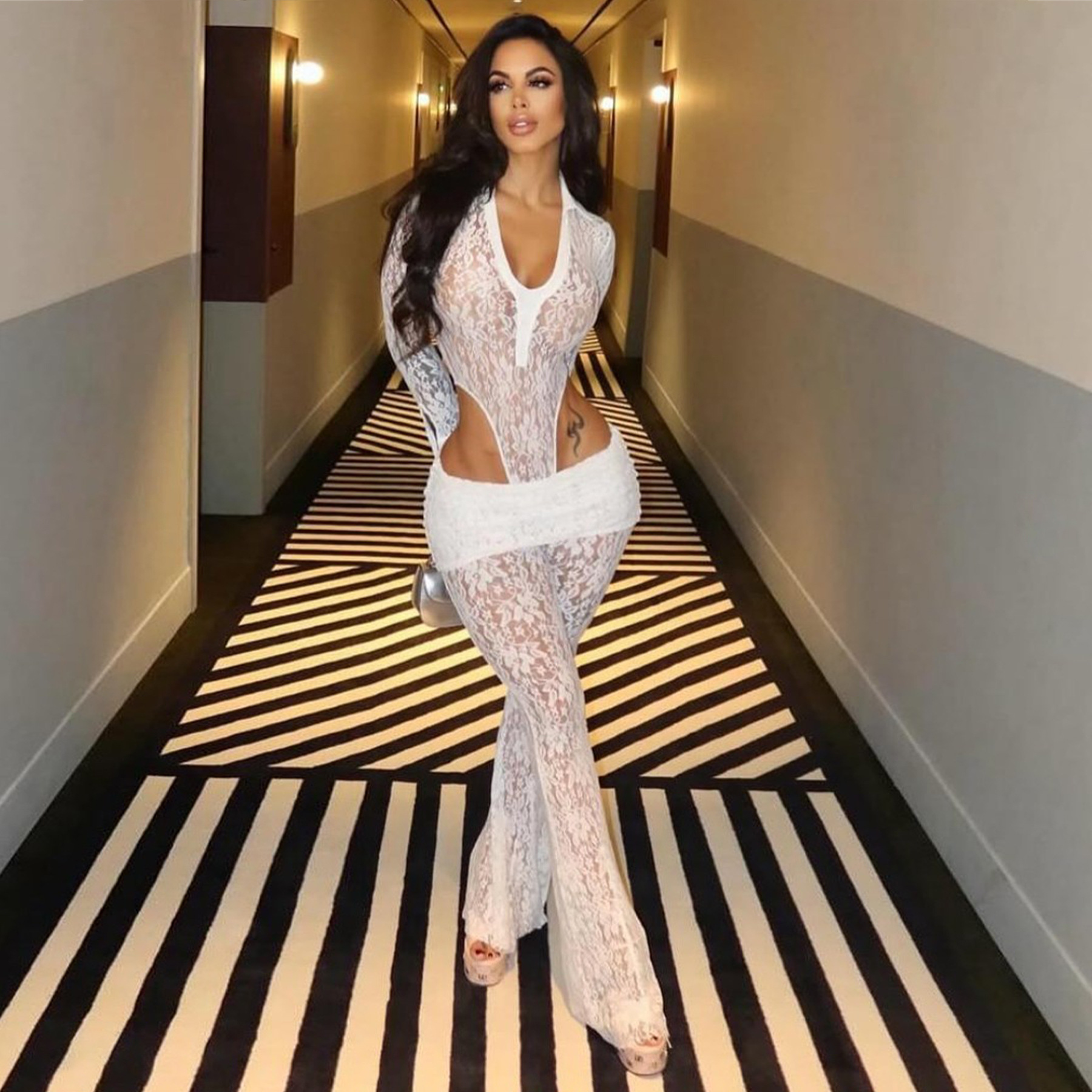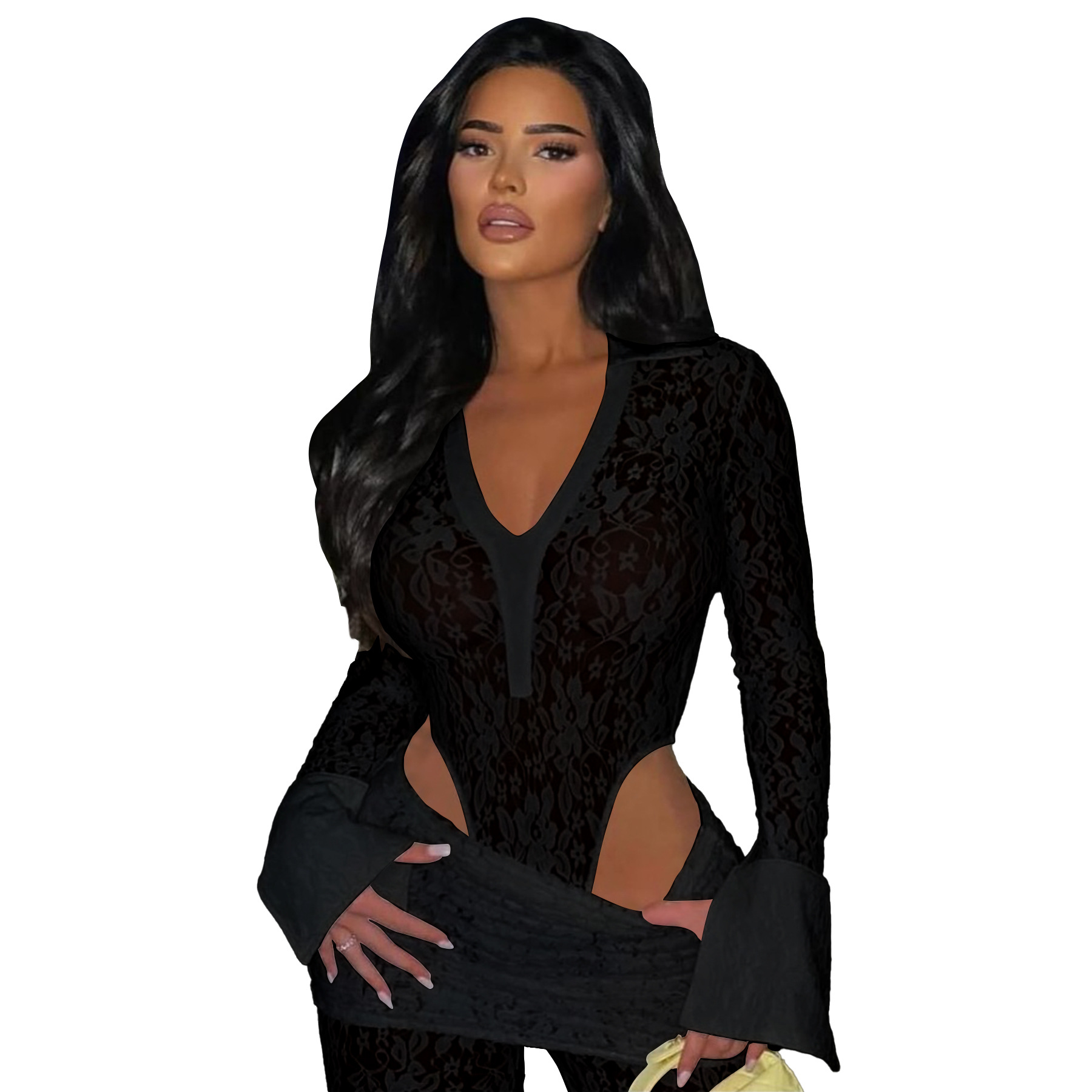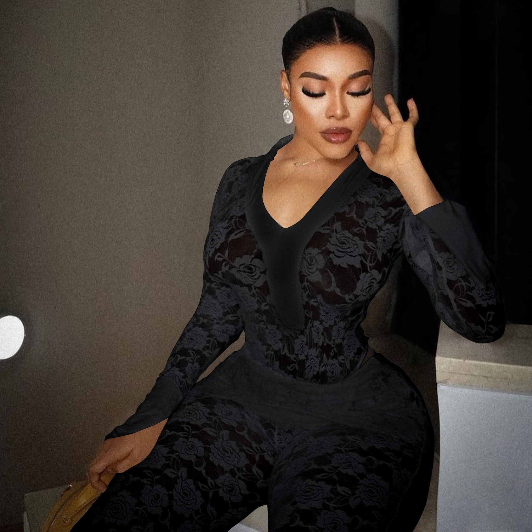 This Women's Sexy See-Through Lace Bodysuit Pants Two-Piece Set Design Made Of High Quality polyester And Spandex Material. It Is Stretchy, Durable And Comfortable. It Is a Must-Have Outfit For All Seasons. retail Two Piece Pant Sets Can Solve Your cloth selection Troubles. Explore More 2 Piece Pants Set On BamBam retail Women Clothing Online Store.