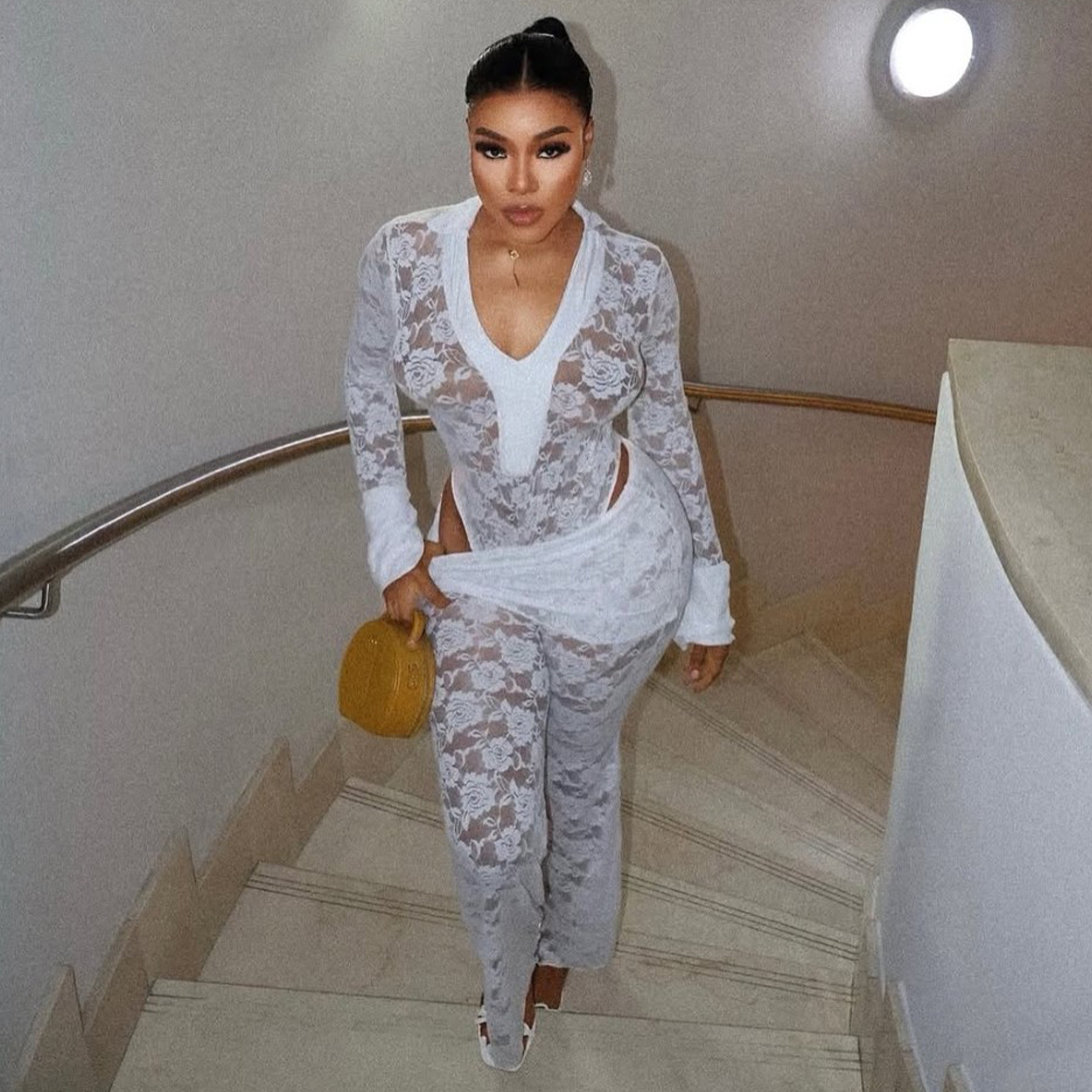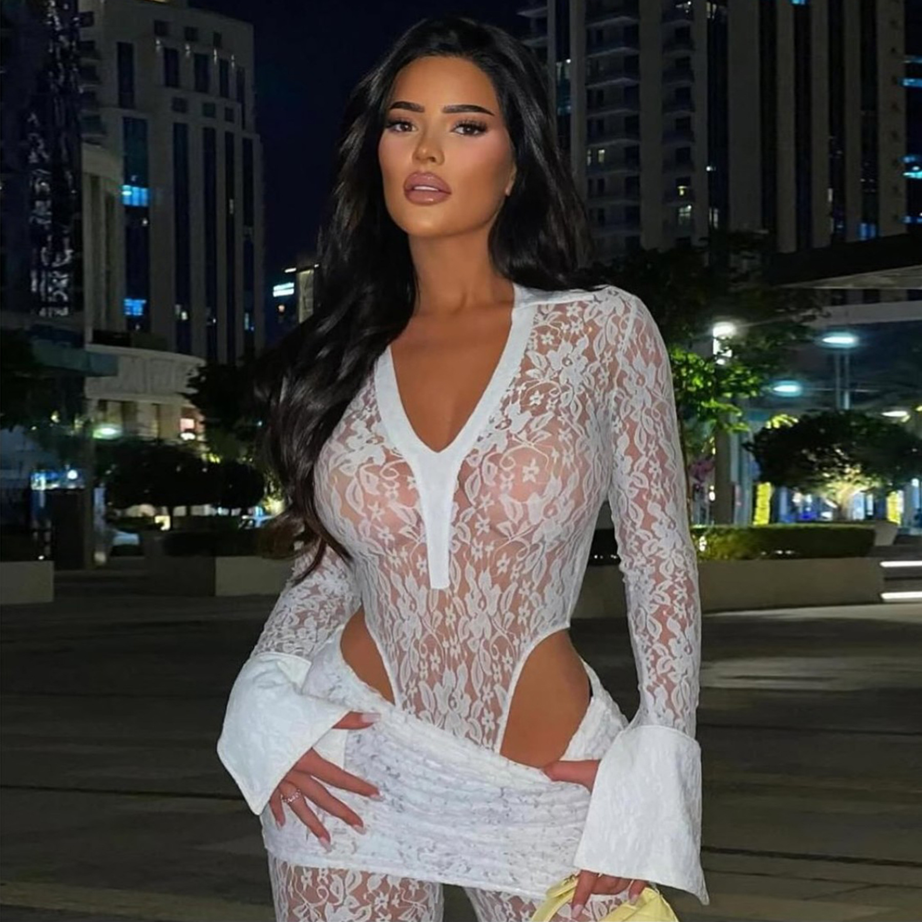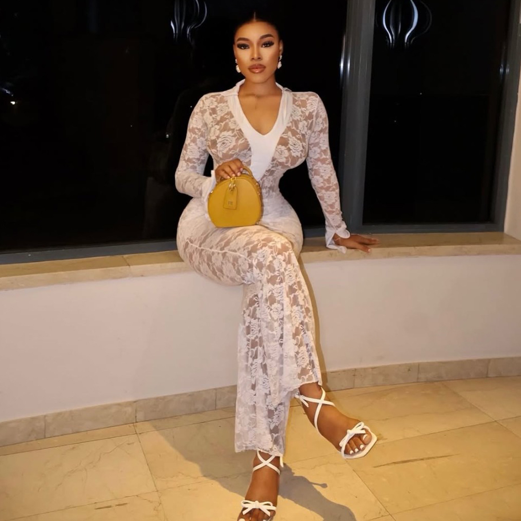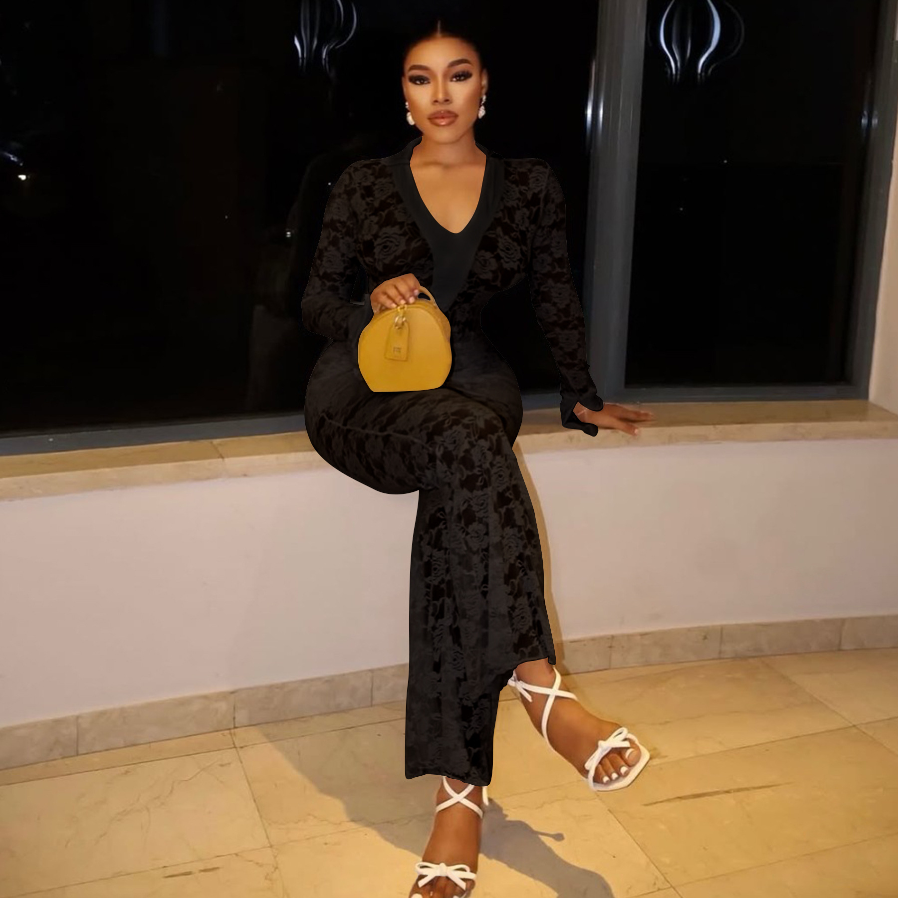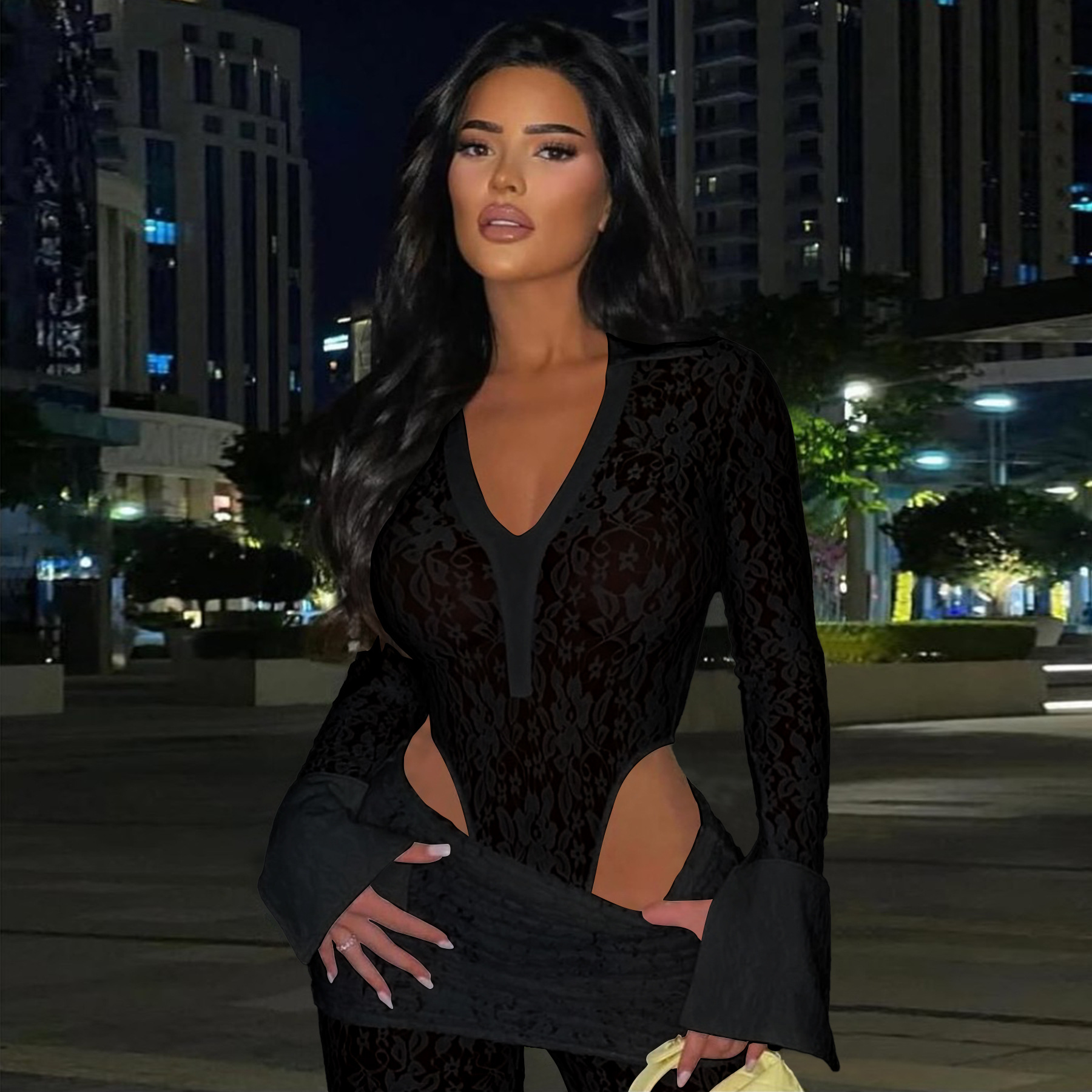 This Women's Sexy See-Through Lace Bodysuit Pants Two-Piece Set Design Made Of High Quality polyester And Spandex Material. It Is Stretchy, Durable And Comfortable. It Is a Must-Have Outfit For All Seasons. retail Two Piece Pant Sets Can Solve Your cloth selection Troubles. Explore More 2 Piece Pants Set On BamBam retail Women Clothing Online Store.