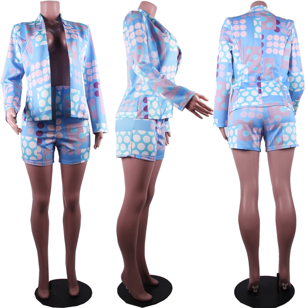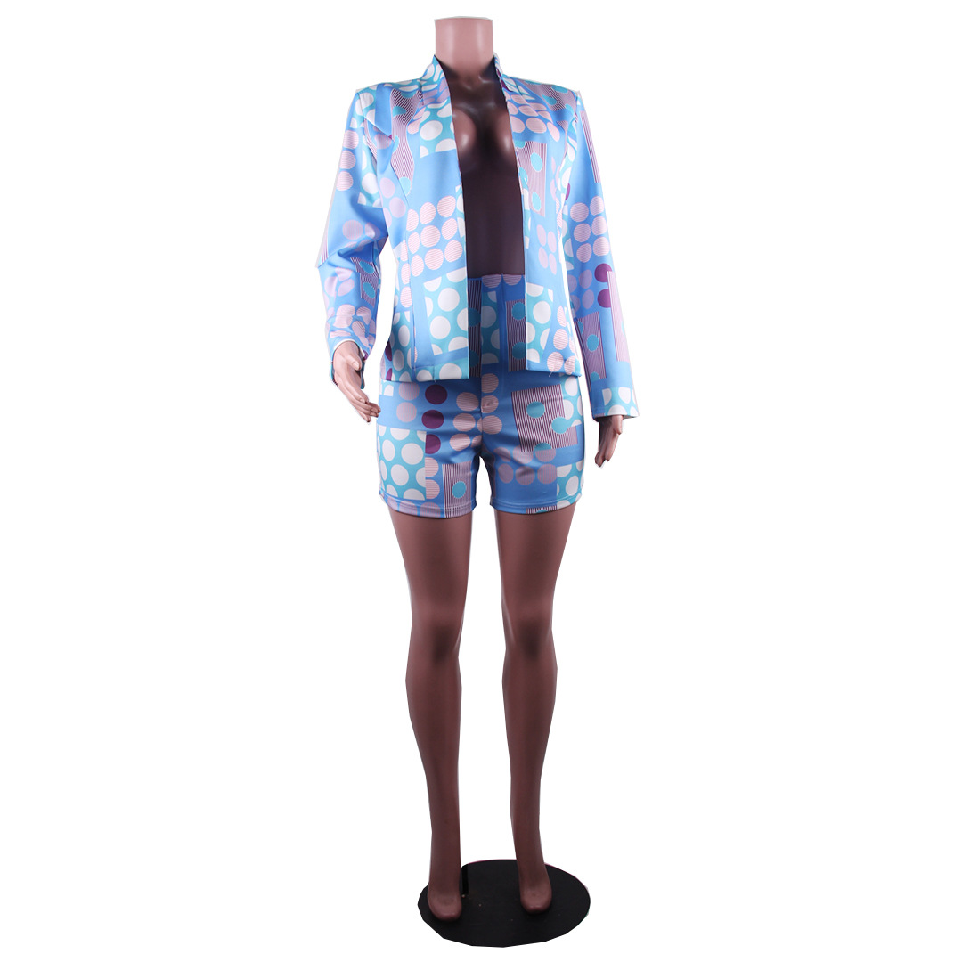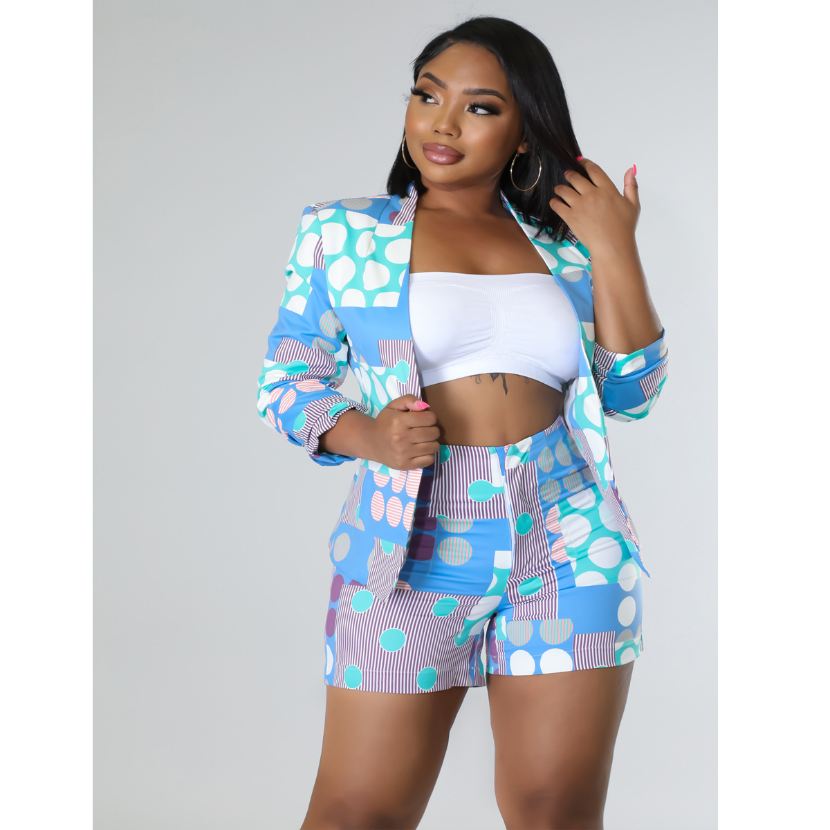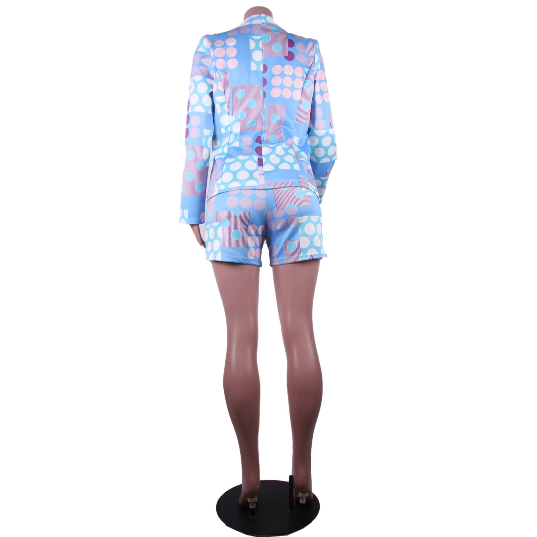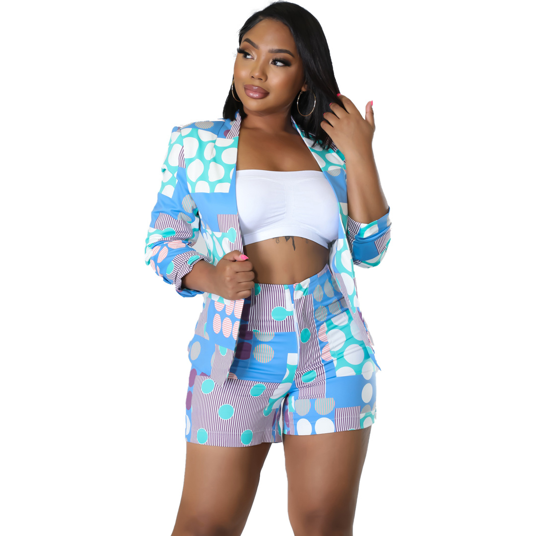 This Women's Shorts Sexy Chic Fashion Casual Turndown Collar Print Blazer Set Design Made Of High Quality polyester And Spandex Material. It Is Stretchy, Durable And Comfortable. It Come With The Top And Shorts. retail Short Sets Saves Some People From The Trouble Of Matching. And For Matchmakers It Is More Flexible Than One-Piece Outfit. Two Piece Short Set Can Be Worn Together Or Individually, Ladies Can Match Them According To Different Occasions. Grab Different Two Piece Short Sets For This Spring And Summer.