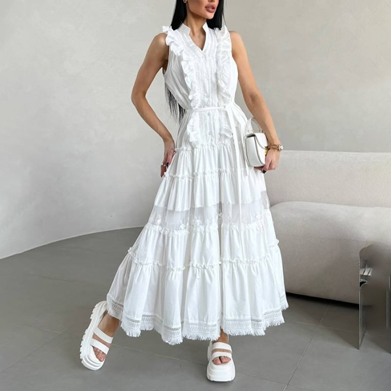 This Women's Sleeveless Ruffle Chic Slim Waist Fashion Long Dress Design Made Of High Quality polyester And Spandex Material, Which Is Stretchy, Soft And Comfortable. It's Always On Trend. This Casual Maxi Dresses Is a Must-Have For Vocations And Dating Occasions. Maxi Dresses At BamBam Comes With Huge Selections Of Colors, Sizes, Material, And Designs. When You Need retail affordable Maxi Dresses, You Can Always Find Vary Collection And No Moq On Our retail Women Fashion Online Store.