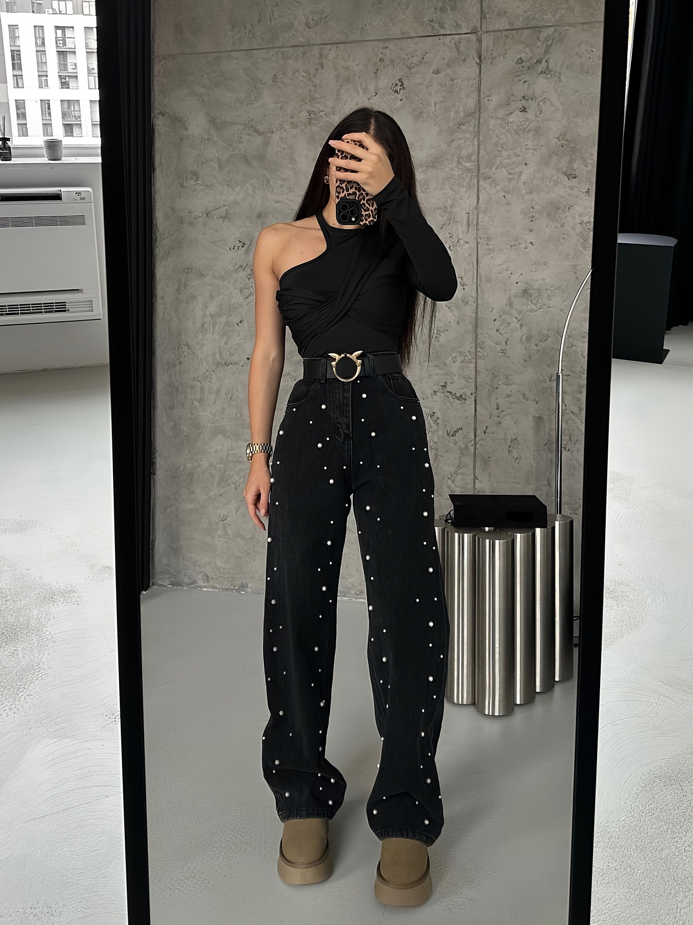 This Women's Slight Stretch Beaded Casual Black Denim Straight Leg Pants Design Made Of Durable And Stretchy Jeans Fabric. It Is a Must-Have Item For everyday use. Trendy retail Jeans Is a Indispensable Item For Everyday Fashion. Women’s Jeans With High Waist Is a Must Have trouser/pant that helps bring the grace of shape of your legs out even more and fits perfectly snugging your thighs and body gracefully. Grab a Must Have High Waist Jeans retail For Your Closet, Just Choose Different Matching Tops To stay in control of Every Occasion Easily.