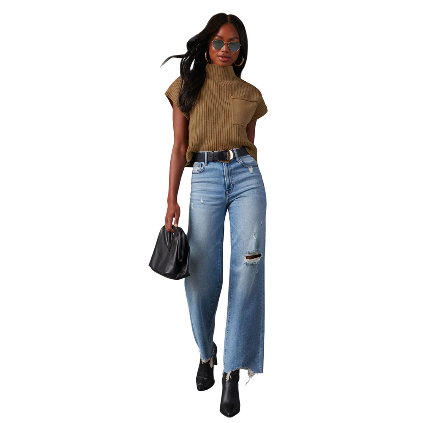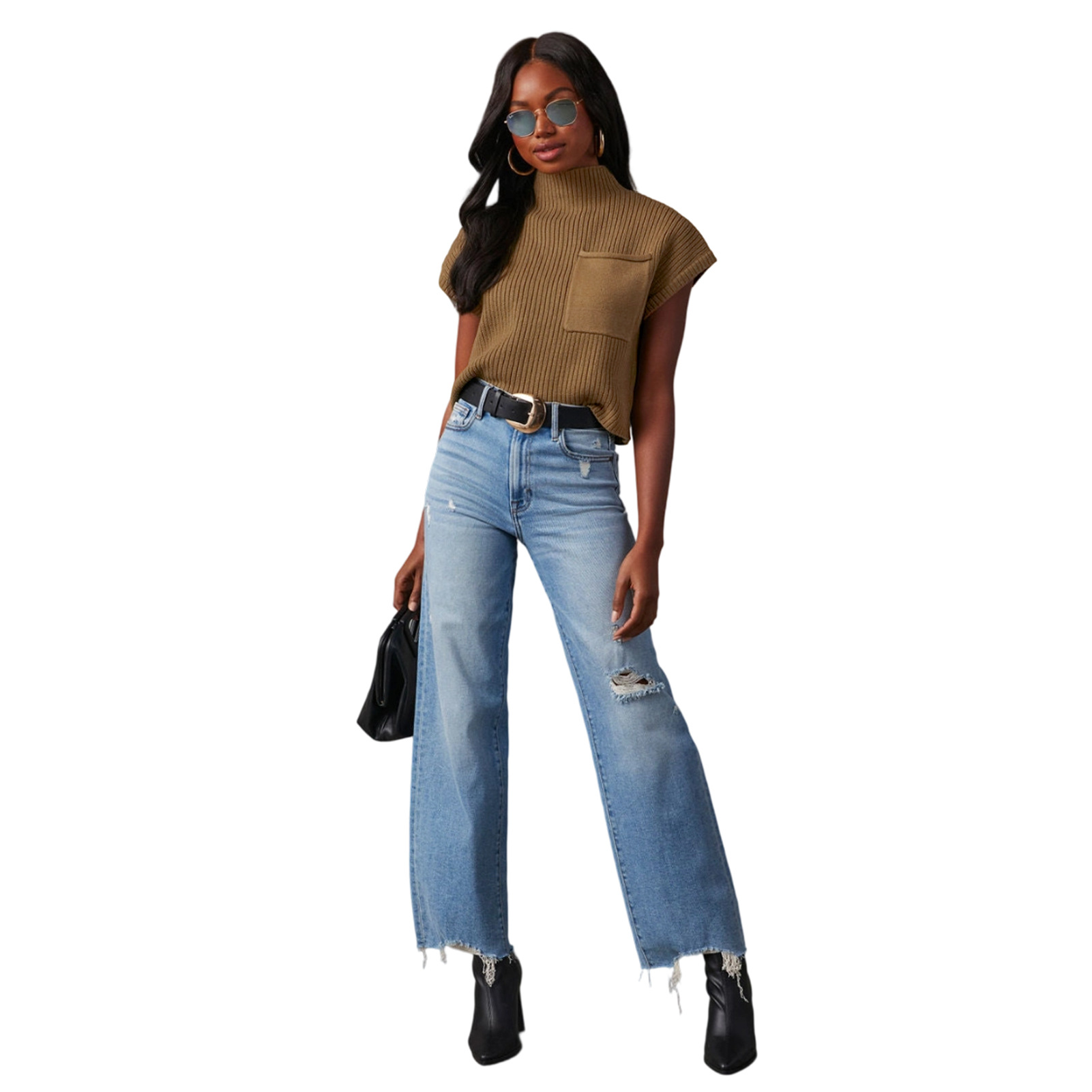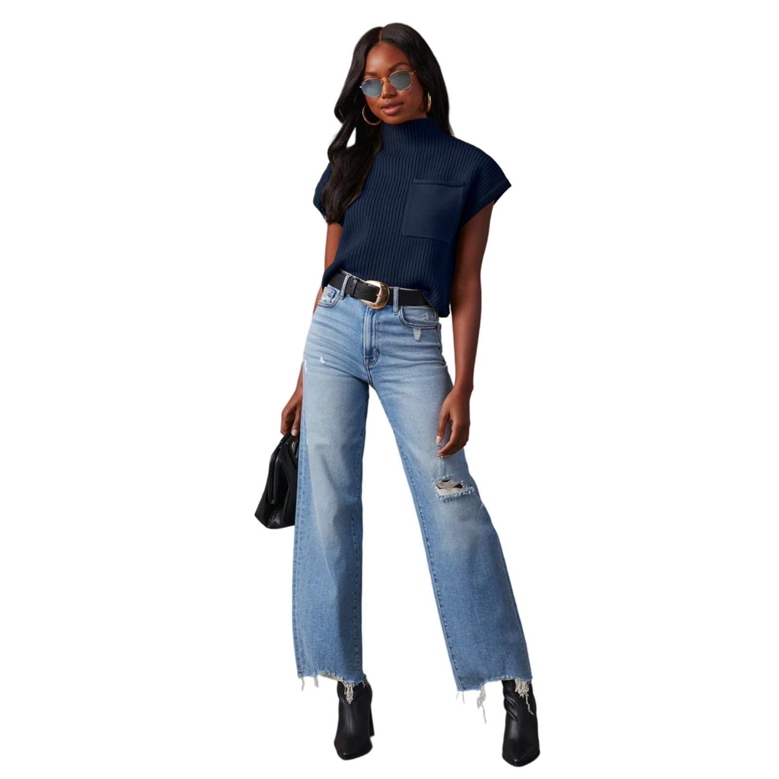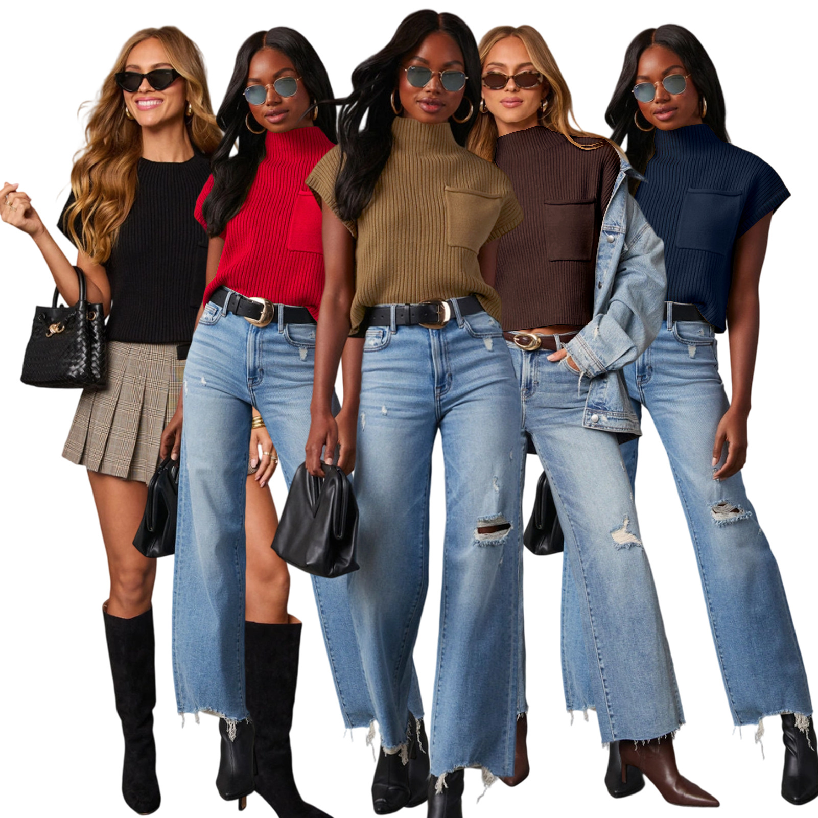 This Women's Solid Color Knit Ribbed High-Neck Short Sleeve Top Sweater Is An Indispensable Beautiful piece to have to keep warm In Cozy Winter. Women’s retail Sweaters And Cardigans At BamBam Combine warmth with Fashion. Best Oversized Sweaters Have Long Been The main Favorite. It’s So Easy To Match a Large Sweater, Sometimes The Coat Can Be Ignored. Oversized Sweater With Short Skirt Is Dignified And Attractive. Oversized Sweater With Skirt Is Elegant And Sweet. Oversized Sweaters With Over-The-Knee Boots Can Easily Create a Sense Of Maturity And Femininity. Oversized Sweaters Paired With Shorts Are Full Of Youthful Vitality And Look More Dynamic And Energetic!