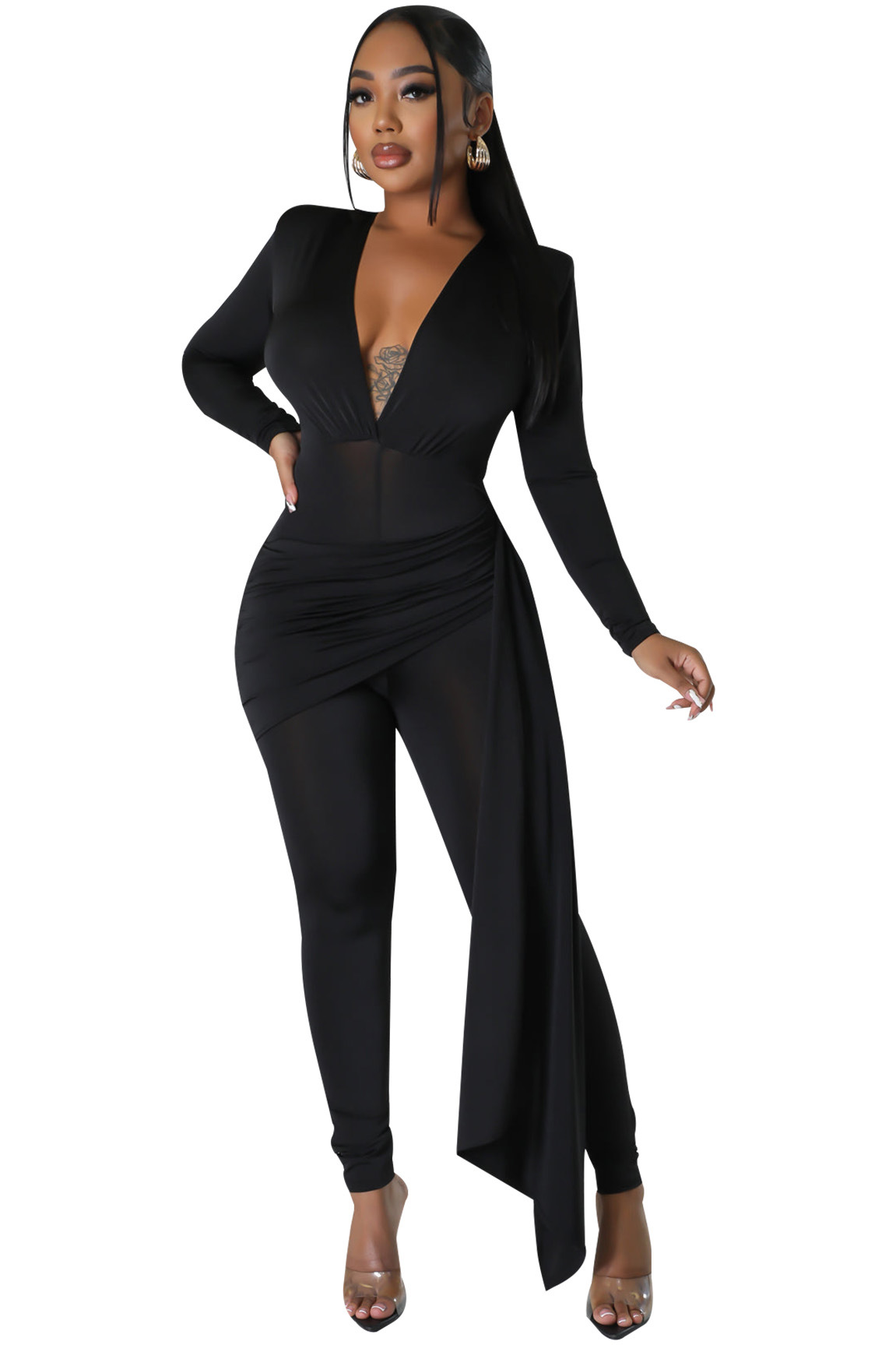 This Women's Solid Color Sexy Deep v Neck Tight Fitting Long Sleeve Jumpsuit Design Made Of High Quality Polyster And Spandex Material. It Is Stretchy, Durable And Comfortable. Affordable Sexy Jumpsuits For Women Has Long Been a Party Favorite. BamBam provides a Rich selection Of Sequin, Beaded, See Through Mesh, Leopard, Floral Lace, Leather, Velvet, Tight And Fitted retail Jumpsuit Without Moq Limit.