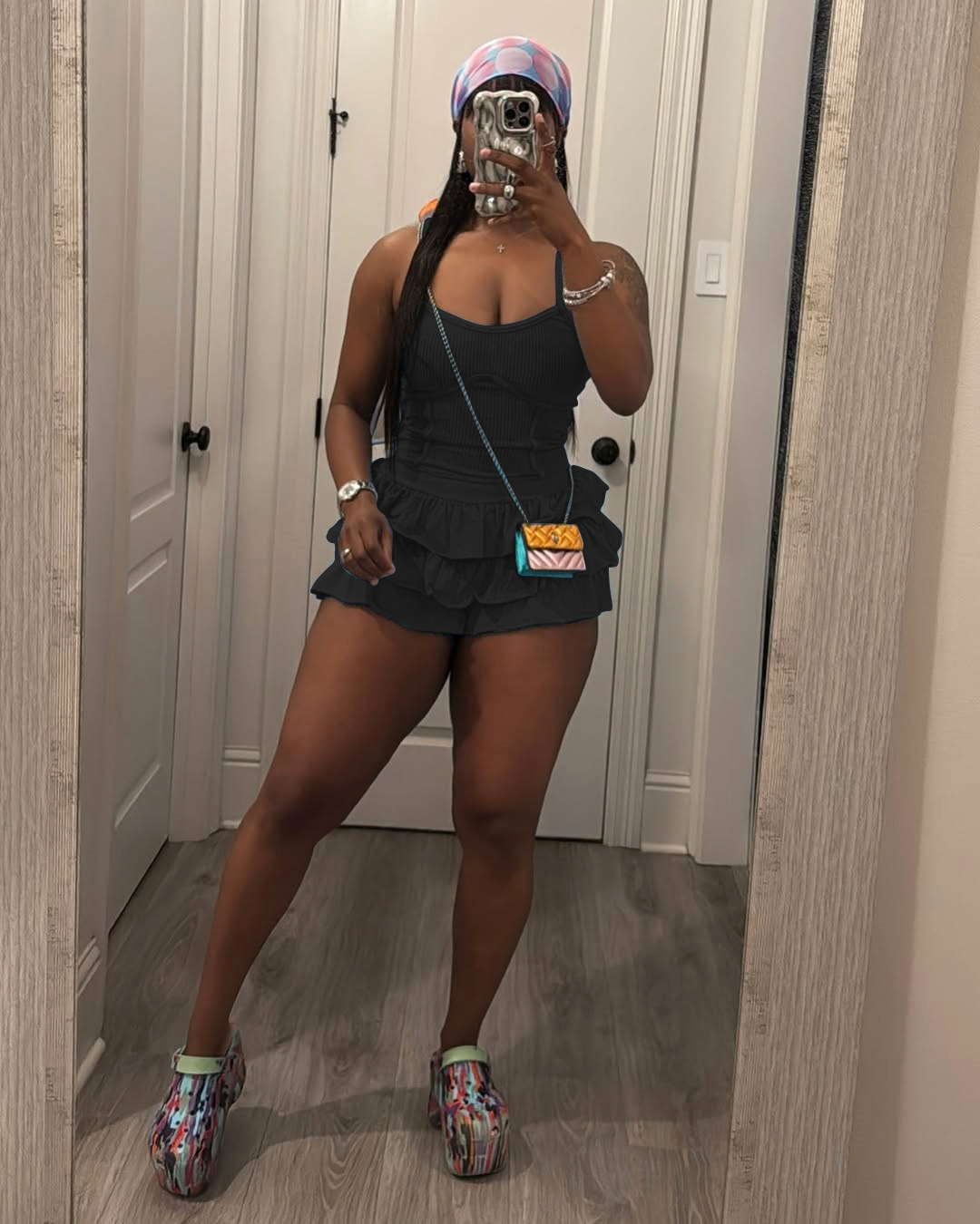 This Women's Solid Strap Tank Top And Ruffled Shorts Set Design Made Of High Quality polyester And Spandex Material. It Is Stretchy, Durable And Comfortable. It Come With The Top And Shorts. retail Short Sets Saves Some People From The Trouble Of Matching. And For Matchmakers It Is More Flexible Than One-Piece Outfit. Two Piece Short Set Can Be Worn Together Or Individually, Ladies Can Match Them According To Different Occasions. Grab Different Two Piece Short Sets For This Spring And Summer.