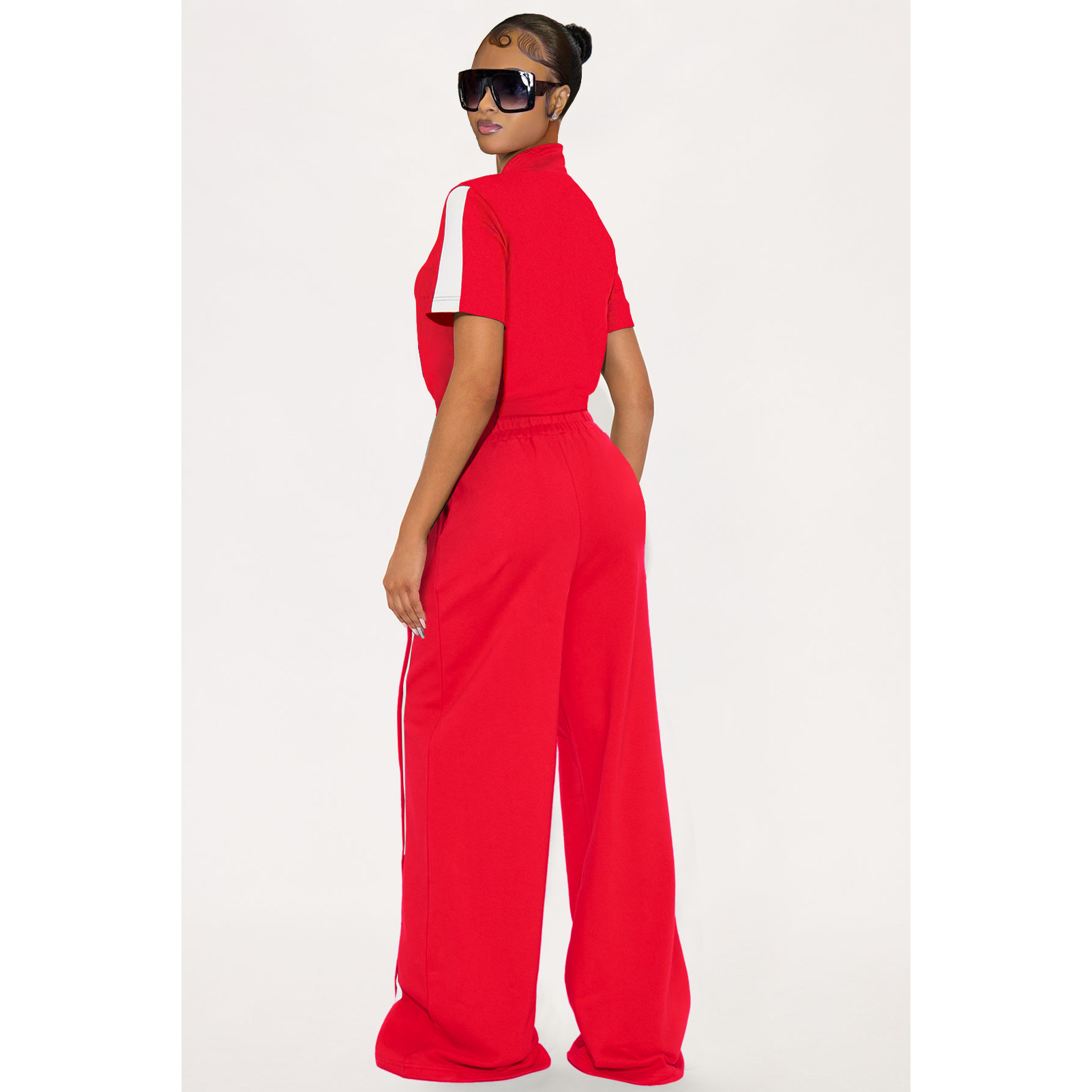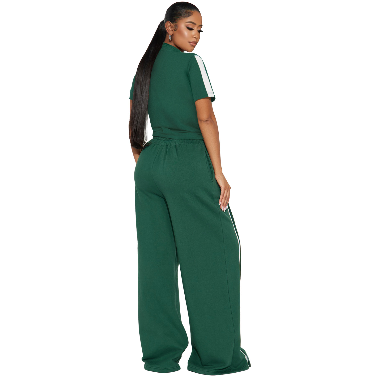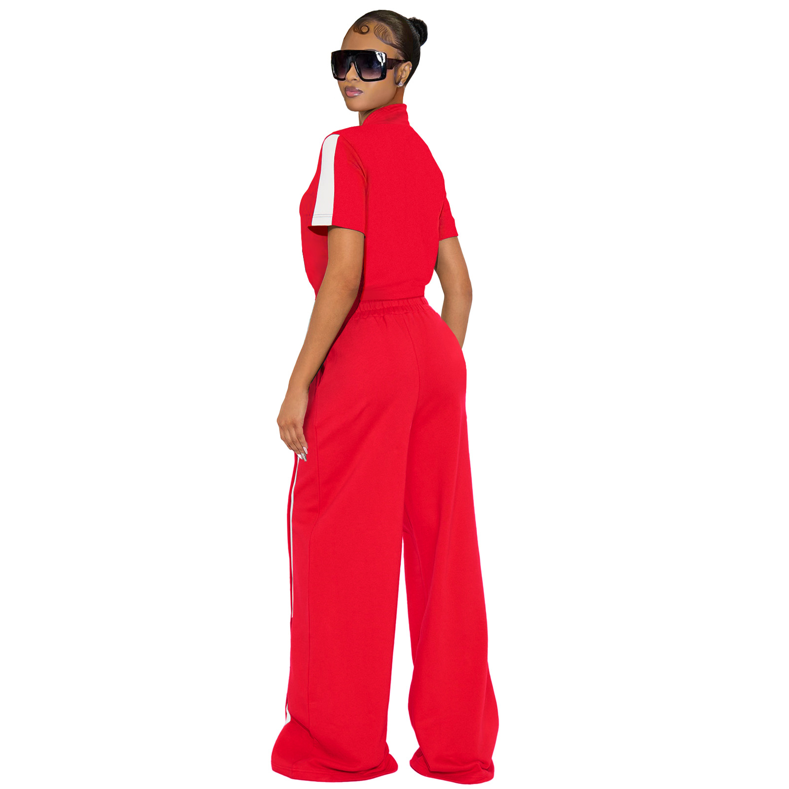 This Women's Sports Two-Piece Set Buttoned Loose Pocket Wide-Leg Pants & Short Sleeve Zipper Top Design Made Of Durable And Stretch Fabric. It Is a Must-Have Sportswear For Outdoor And Active. BamBam Offer a Rich Selection Of Women Tracksuits And Sweatsuits. You Will Find Wide Range Colors, Prints, And Designs retail Tracksuits With BamBam Whether For Sports Or Lazy Weekend. When You Need More retail Fitness Clothing, You Can Always Find What You Need On Our retail Women Gym Wear Online Store.