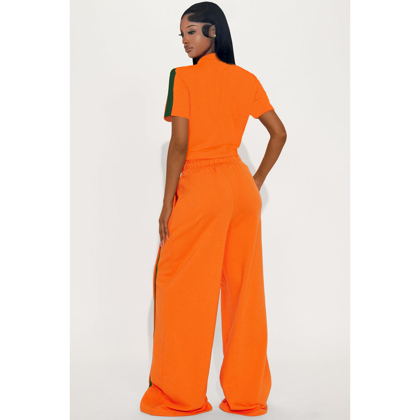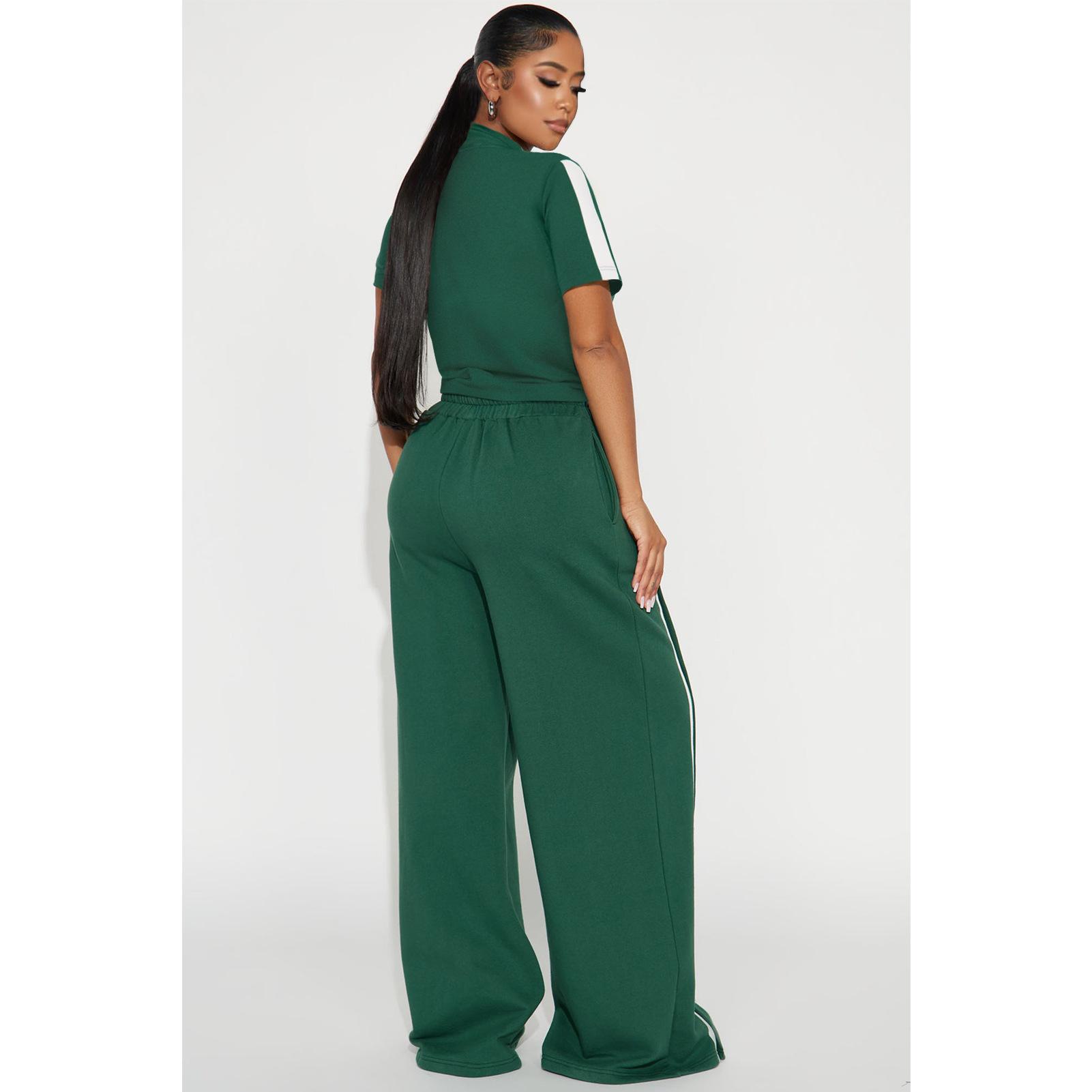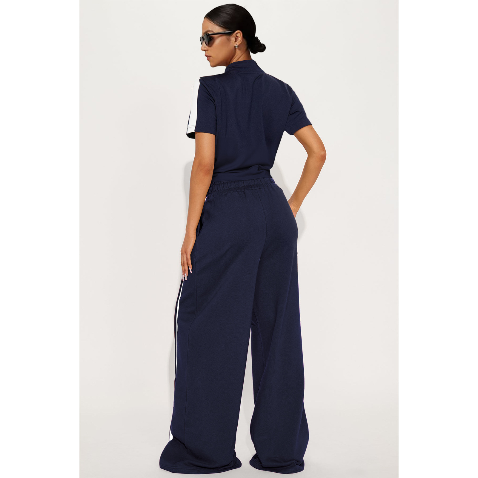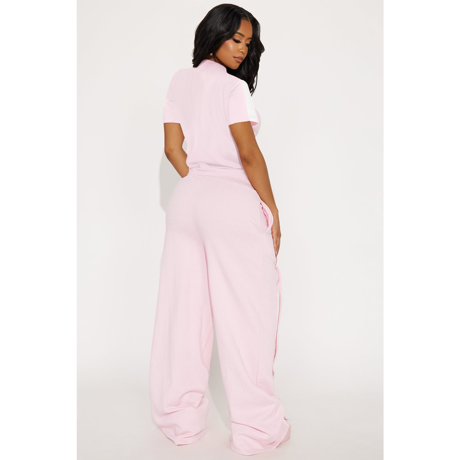 This Women's Sports Two-Piece Set Buttoned Loose Pocket Wide-Leg Pants & Short Sleeve Zipper Top Design Made Of Durable And Stretch Fabric. It Is a Must-Have Sportswear For Outdoor And Active. BamBam Offer a Rich Selection Of Women Tracksuits And Sweatsuits. You Will Find Wide Range Colors, Prints, And Designs retail Tracksuits With BamBam Whether For Sports Or Lazy Weekend. When You Need More retail Fitness Clothing, You Can Always Find What You Need On Our retail Women Gym Wear Online Store.