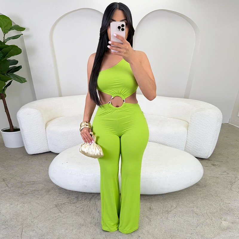 This Women's Spring And Summer Hollow Slash Shoulder Gathered Ring Patchwork Long Jumpsuit Design Made Of High Quality Polyster And Spandex Material. It Is Stretchy, Durable And Comfortable. Affordable Sexy Jumpsuits For Women Has Long Been a Party Favorite. BamBam provides a Rich selection Of Sequin, Beaded, See Through Mesh, Leopard, Floral Lace, Leather, Velvet, Tight And Fitted retail Jumpsuit Without Moq Limit.