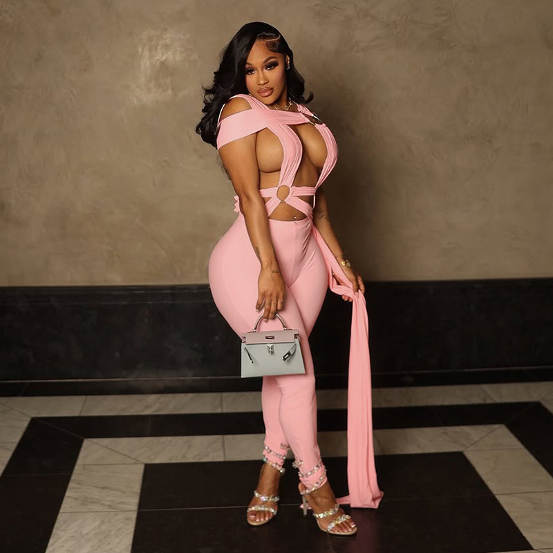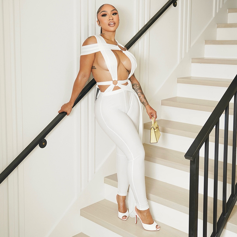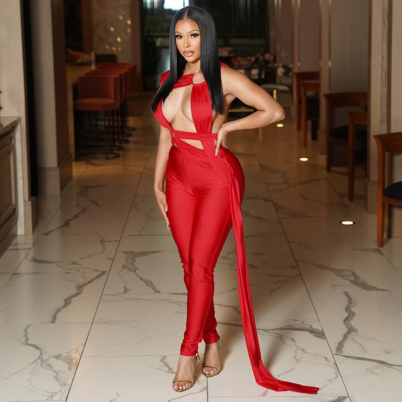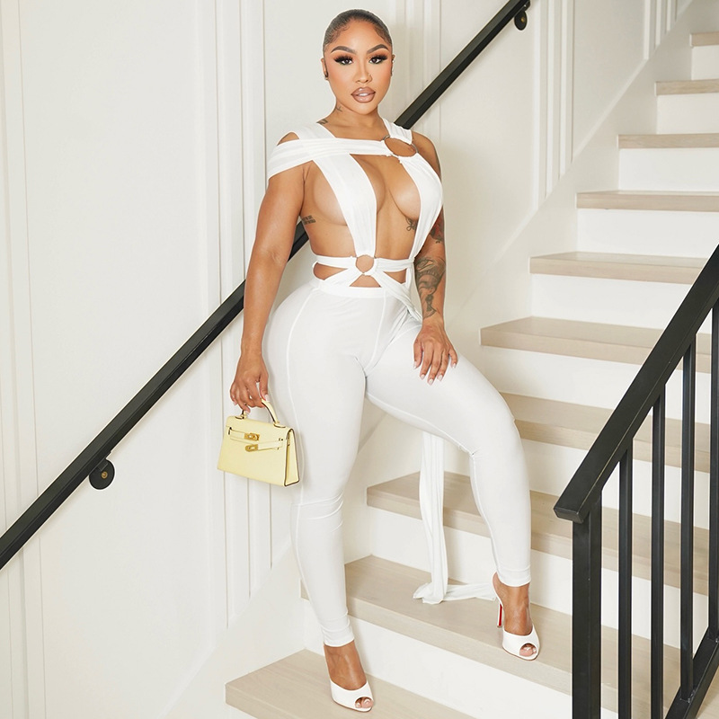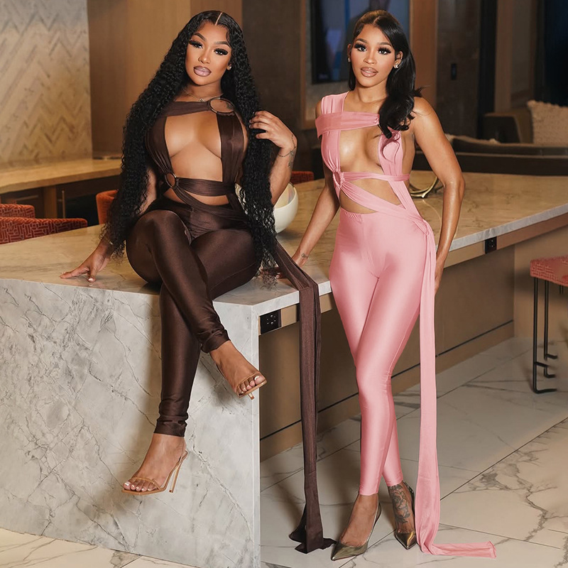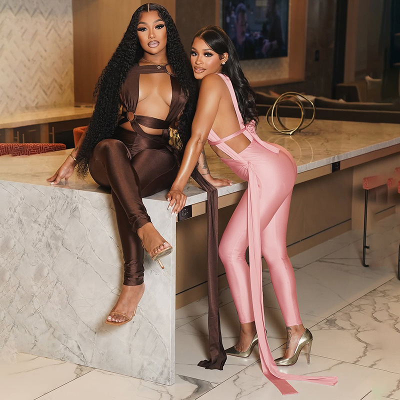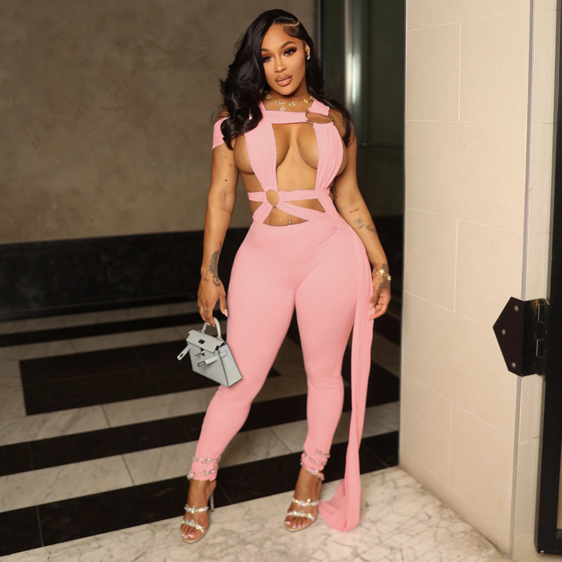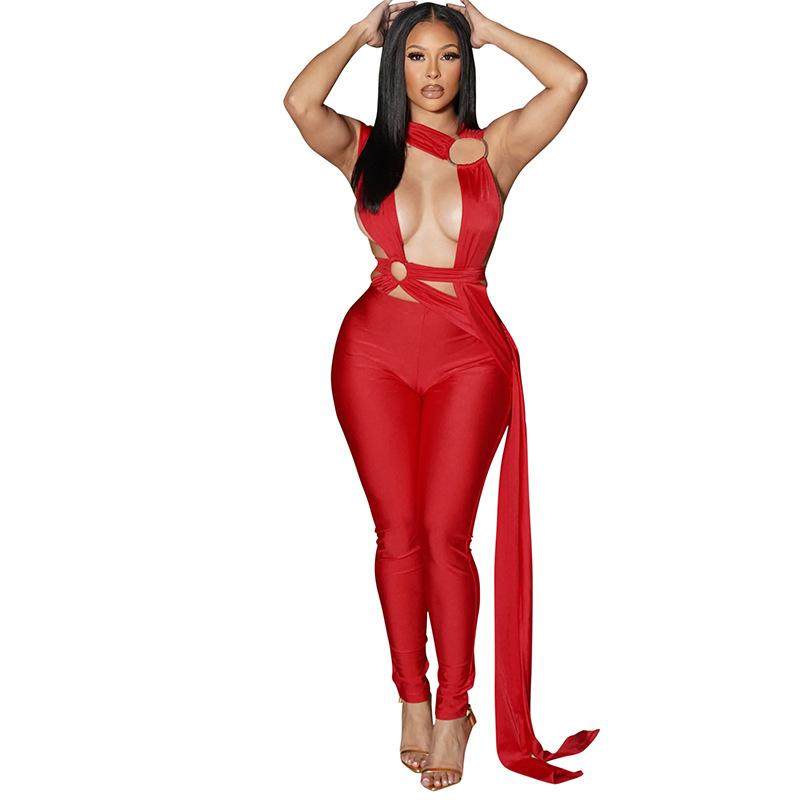 This Women's Spring And Summer Ring Hollow Strap Jumpsuit Design Made Of High Quality Polyster And Spandex Material. It Is Stretchy, Durable And Comfortable. Affordable Sexy Jumpsuits For Women Has Long Been a Party Favorite. BamBam provides a Rich selection Of Sequin, Beaded, See Through Mesh, Leopard, Floral Lace, Leather, Velvet, Tight And Fitted retail Jumpsuit Without Moq Limit.