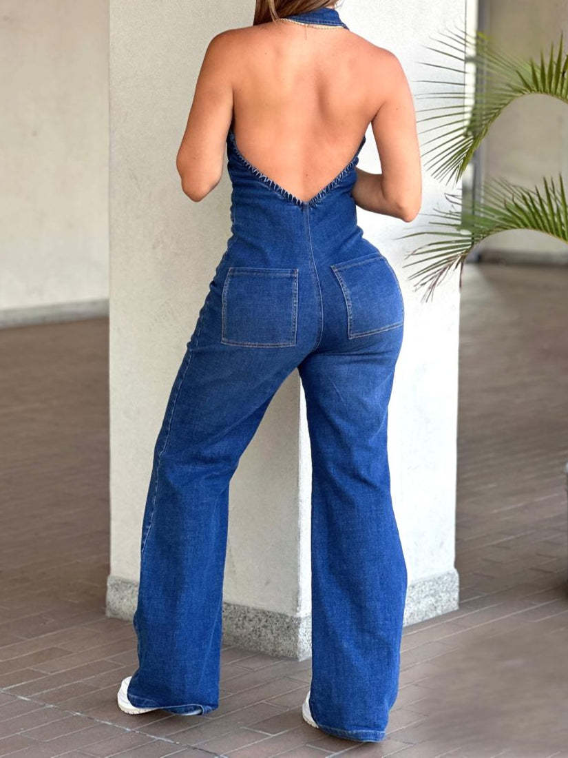 This Women's Spring Sleeveless Fashion Halter Low Back Denim Jumpsuit Design Made Of High Quality Polyster And Spandex Material. It Is Stretchy, Durable And Comfortable. Affordable Sexy Jumpsuits For Women Has Long Been a Party Favorite. BamBam provides a Rich selection Of Sequin, Beaded, See Through Mesh, Leopard, Floral Lace, Leather, Velvet, Tight And Fitted retail Jumpsuit Without Moq Limit.