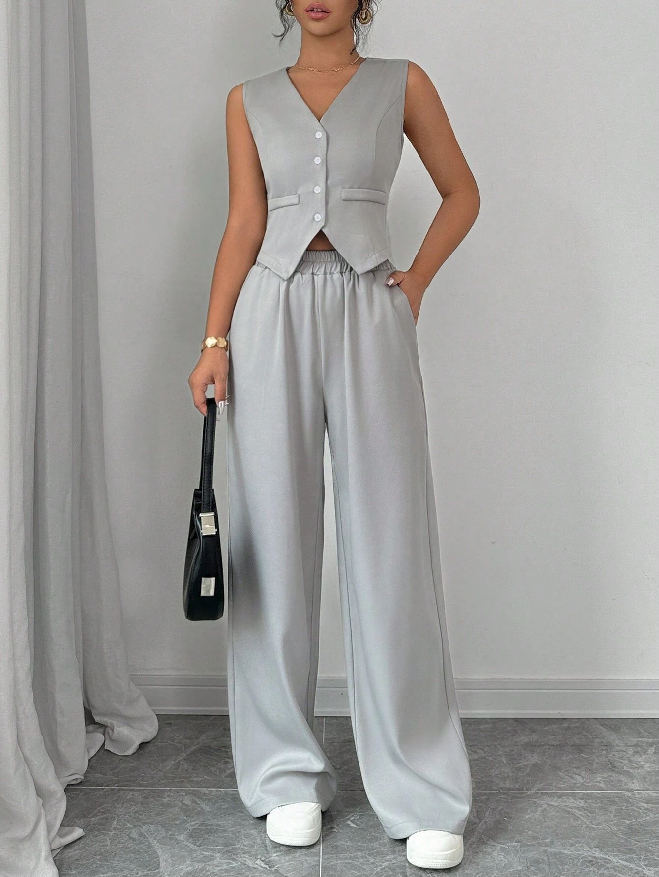 This Women's Spring Summer Chic Button Sleeveless Vest Pants Set Made Of Durable And Comfortable Material. It Is a Must-Have Item For Commuting And Events. Ladies Blazer Can Be Found In All Seasons And All Occasions. No One Can Refuse The Temptation Of Blazers. Blazers Are No Longer Just Suitable For Business Occasions, Casual And Loose Cut Style Cheap retail Women’s Blazer Jackets Can Be Worn daily. Blazer Matching Women’s Pants Suits Looks More Business-Friendly And Can Be Worn To Work And Formal Occasions. When You Need More retail Women Blazers And Blazer Sets, You Can Always Find What You Need On Our retail Women Clothing Online Store.