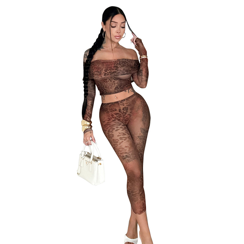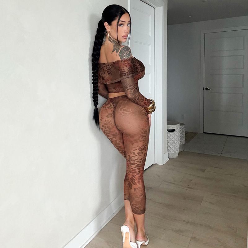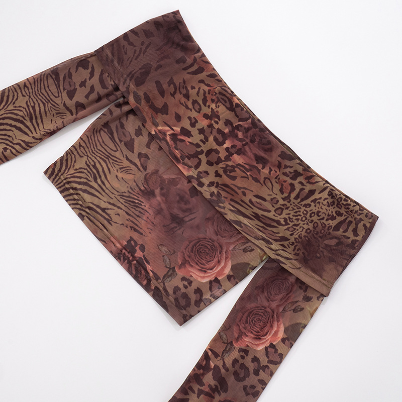 This Women's Spring-Summer Floral Leopard Mesh Off-Shoulder Three-Quarter Pants Set Design Made Of High Quality polyester And Spandex Material. It Is Stretchy, Durable And Comfortable. It Come With The Top And Shorts. retail Short Sets Saves Some People From The Trouble Of Matching. And For Matchmakers It Is More Flexible Than One-Piece Outfit. Two Piece Short Set Can Be Worn Together Or Individually, Ladies Can Match Them According To Different Occasions. Grab Different Two Piece Short Sets For This Spring And Summer.