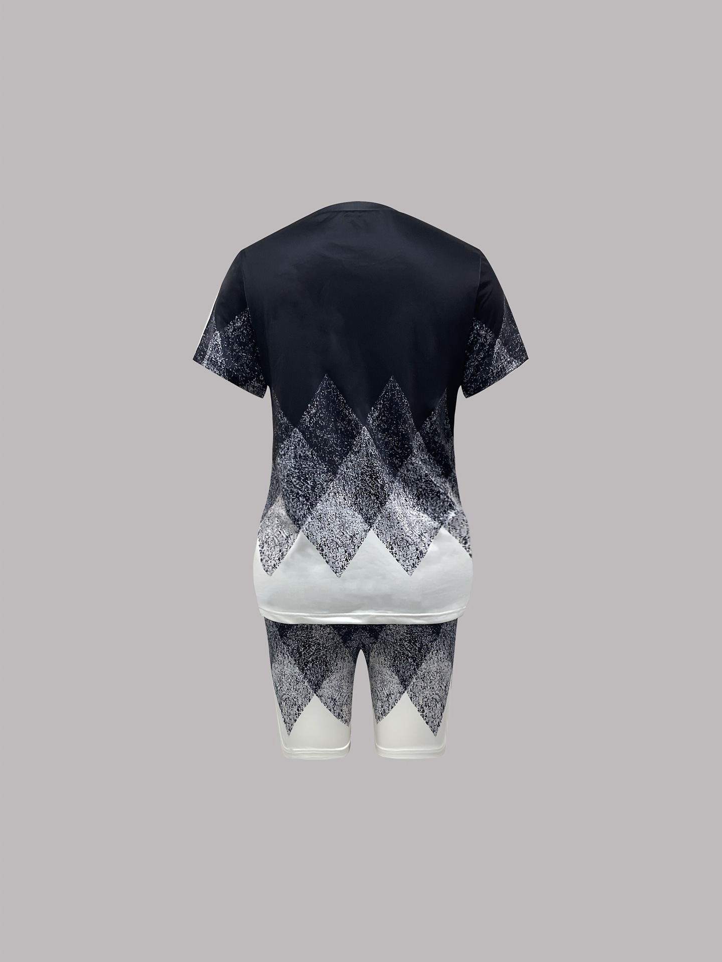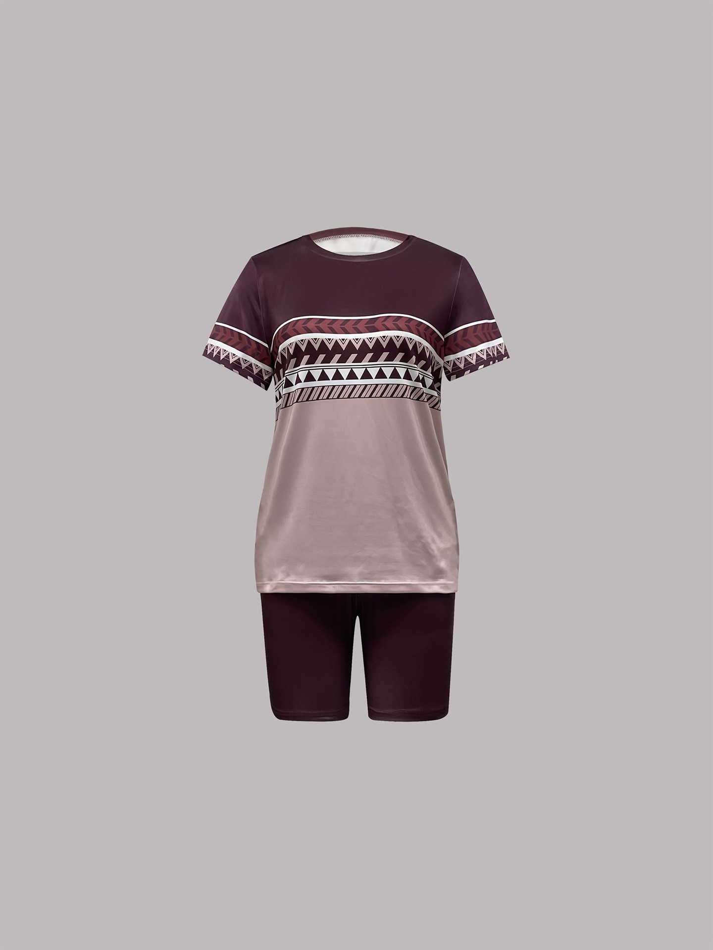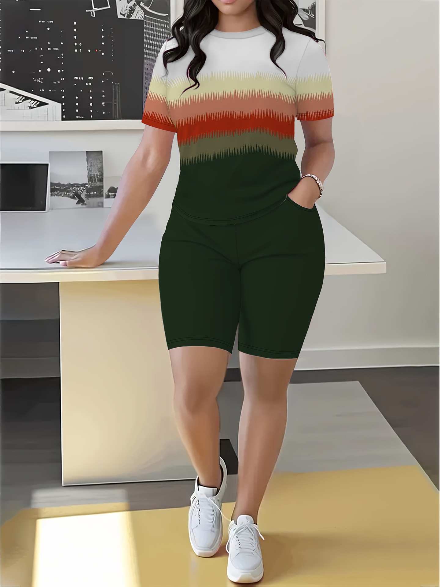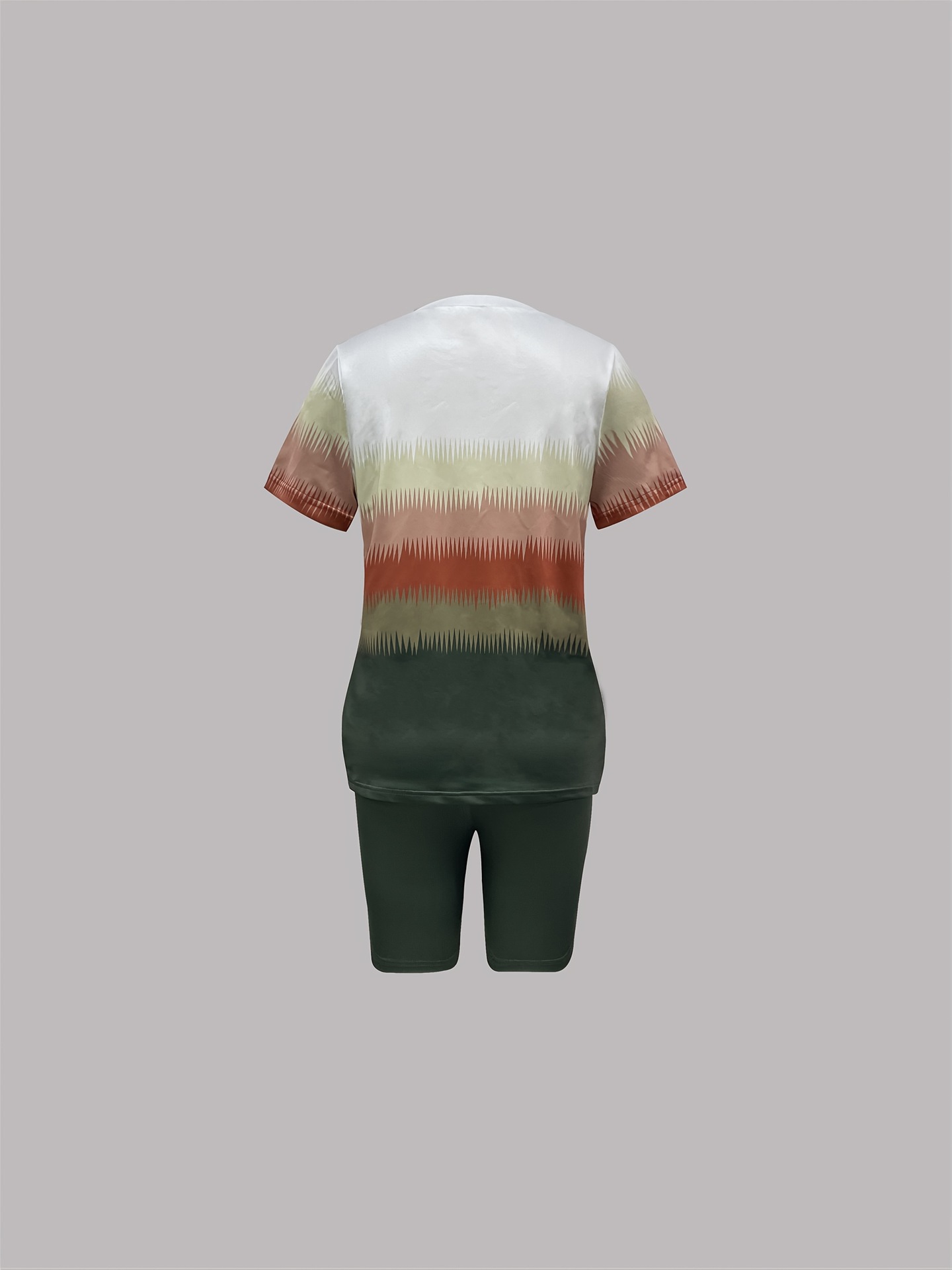 This Women's Spring/Summer Geometric Stripe Round Neck t-Shirt & Tight-Fit Shorts Casual Set Design Made Of High Quality polyester And Spandex Material. It Is Stretchy, Durable And Comfortable. It Come With The Top And Shorts. retail Short Sets Saves Some People From The Trouble Of Matching. And For Matchmakers It Is More Flexible Than One-Piece Outfit. Two Piece Short Set Can Be Worn Together Or Individually, Ladies Can Match Them According To Different Occasions. Grab Different Two Piece Short Sets For This Spring And Summer.
