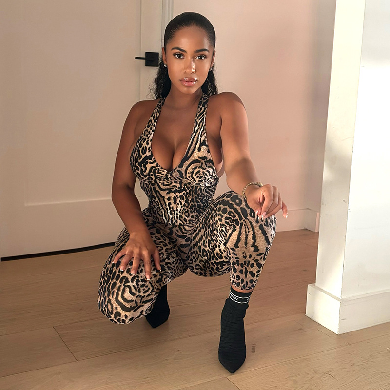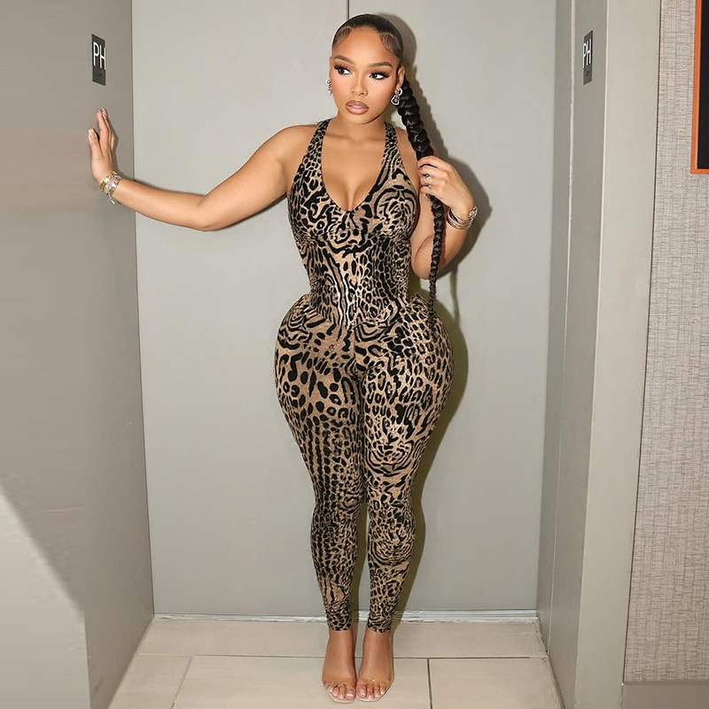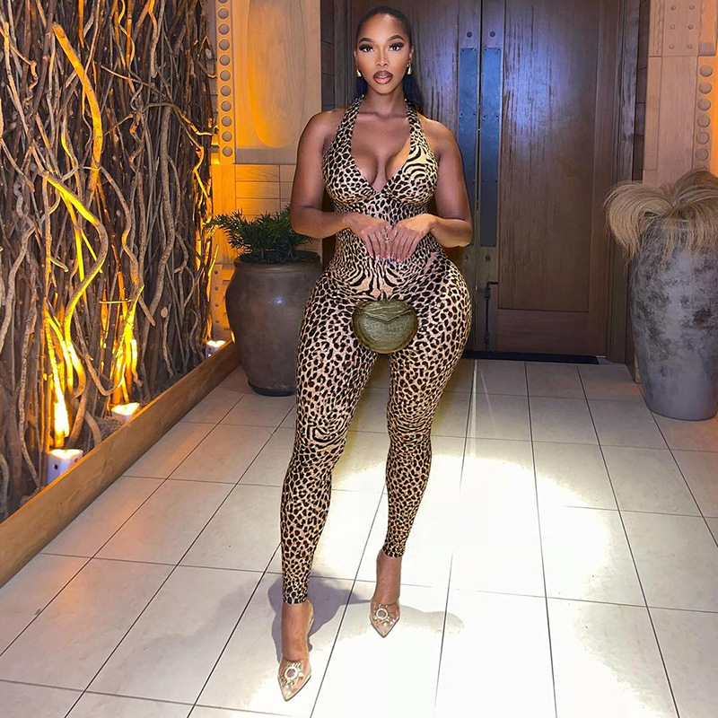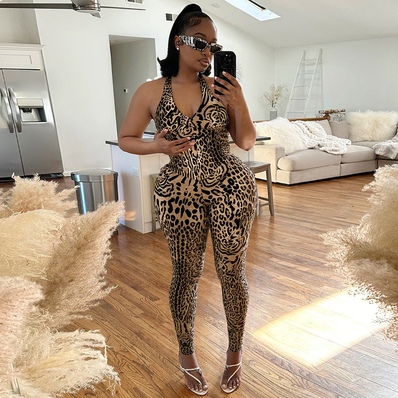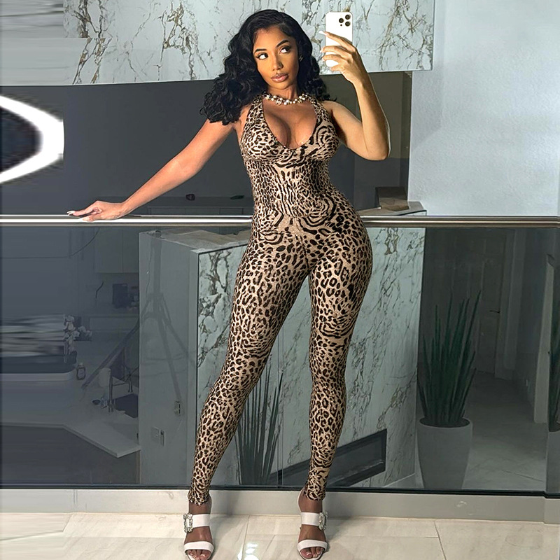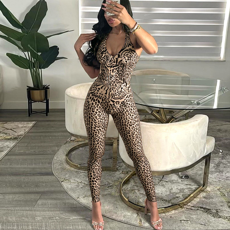 This Women's Spring Summer Halter Neck Hollow Low-Back Leopard Print Slim Jumpsuit Design Made Of High Quality Polyster And Spandex Material. It Is Stretchy, Durable And Comfortable. Affordable Sexy Jumpsuits For Women Has Long Been a Party Favorite. BamBam provides a Rich selection Of Sequin, Beaded, See Through Mesh, Leopard, Floral Lace, Leather, Velvet, Tight And Fitted retail Jumpsuit Without Moq Limit.