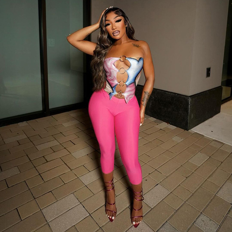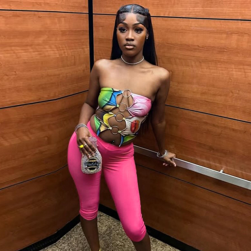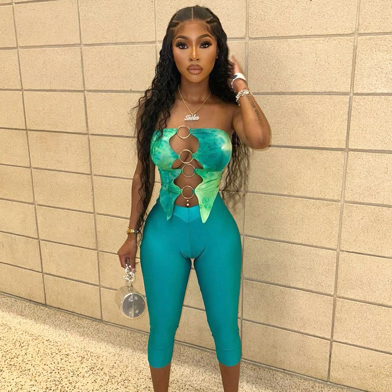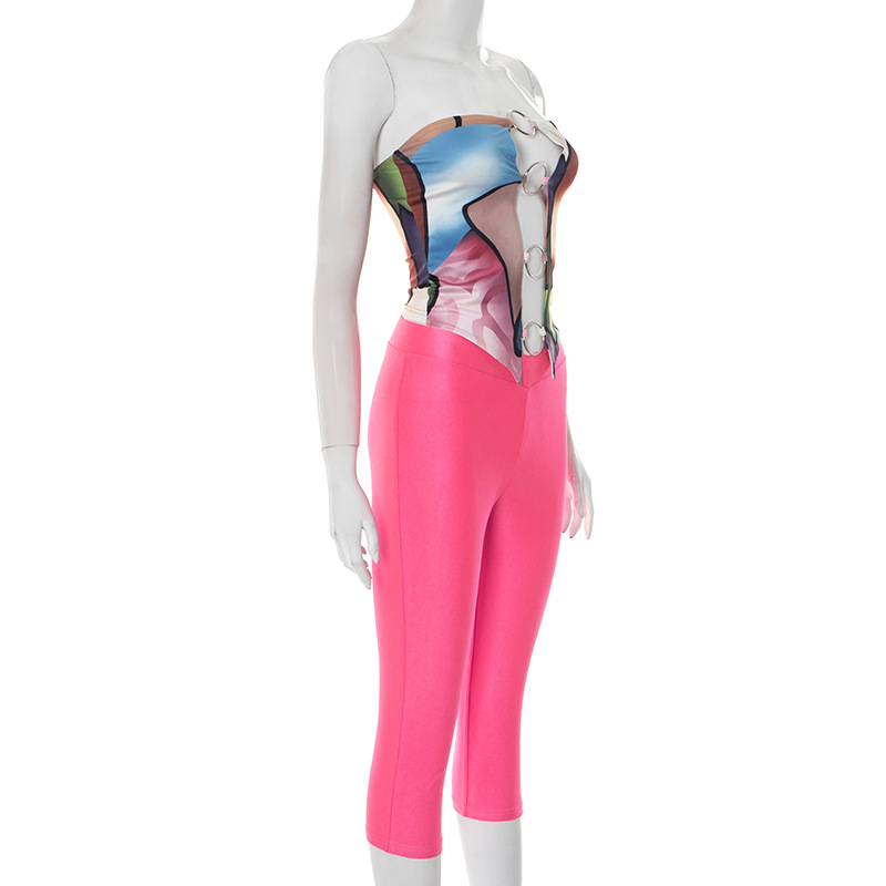 This Women's Spring Summer Printed Ring Patchwork Strapless Top & Three-Quarter Pants Set Design Made Of High Quality polyester And Spandex Material. It Is Stretchy, Durable And Comfortable. It Come With The Top And Shorts. retail Short Sets Saves Some People From The Trouble Of Matching. And For Matchmakers It Is More Flexible Than One-Piece Outfit. Two Piece Short Set Can Be Worn Together Or Individually, Ladies Can Match Them According To Different Occasions. Grab Different Two Piece Short Sets For This Spring And Summer.
