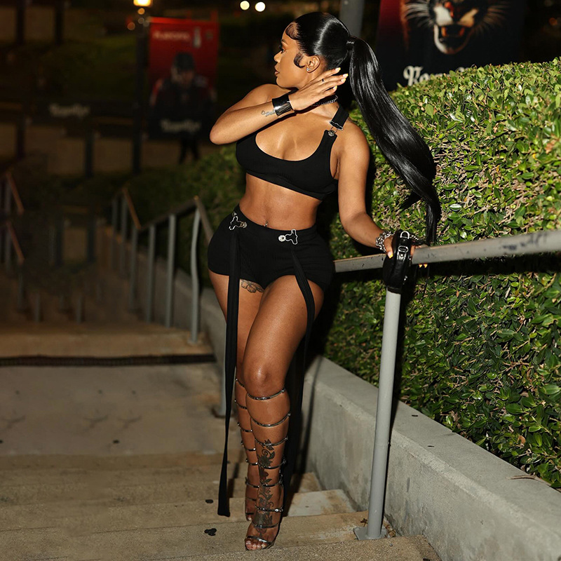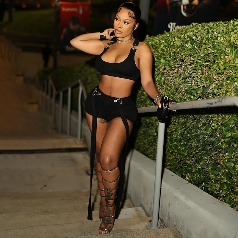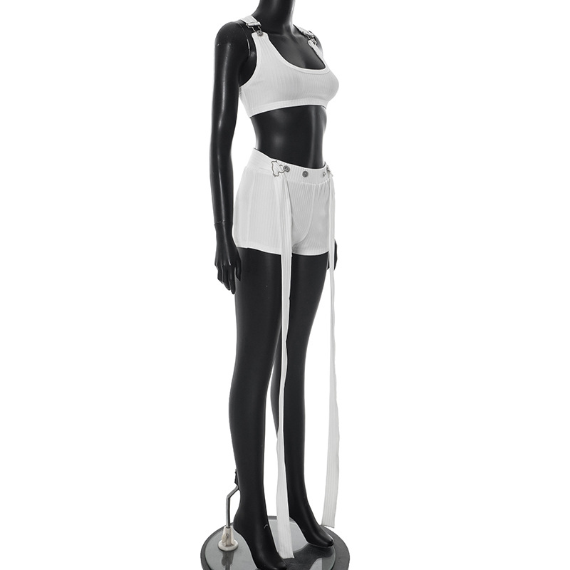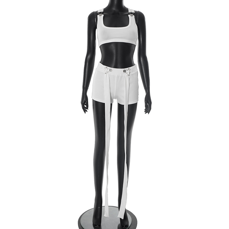 This Women's Spring-Summer Ribbed Halter Buckle Vest With Loose Ribbon Shorts Set Design Made Of High Quality polyester And Spandex Material. It Is Stretchy, Durable And Comfortable. It Come With The Top And Shorts. retail Short Sets Saves Some People From The Trouble Of Matching. And For Matchmakers It Is More Flexible Than One-Piece Outfit. Two Piece Short Set Can Be Worn Together Or Individually, Ladies Can Match Them According To Different Occasions. Grab Different Two Piece Short Sets For This Spring And Summer.