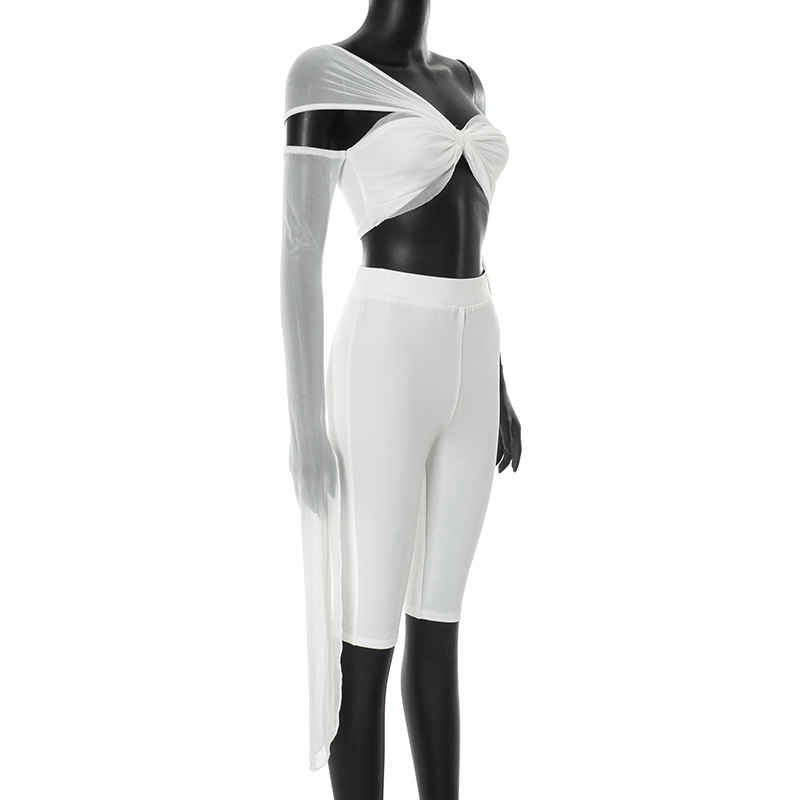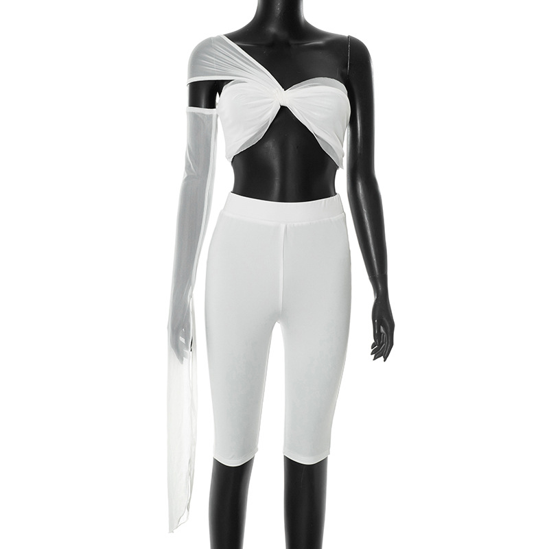 This Women's Spring-Summer See-Through Mesh One-Sleeve Slim Tight Two-Piece Shorts Set Design Made Of High Quality polyester And Spandex Material. It Is Stretchy, Durable And Comfortable. It Come With The Top And Shorts. retail Short Sets Saves Some People From The Trouble Of Matching. And For Matchmakers It Is More Flexible Than One-Piece Outfit. Two Piece Short Set Can Be Worn Together Or Individually, Ladies Can Match Them According To Different Occasions. Grab Different Two Piece Short Sets For This Spring And Summer.