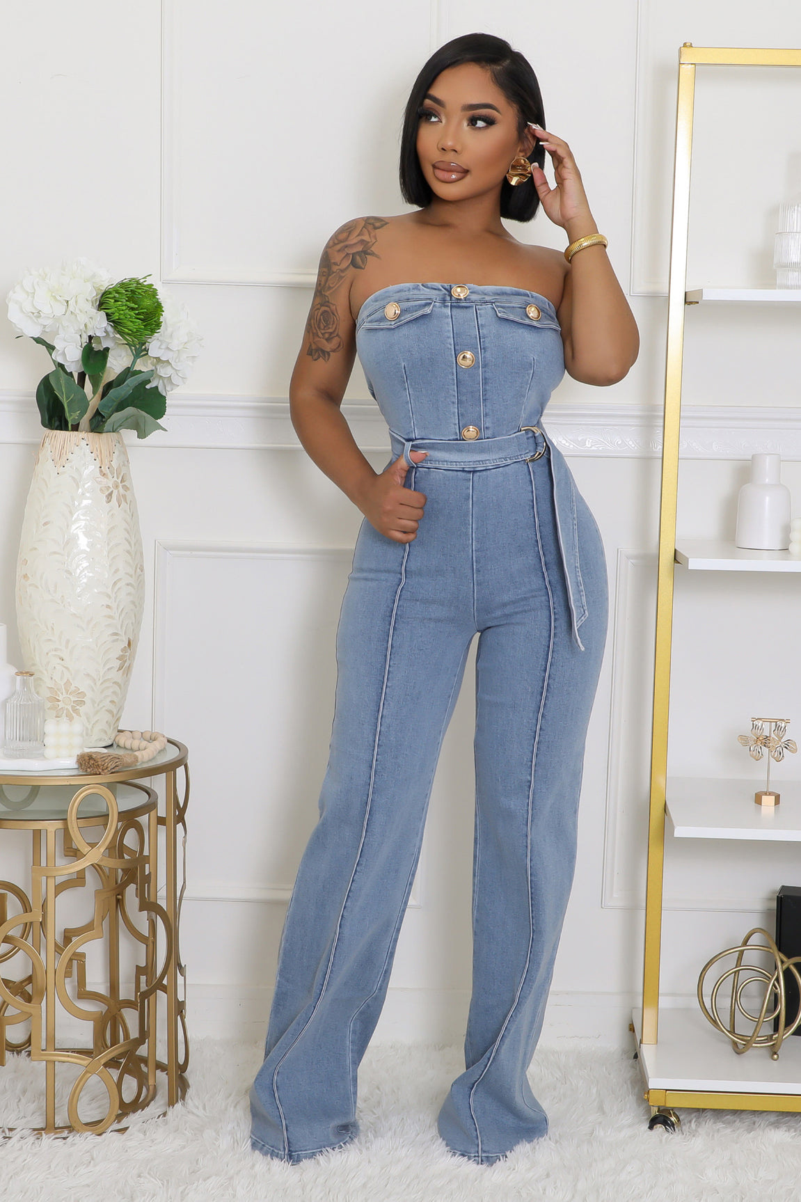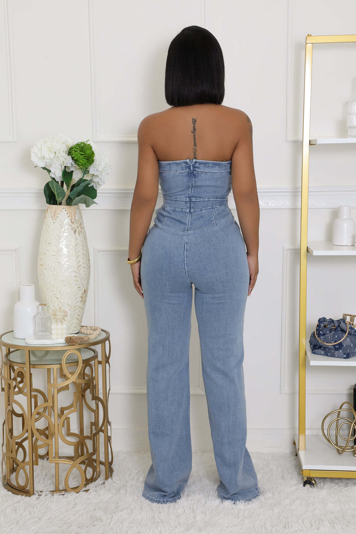 This Women's Strapless Slim Waist Elastic Washed Denim Wide-Leg Jumpsuit Design Made Of High Quality Polyster And Spandex Material. It Is Stretchy, Durable And Comfortable. Affordable Sexy Jumpsuits For Women Has Long Been a Party Favorite. BamBam provides a Rich selection Of Sequin, Beaded, See Through Mesh, Leopard, Floral Lace, Leather, Velvet, Tight And Fitted retail Jumpsuit Without Moq Limit.