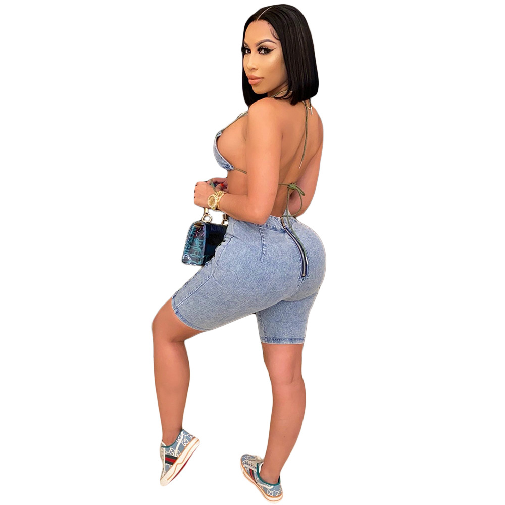 This Women's Stretch Zipper Denim Pants Bra Set Design Made Of High Quality polyester And Spandex Material. It Is Stretchy, Durable And Comfortable. It Come With The Top And Shorts. retail Short Sets Saves Some People From The Trouble Of Matching. And For Matchmakers It Is More Flexible Than One-Piece Outfit. Two Piece Short Set Can Be Worn Together Or Individually, Ladies Can Match Them According To Different Occasions. Grab Different Two Piece Short Sets For This Spring And Summer.