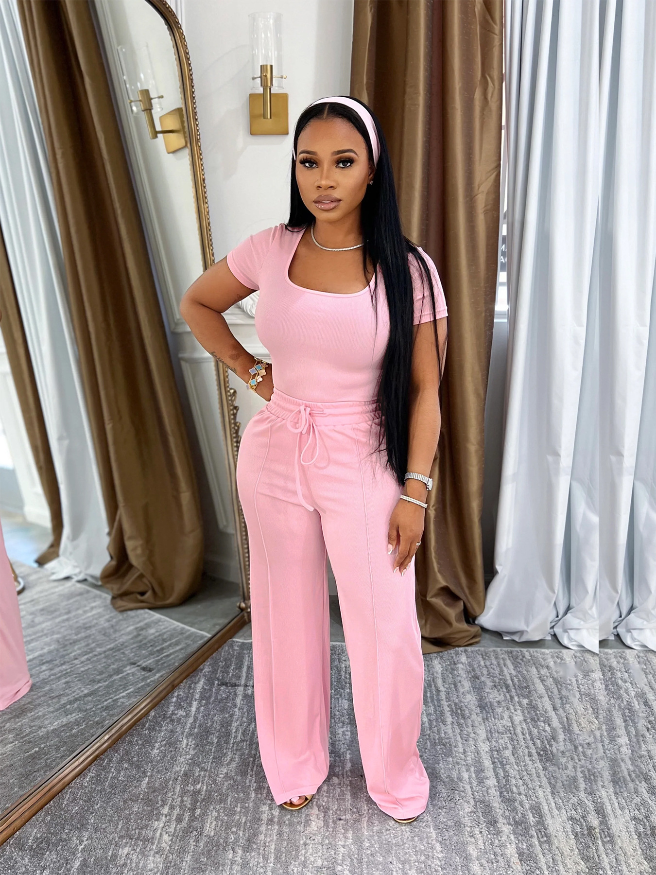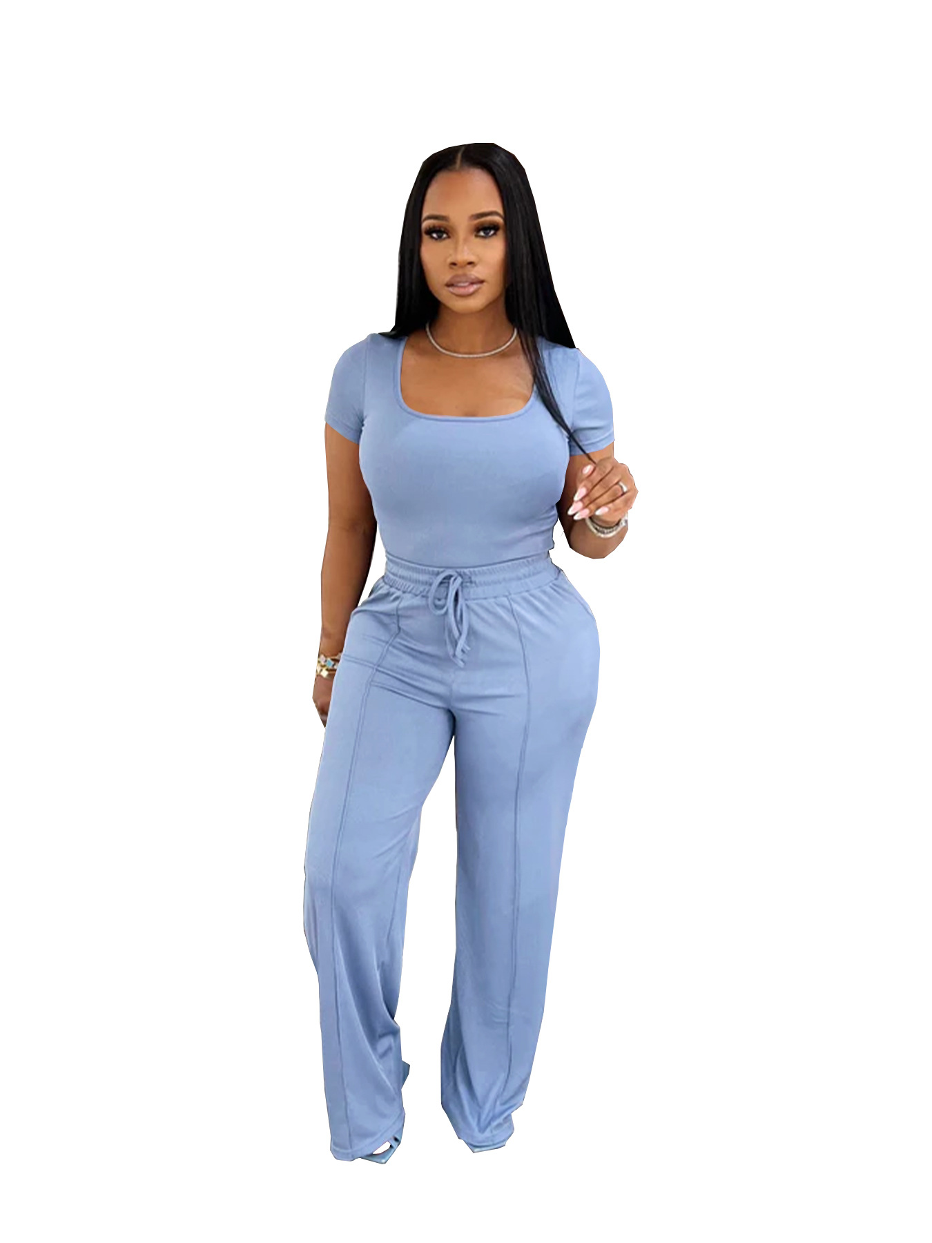 This Women's Summer Career Fashion Solid Color Square Neck Short Sleeve Top High Waist Wide Leg Pants Casual Two Piece Set Design Made Of High Quality polyester And Spandex Material. It Is Stretchy, Durable And Comfortable. It Is a Must-Have Outfit For All Seasons. retail Two Piece Pant Sets Can Solve Your cloth selection Troubles. Explore More 2 Piece Pants Set On BamBam retail Women Clothing Online Store.