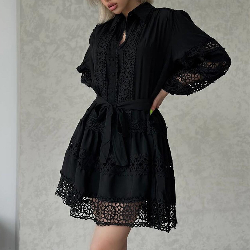 This Women's Summer Chic Long Sleeve Hollow Belt Slim Waist Short Dress Design Made Of High Quality polyester And Spandex Material. It Is Stretchy, Durable And Comfortable. Casual Dresses With Long Sleeves Can Not Only Be Worn As Outerwear In Spring And Autumn, But Also Matching a Jacket In Winter, It Is a Must Have Item For Every Season. Grab Really Great Buy Casual Dresses For Women And Grow Your Business. No Moq In BamBam.