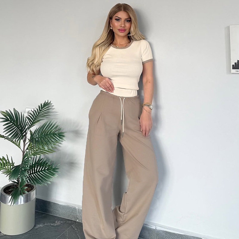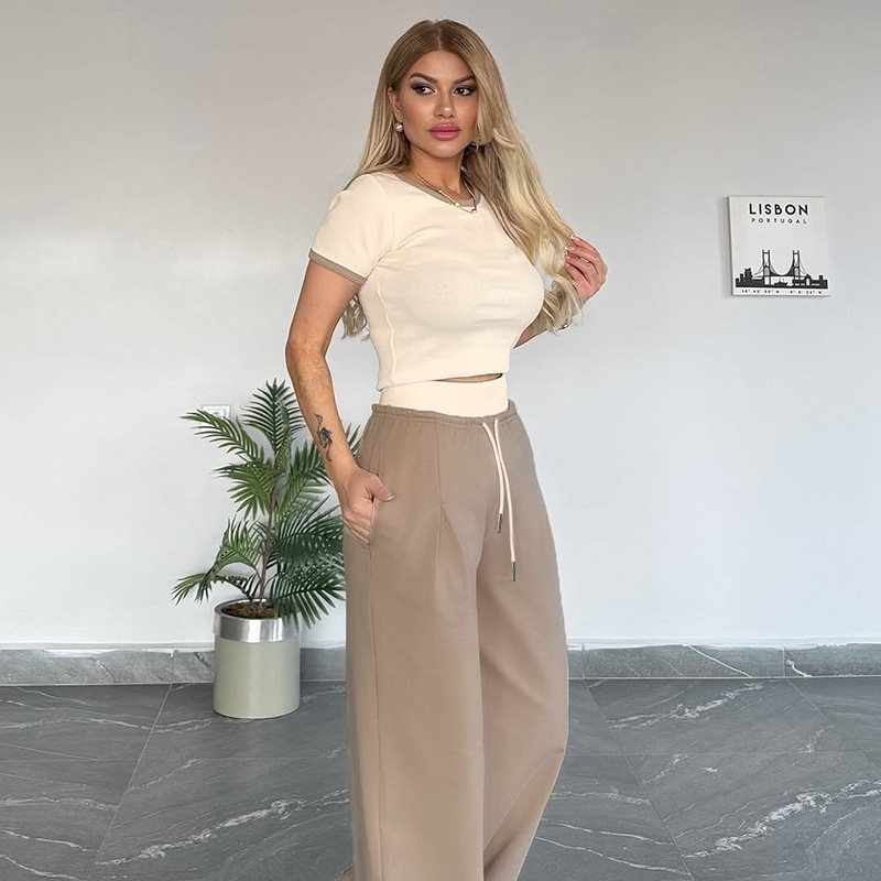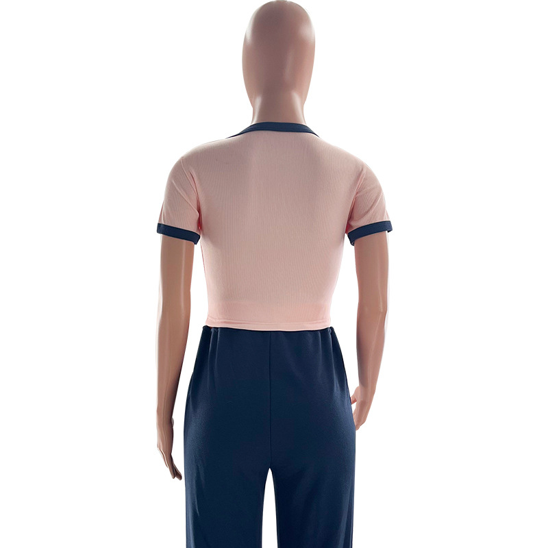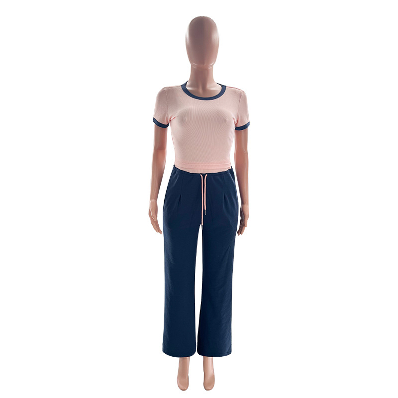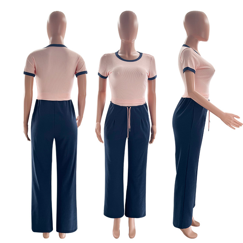 This Women's Summer Color-Blocked Round Neck Short Sleeve Casual Pants Set Design Made Of High Quality polyester And Spandex Material. It Is Stretchy, Durable And Comfortable. It Is a Must-Have Outfit For All Seasons. retail Two Piece Pant Sets Can Solve Your cloth selection Troubles. Explore More 2 Piece Pants Set On BamBam retail Women Clothing Online Store.