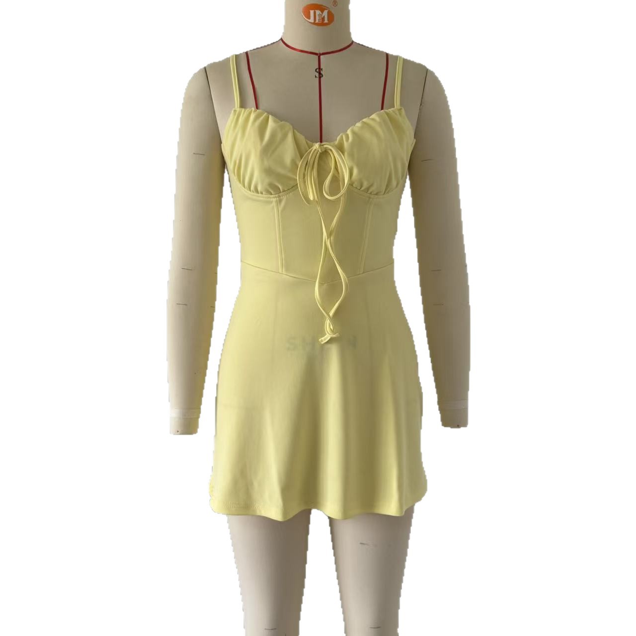 This Women's Summer Lace-Up Slim Waist Strap Dress Design Made Of High Quality polyester And Spandex Material. It Is Stretchy, Durable And Comfortable. Casual Dresses With Long Sleeves Can Not Only Be Worn As Outerwear In Spring And Autumn, But Also Matching a Jacket In Winter, It Is a Must Have Item For Every Season. Grab Really Great Buy Casual Dresses For Women And Grow Your Business. No Moq In BamBam.