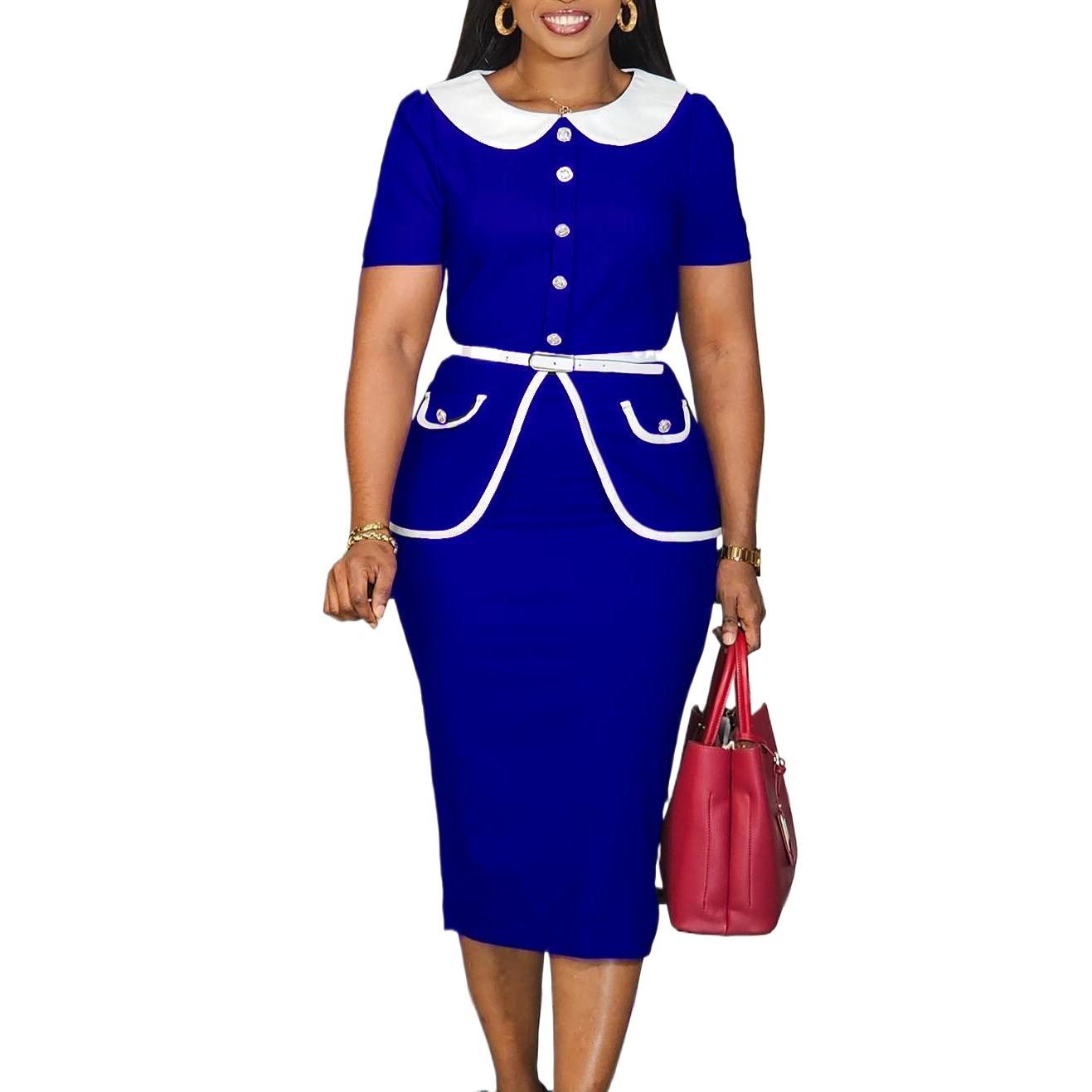 This Women's Summer Short-Sleeved Fashionable Chic Ol Color-Blocked High-Waisted African Dress Design Made Of High End Polyester And Spandex Material, It Has Enough Stretch, Wearing Comfortable And Make You Good Emotion All The Day. The Office Wear For Ladies Is a Perfect Look For Attend Meetings, Meet Important Customers, Go To Work Daily. When You Need Wholesale Best Work Dresses, You Can Find On Our Wholesale Women Apparel Online Store Something That You Really Can Not Find From Other Place.